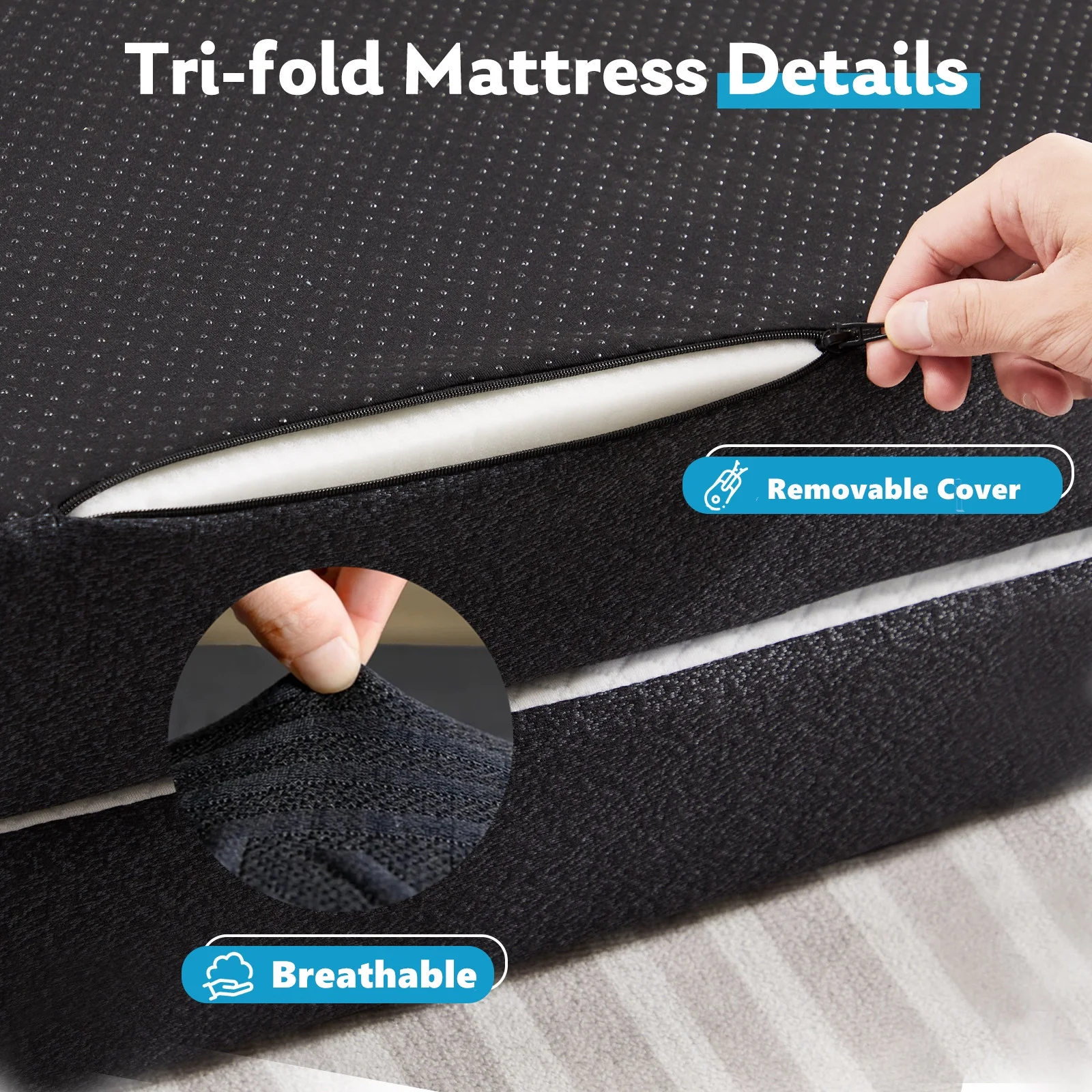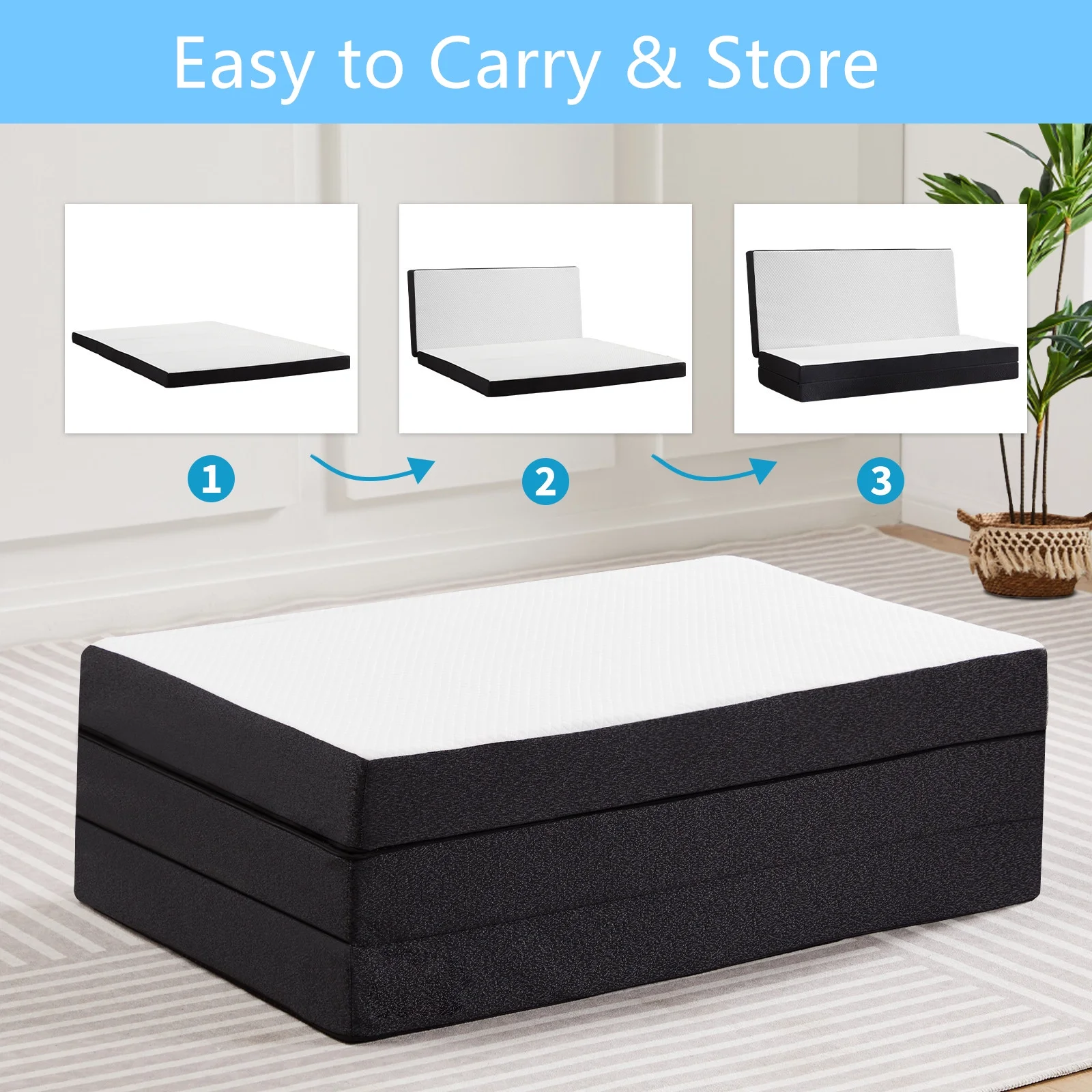 Smiaoer 3 inches Folding Queen Size Memory Foam Mattress with Cover,Tri-fold Portable Mattress Topper for Guest Bed,Camping