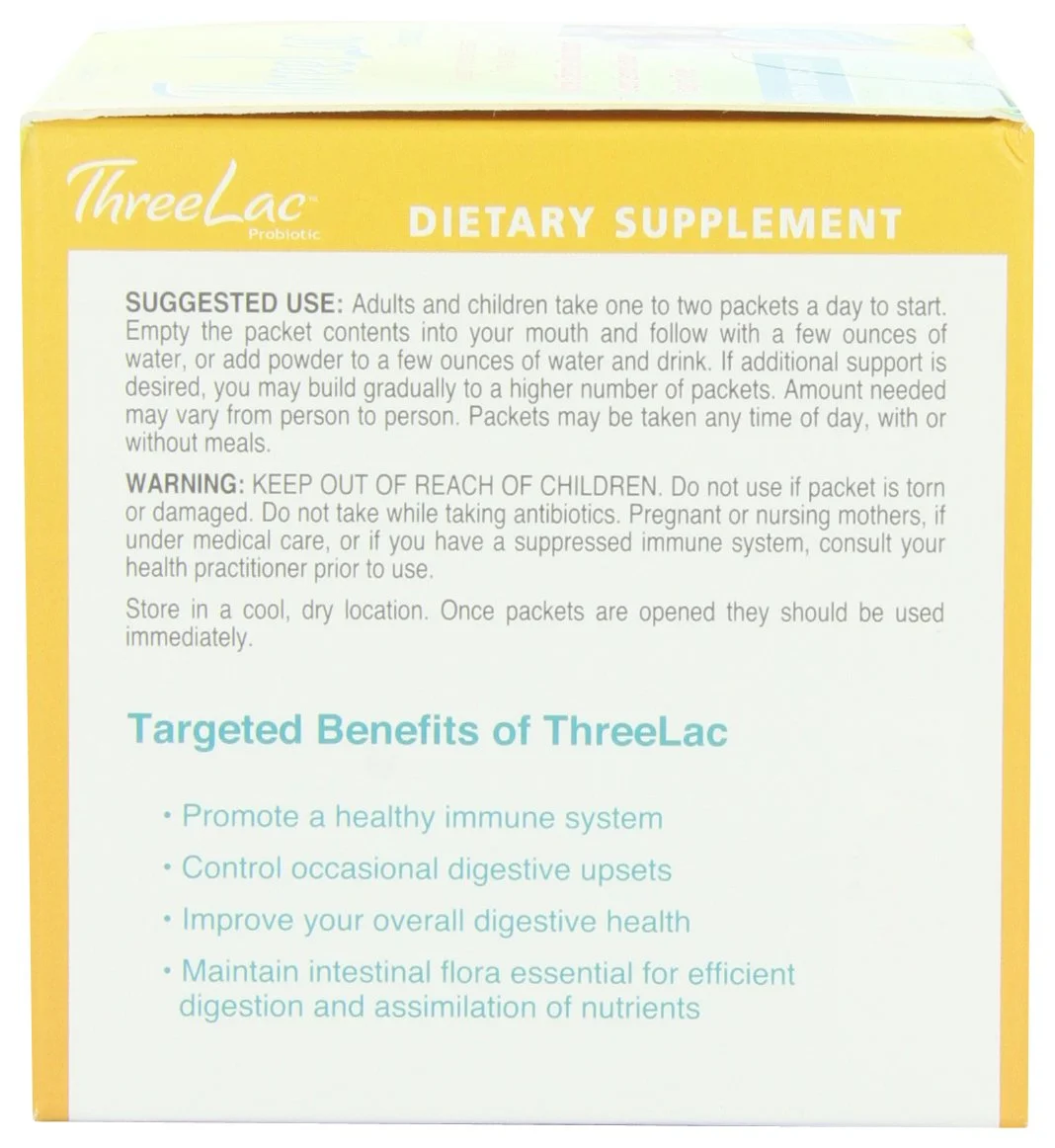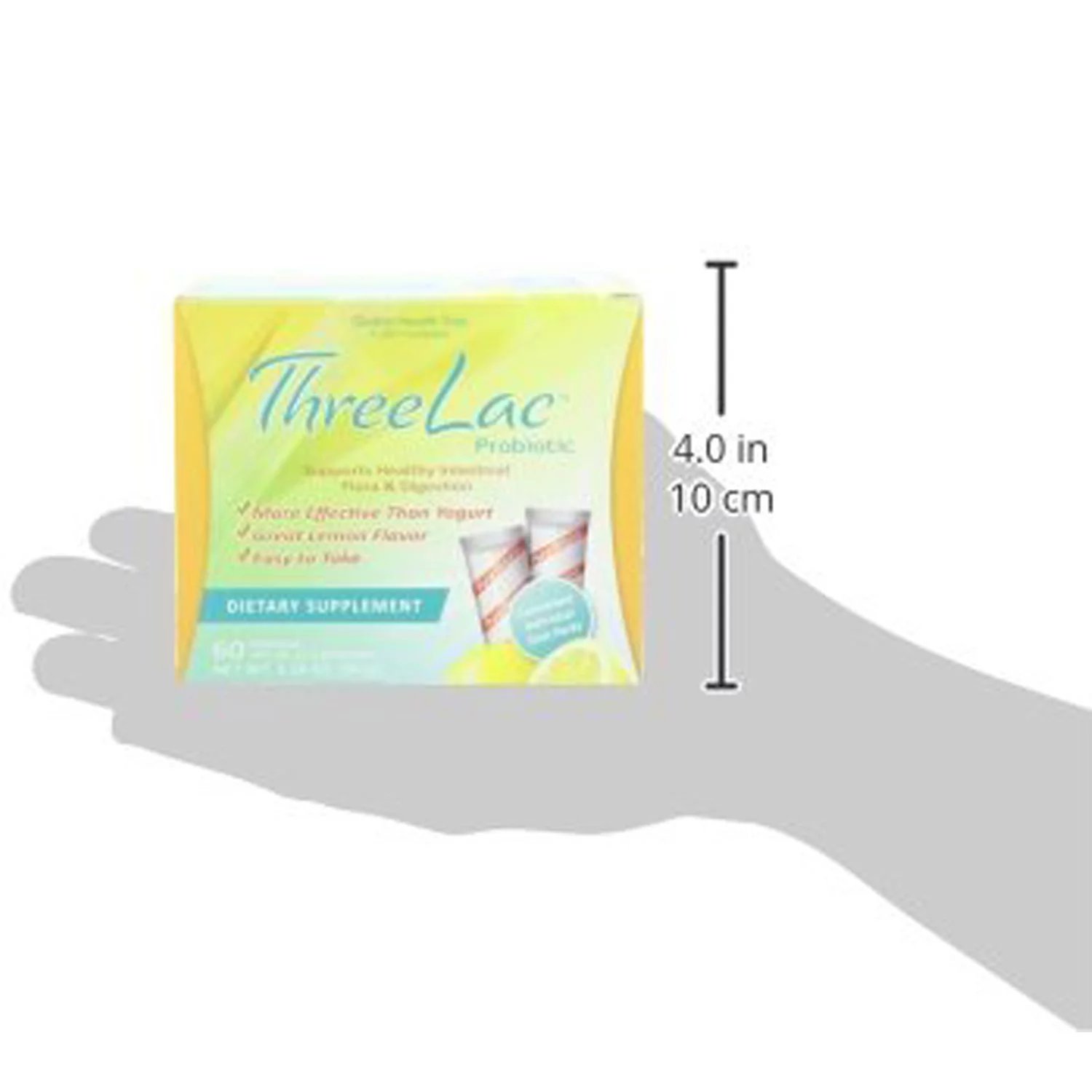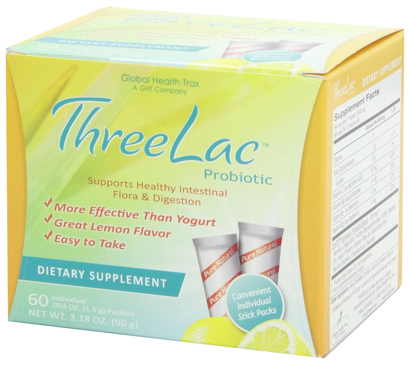 Global Health Trax ThreeLac Probiotic Dietary Supplement, Lemon Flavored (60 Packets)