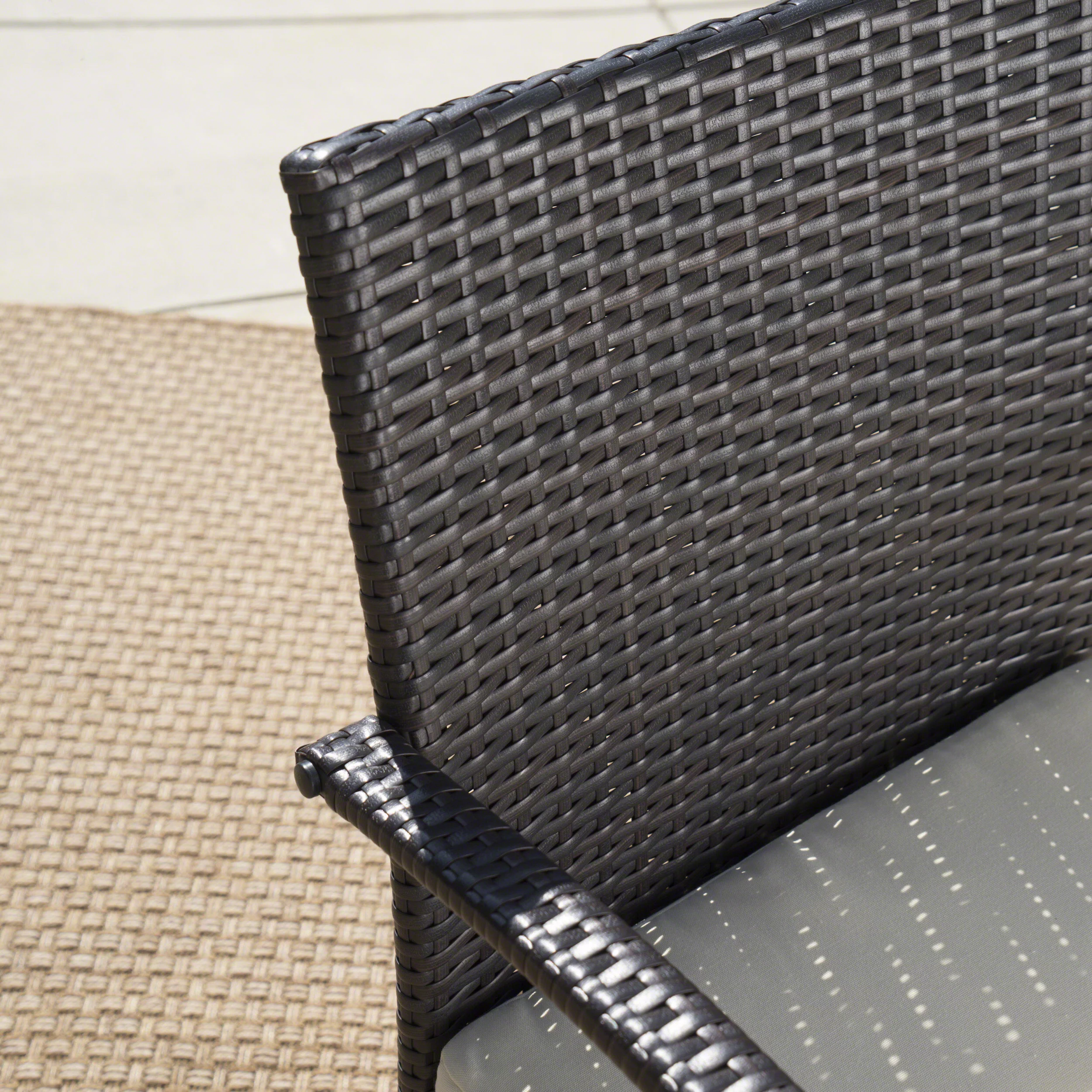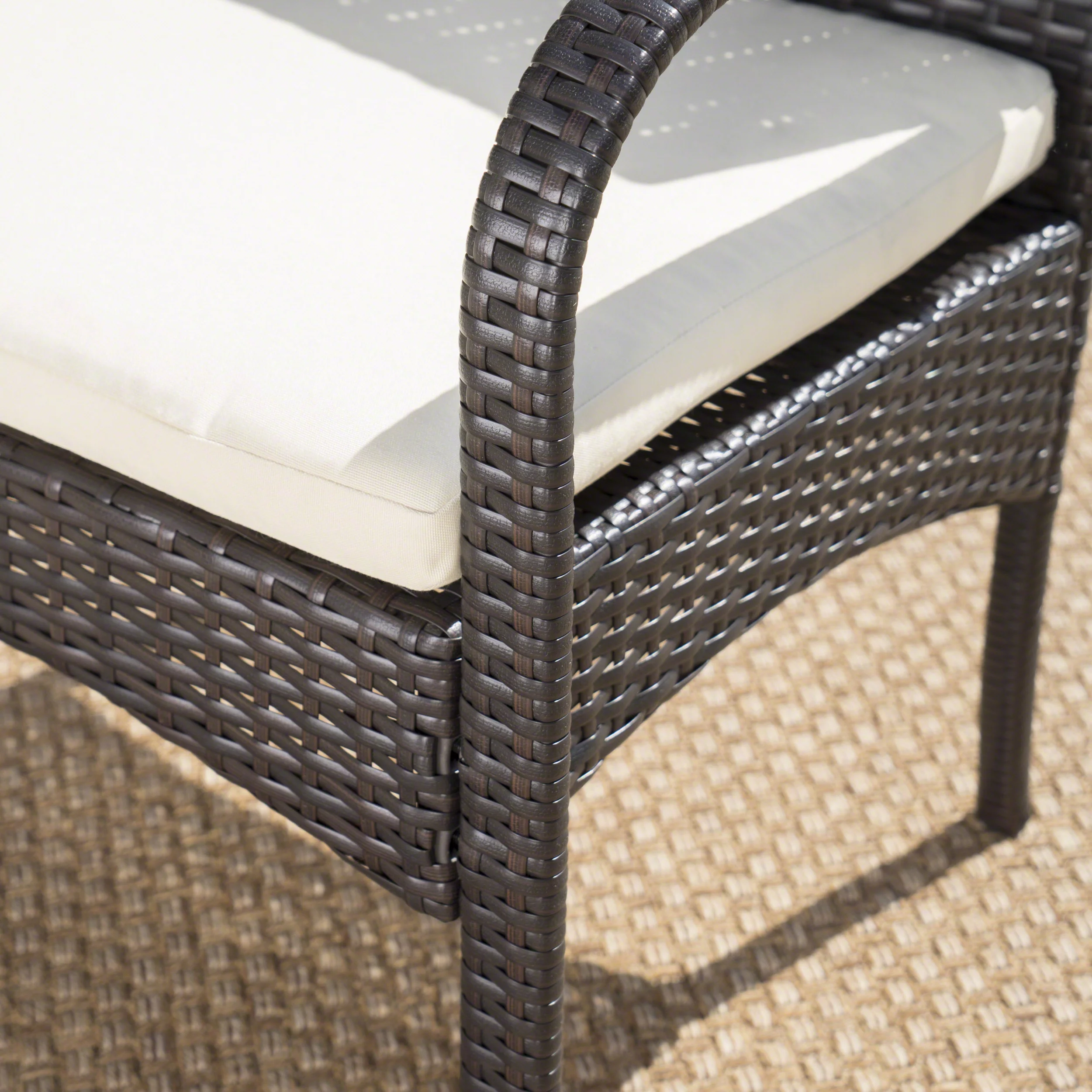 Noble House Aamaya Outdoor 7 Piece Aluminum Dining Set with Wicker Dining Chairs and Cushions, Brown, Black, Multibrown, Crème