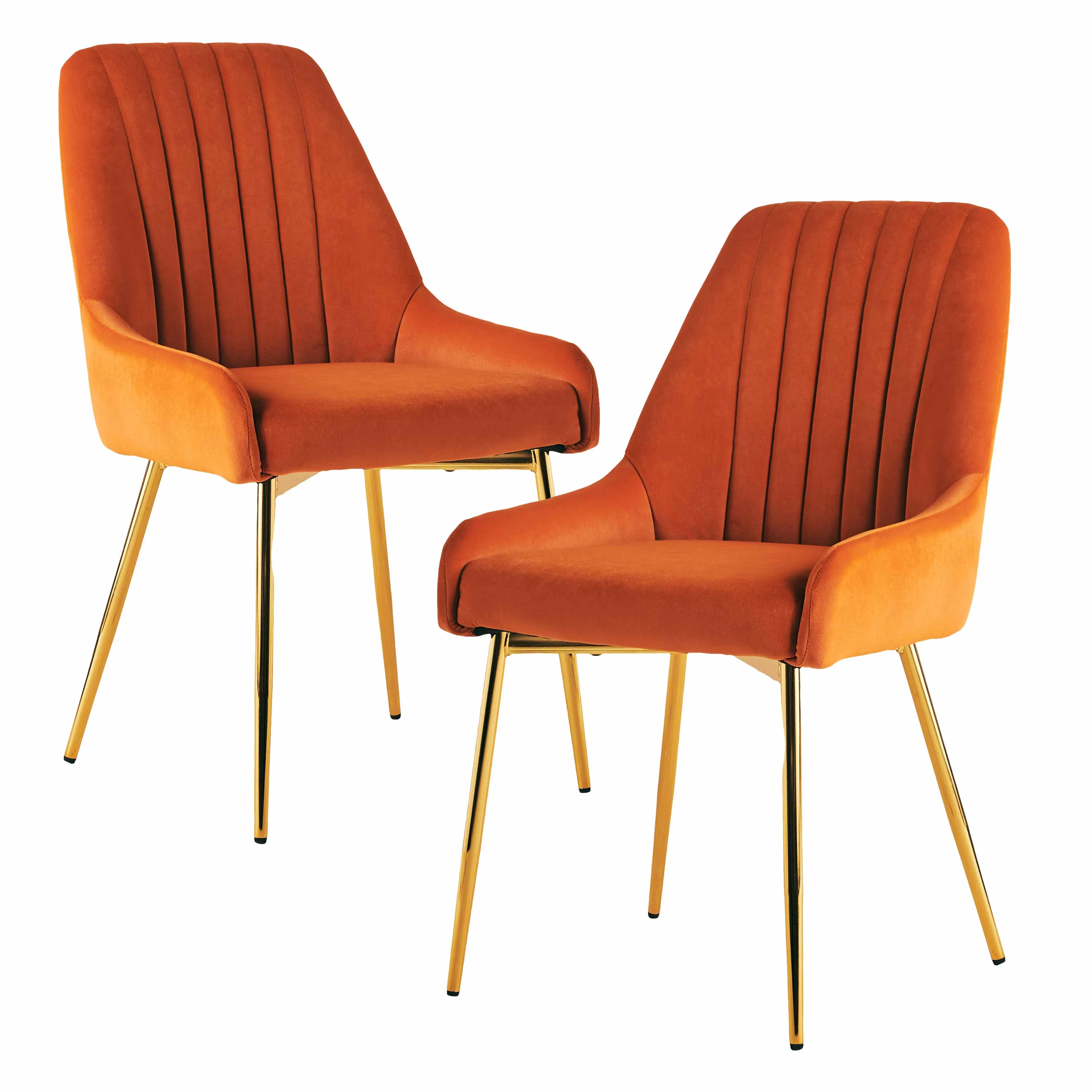 MOJAY Velvet Dining Chairs with Golden Legs, Set of 2, Orange