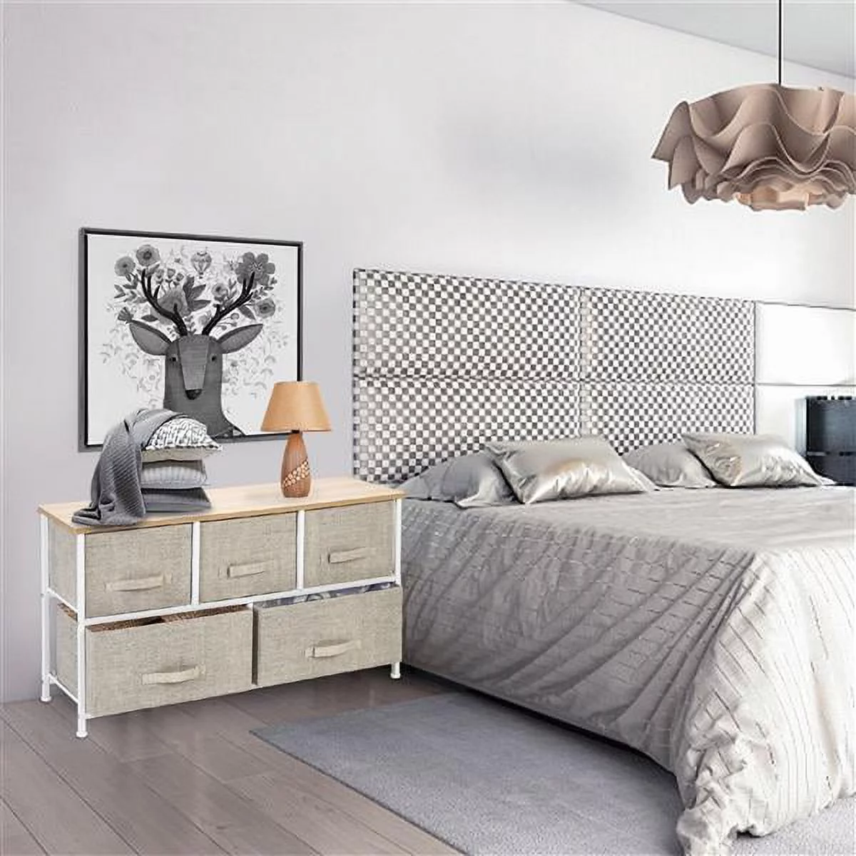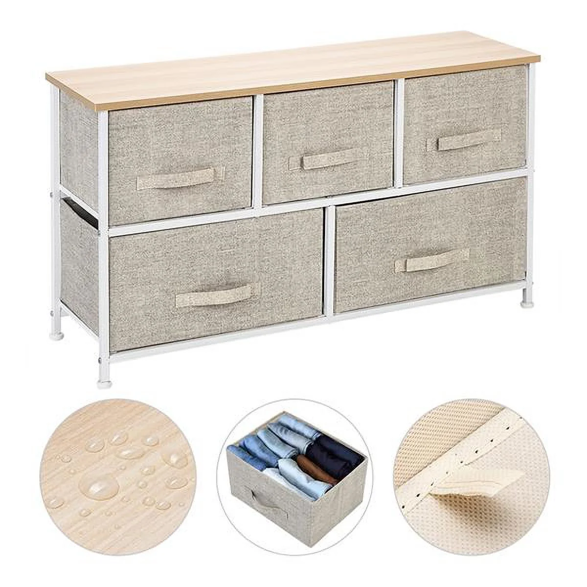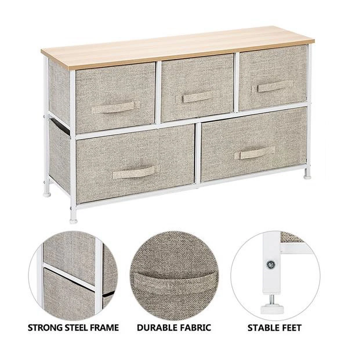 2-Tier Wide Closet Dresser, Nursery Dresser Tower With 5 Easy Pull Fabric Drawers And Metal Frame, Multi-Purpose Organizer Unit For Closets, Dorm Room, Living Room, Hallway, Linen/Natural