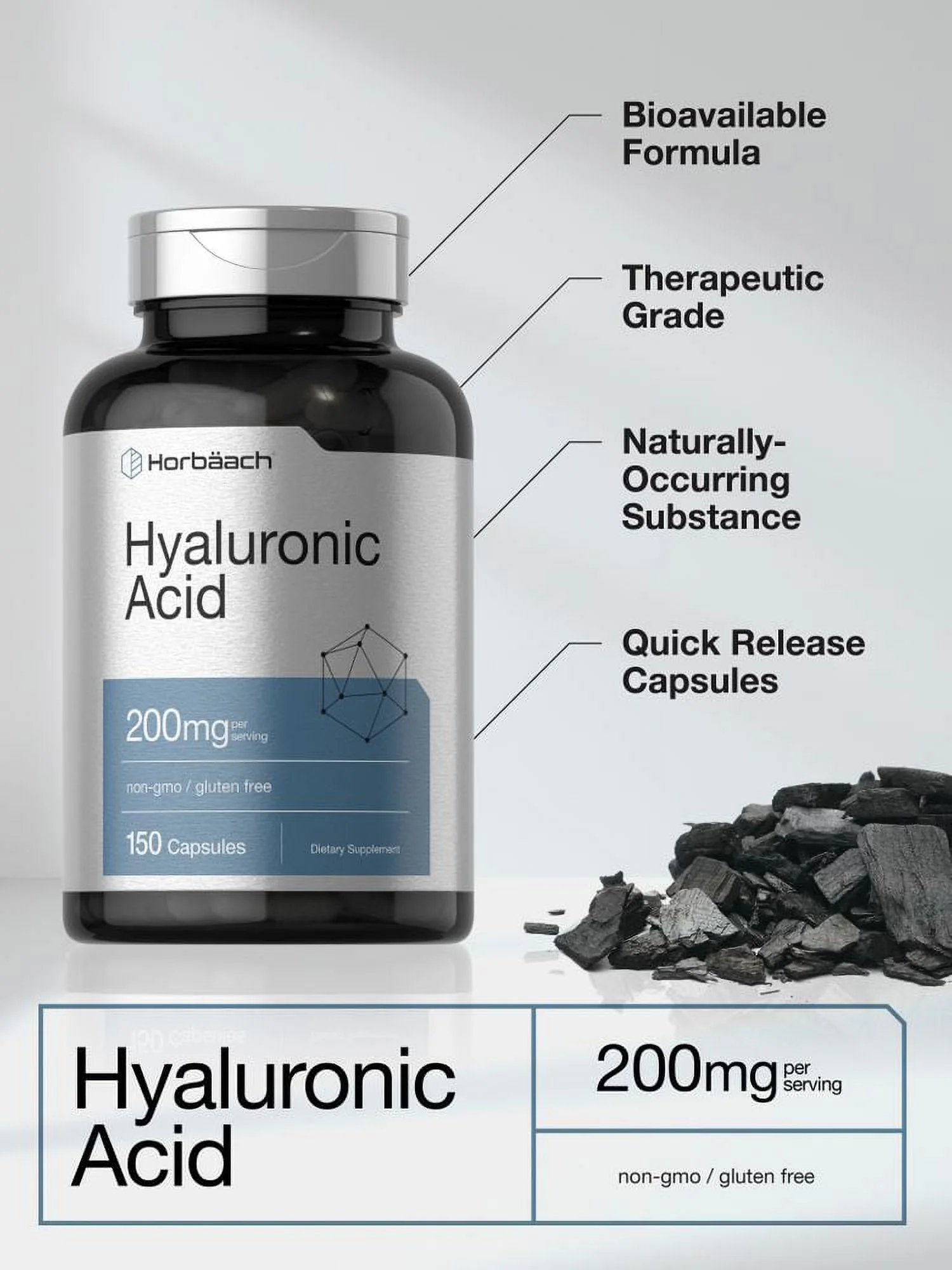 Horbaach Hyaluronic Acid 200 mg 150 Capsules | Non-GMO & Gluten Free Supplement