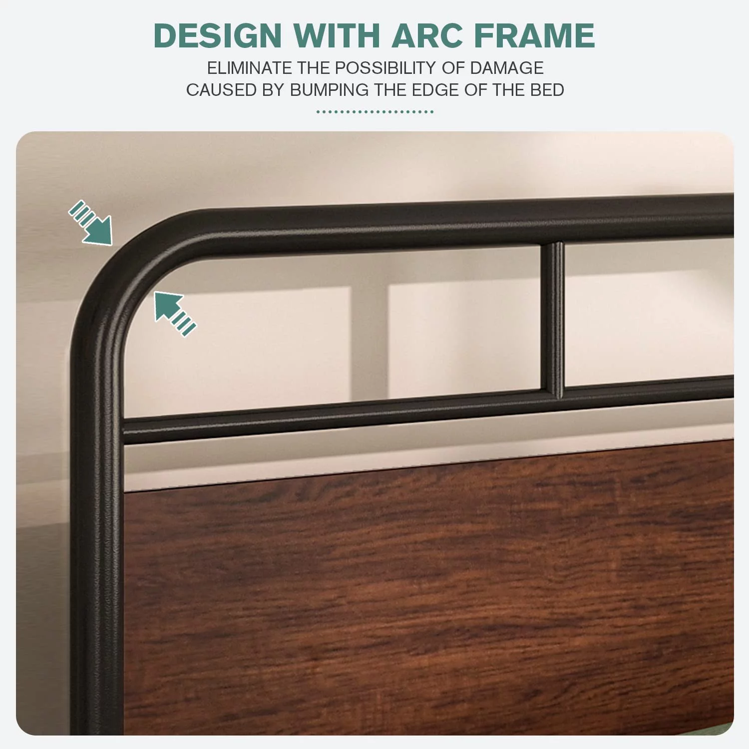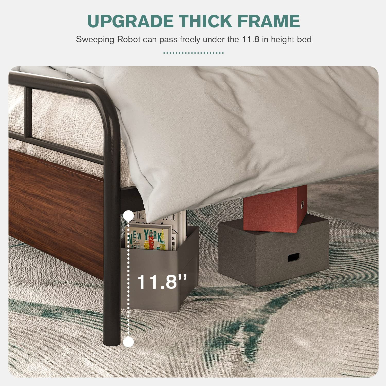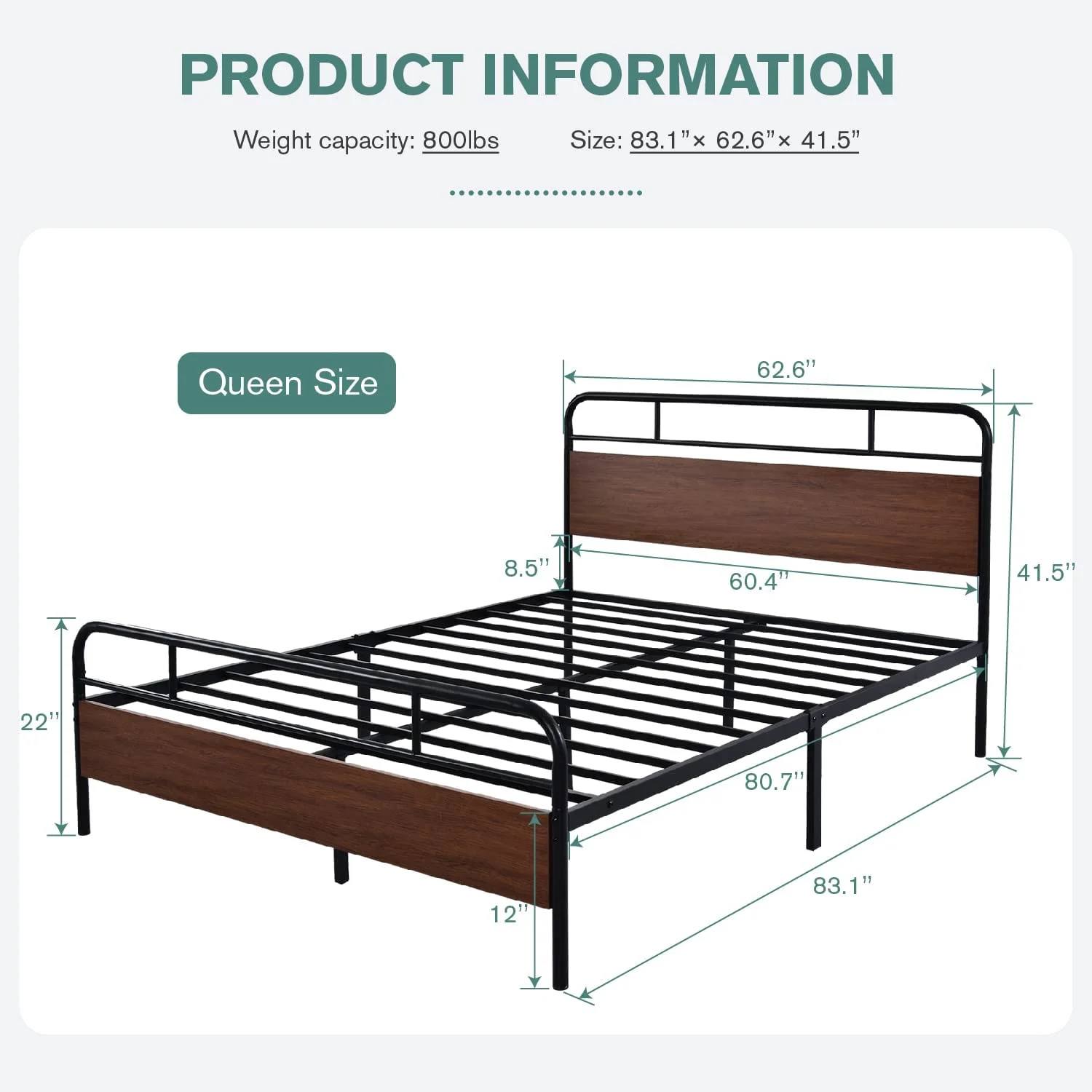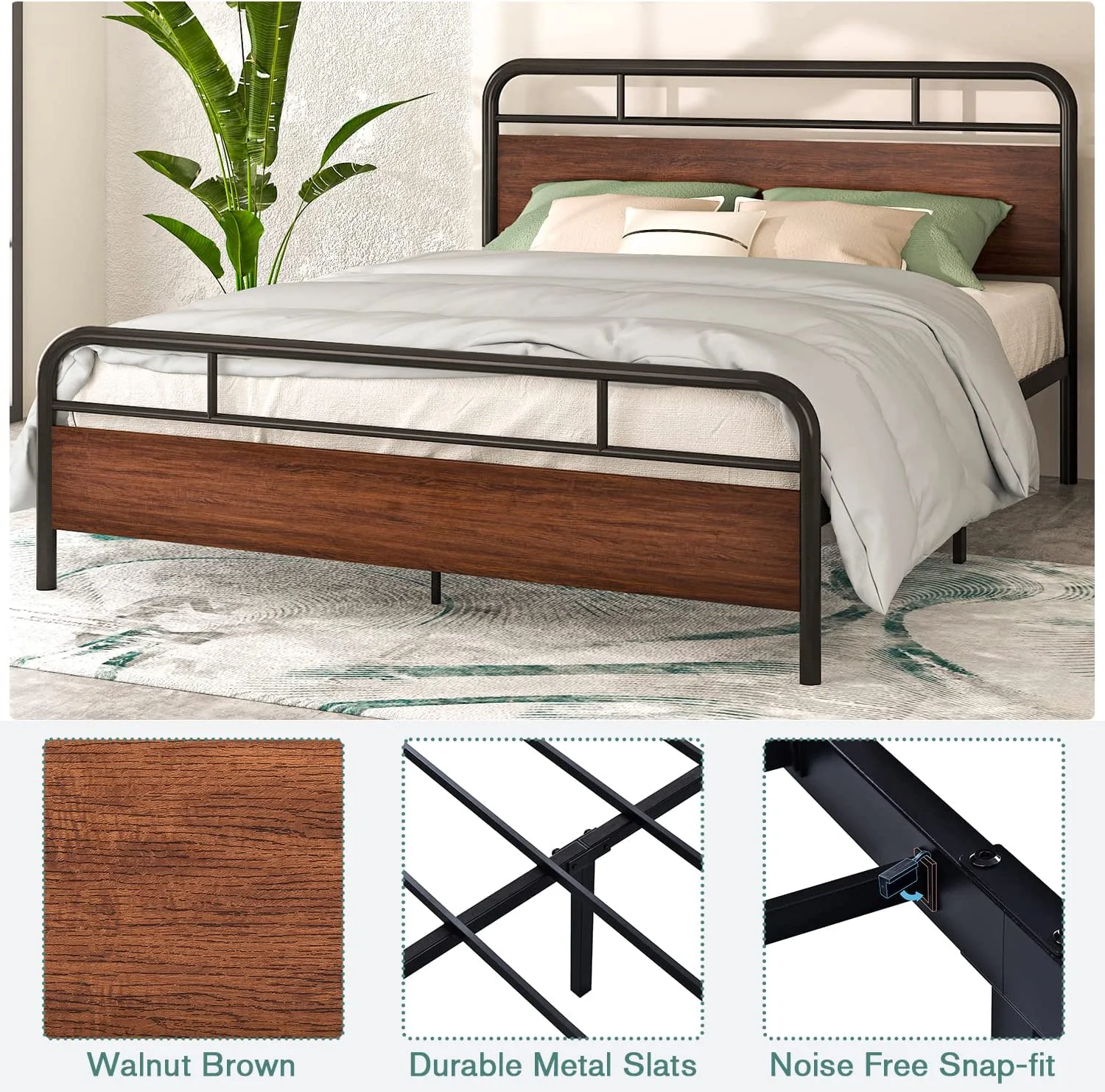 Allewie Walnut Queen Size Metal Platform Bed Frame with Wooden Headboard, Noise free