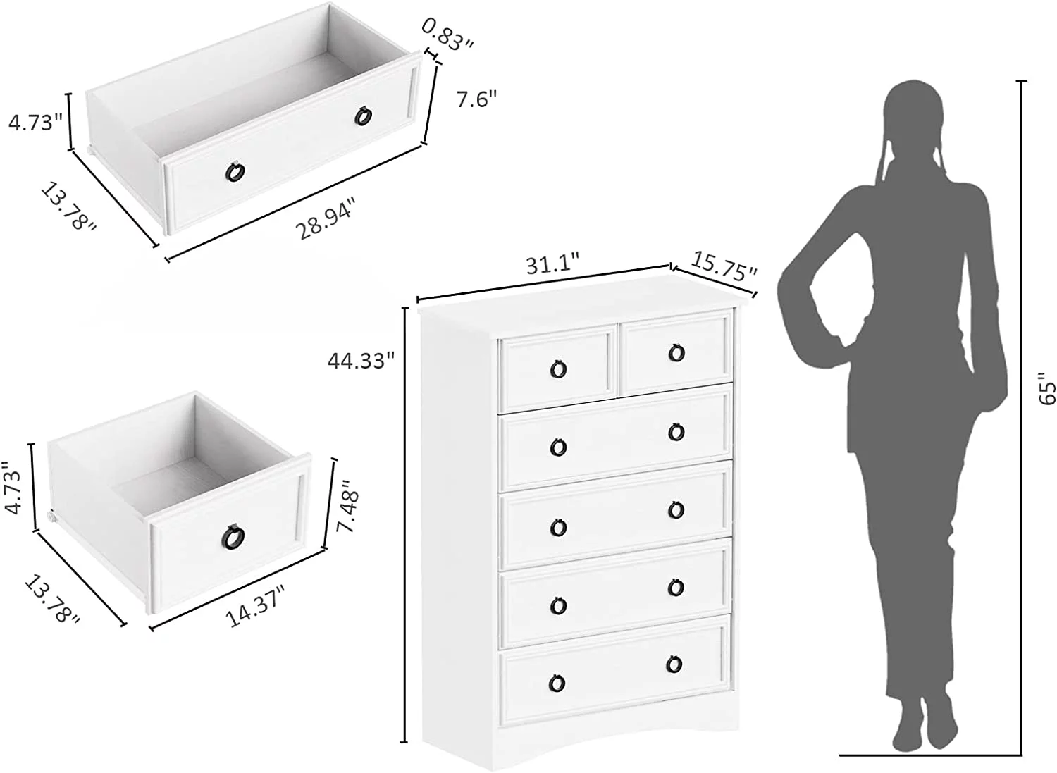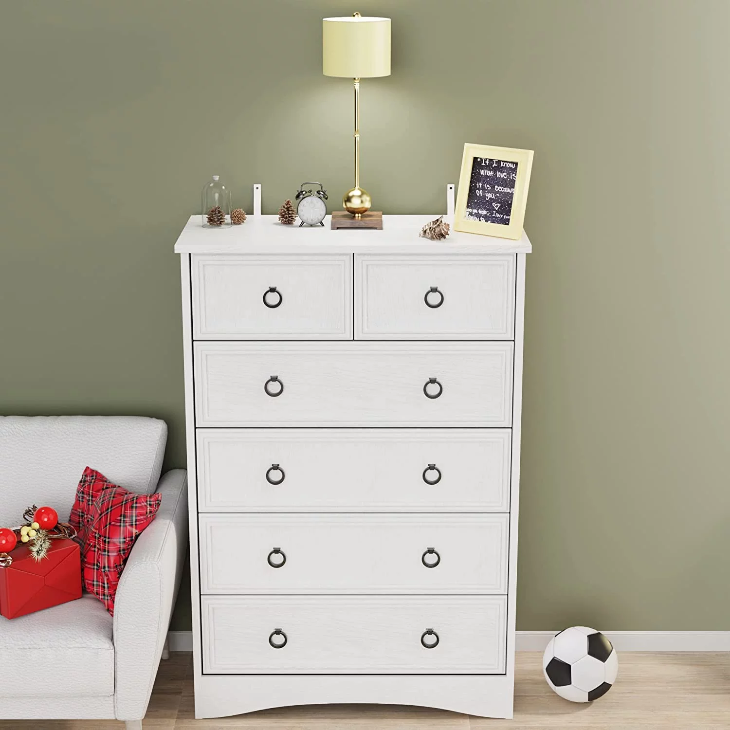 White Dressers, Modern Tall Chest of Drawers for Bedroom, 6 Drawer Dressers Organizers and Storage for Clothes