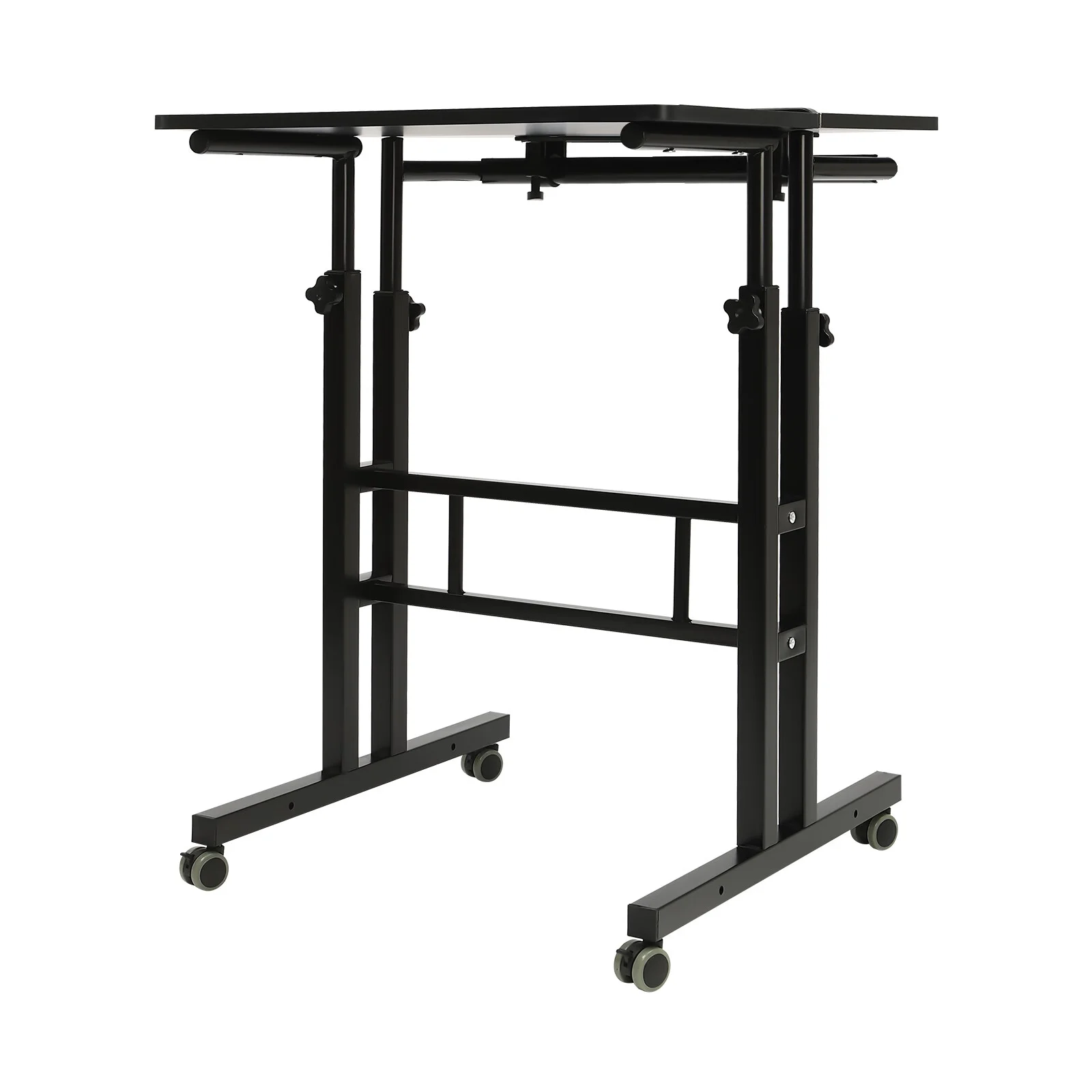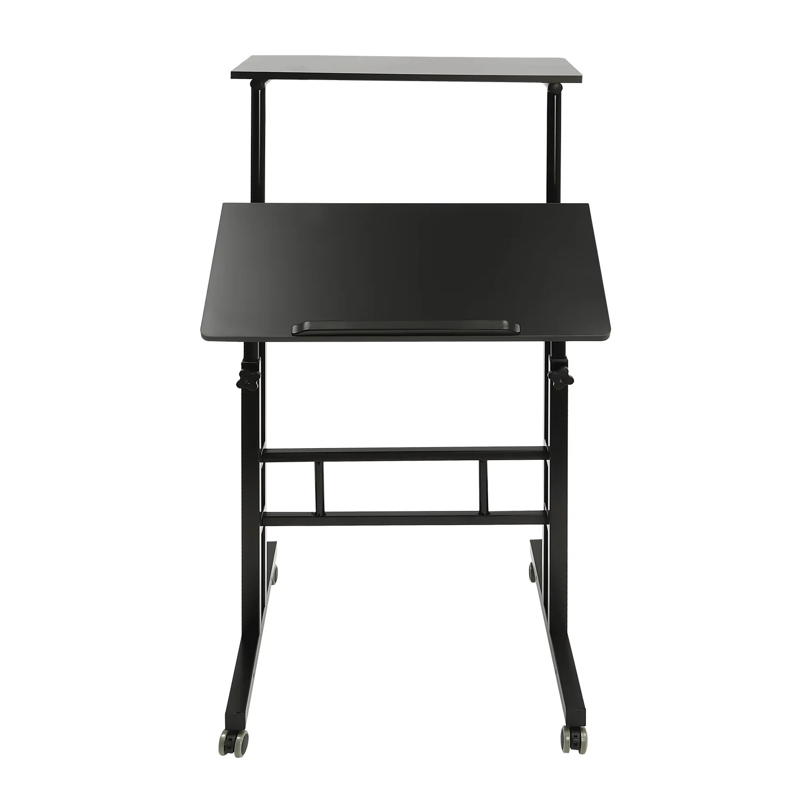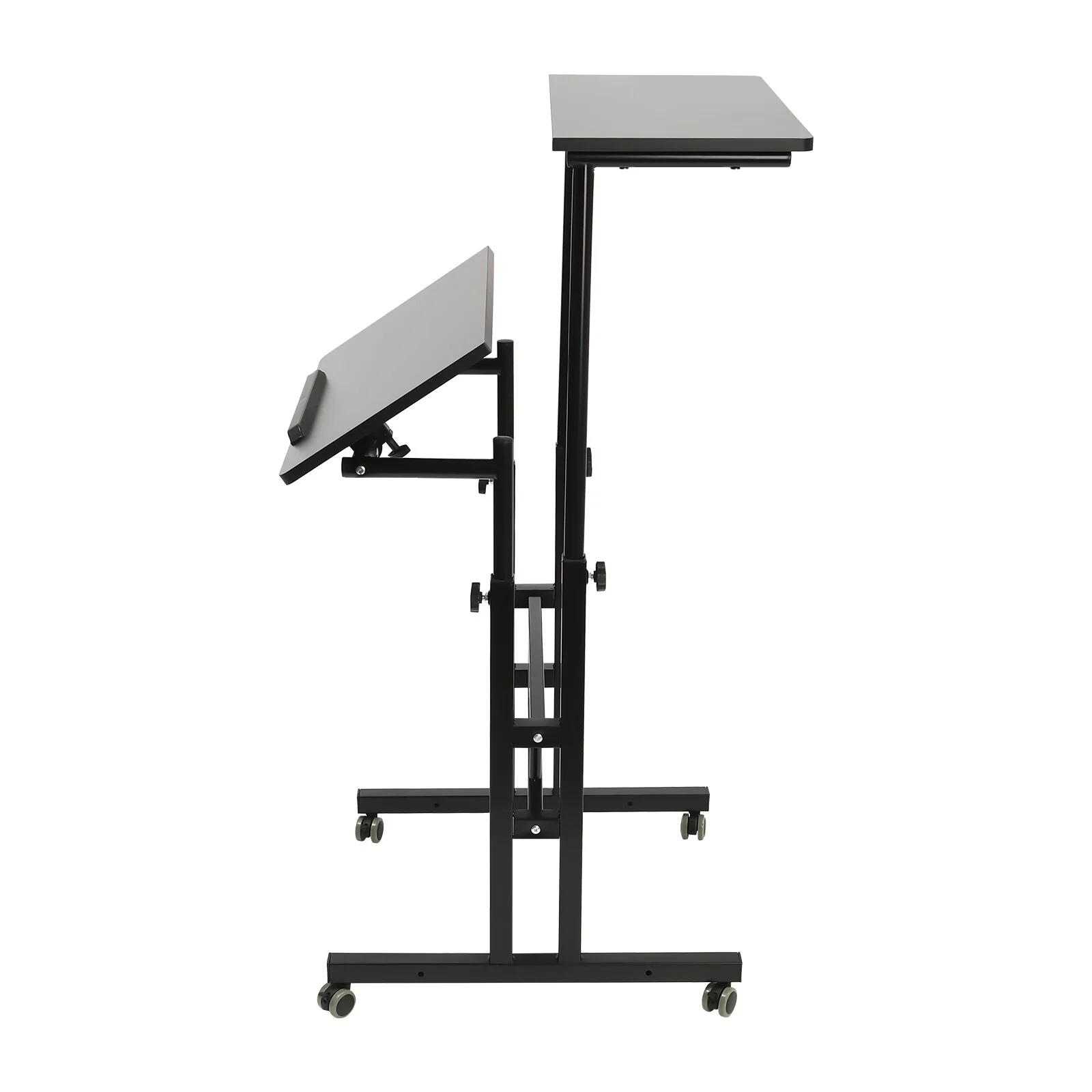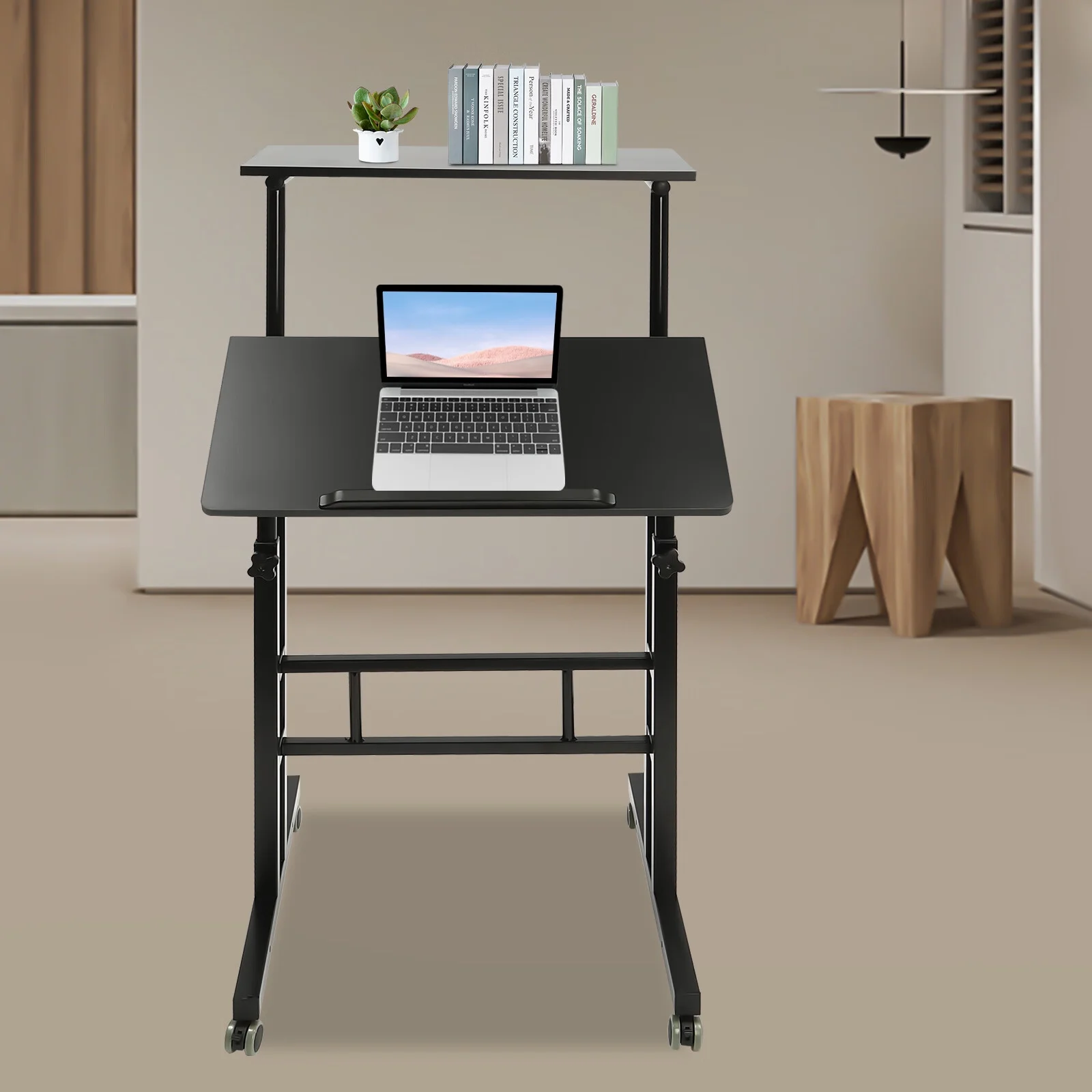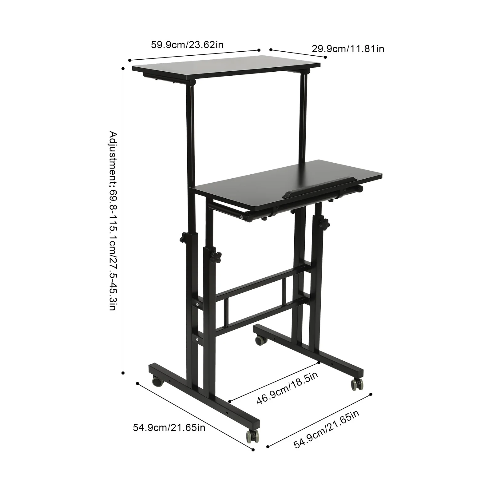 Loyalheartdy 24" Mobile Stand Up Desk Adjustable Height Small Storage Desk with Wheels for Home Office (Black)