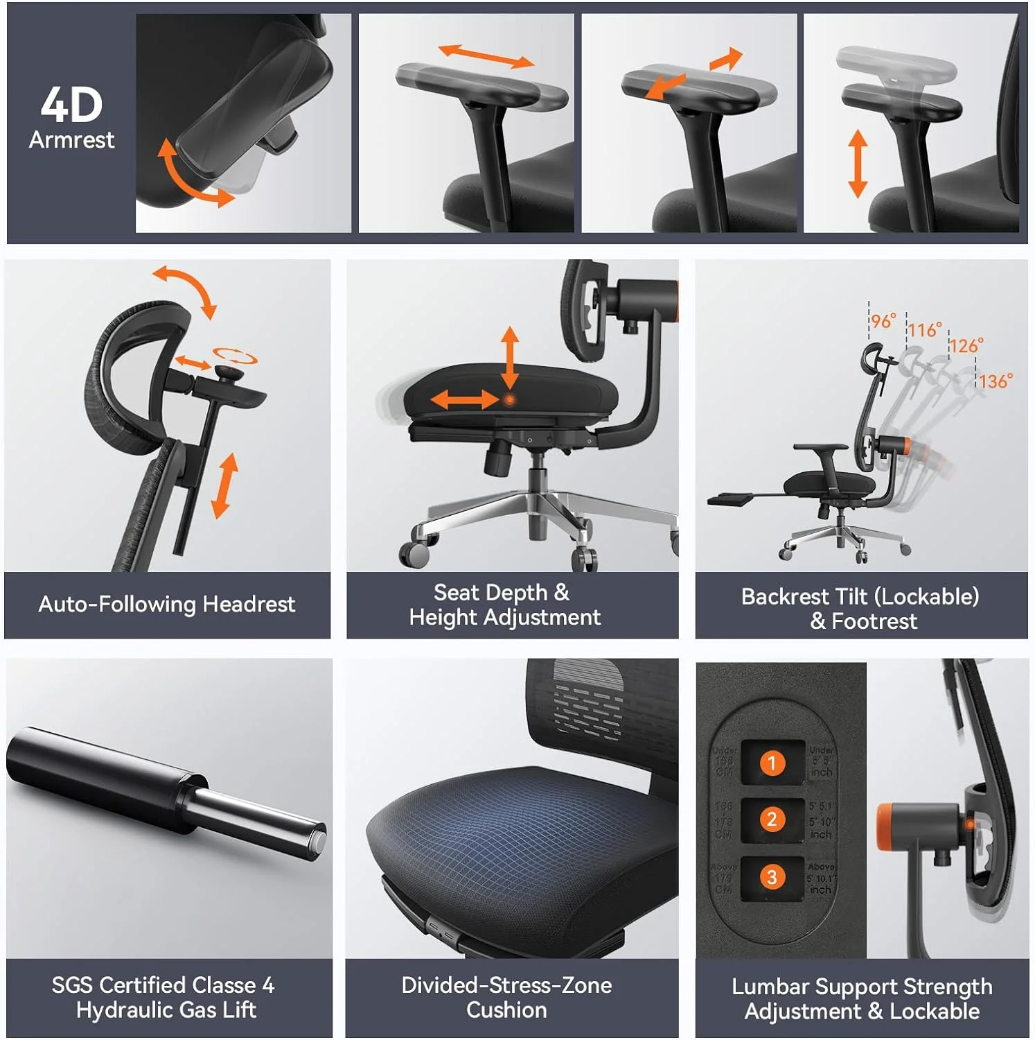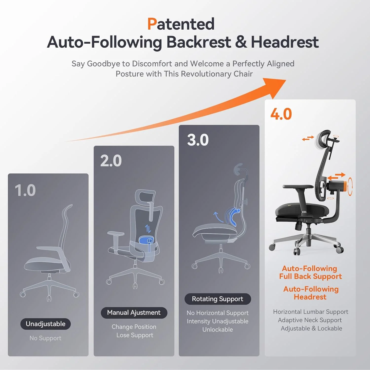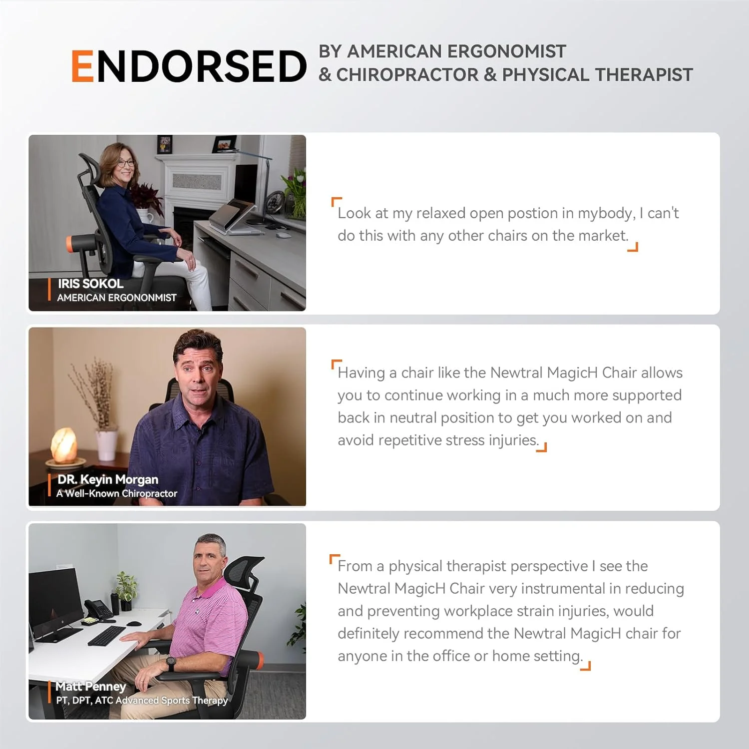 Newtral MagicH-BPro Ergonomic Chair with Footrest - High Back Desk Chair with Ultra Adaptive Lumbar Support & Auto-Following Headrest, 4D Armrest, Adjustable Seat Depth & Height, Home Office