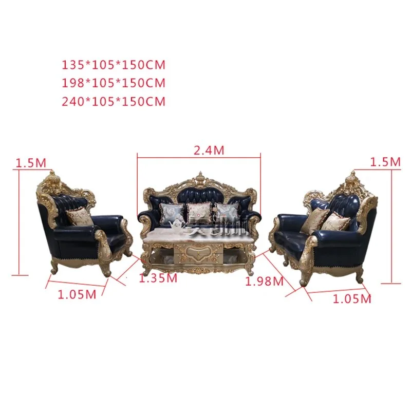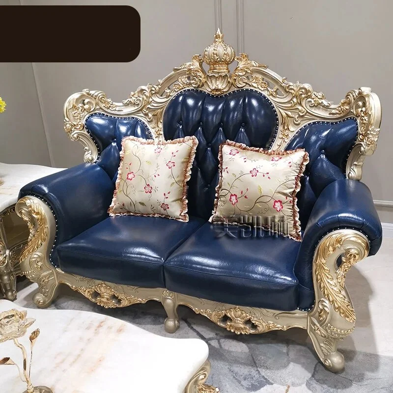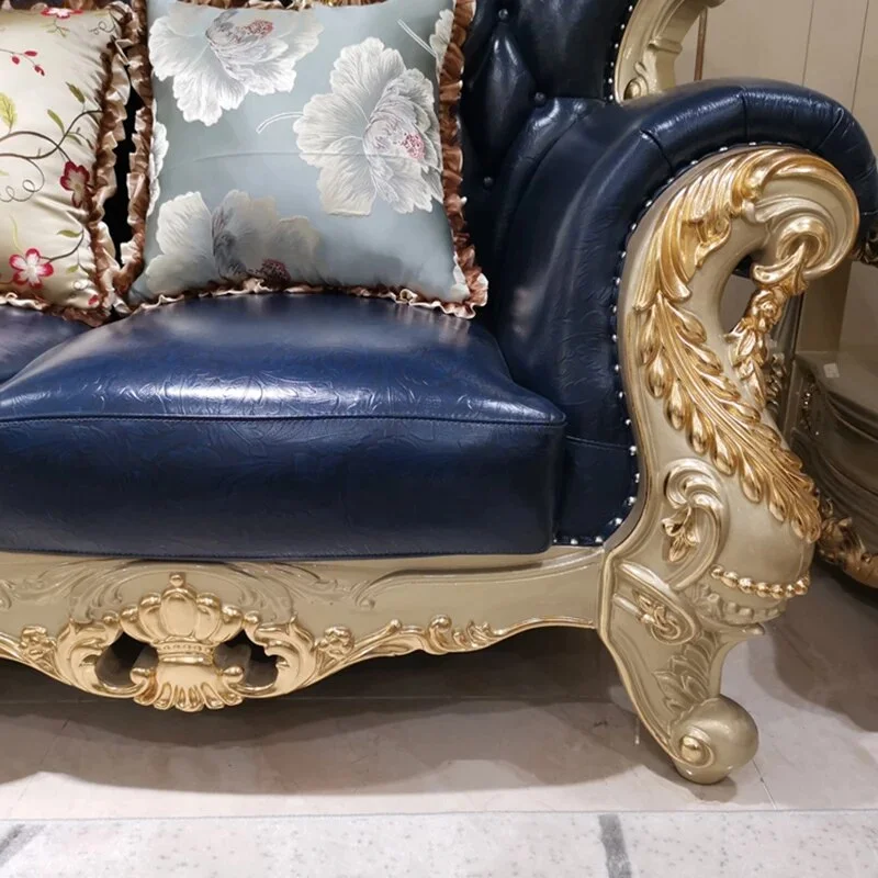 European-style Leather Sofa 123 Combination Luxury Champagne Furniture American All-carved Solid Wood Couches for Living Room