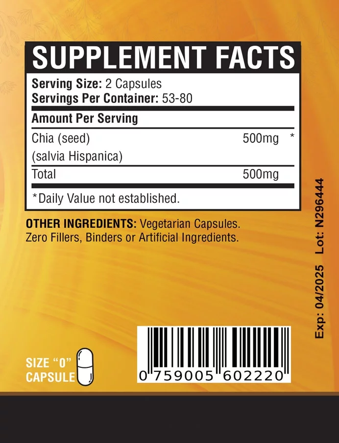Orgainc Chia Seeds - 320 Vegetable Capsules - Omega-3 - Good Fiber Source