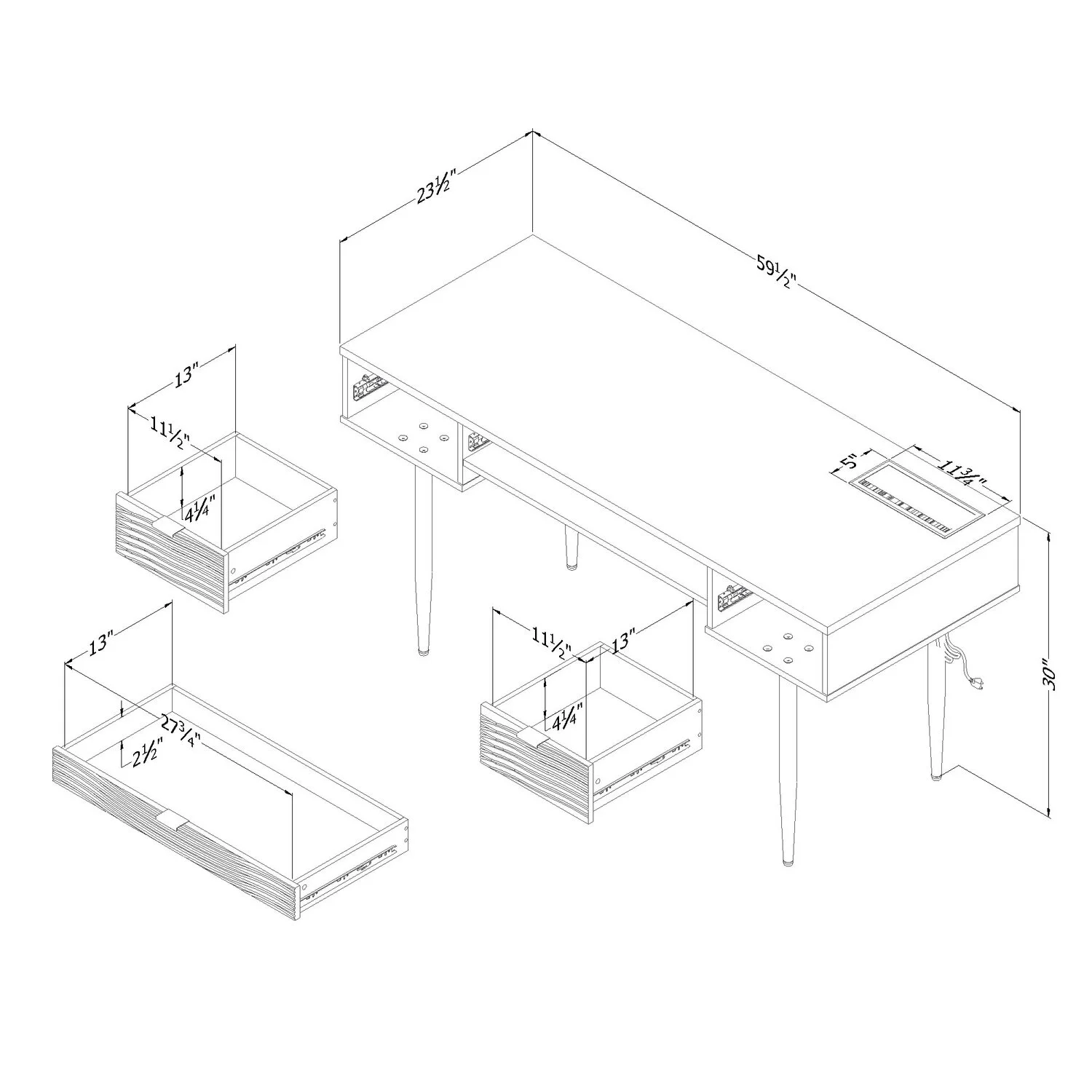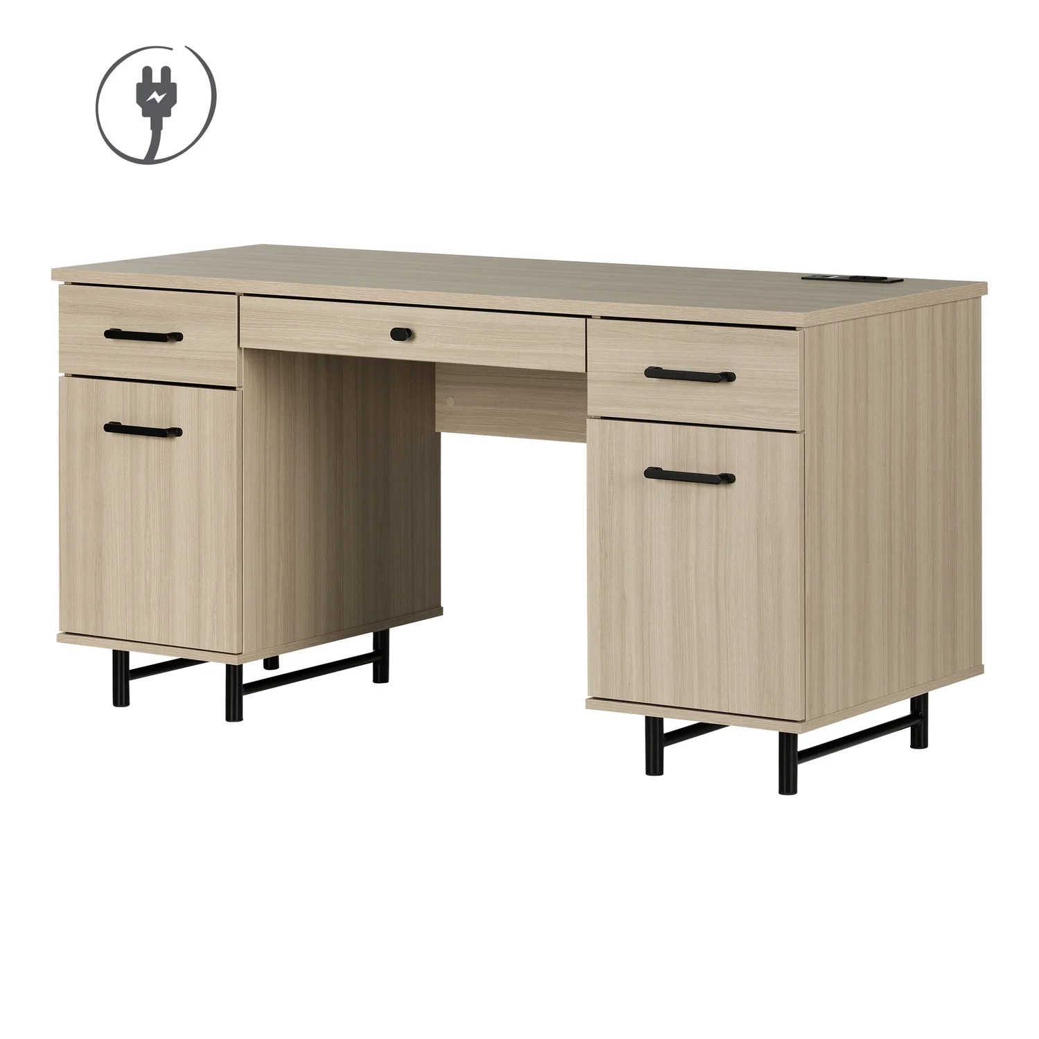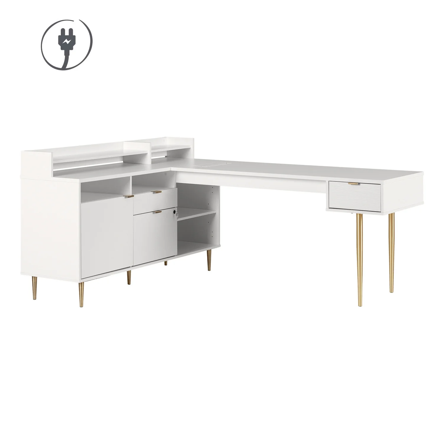 South Shore Koryn 59.5"W Engineered Wood Desk in White/Gold Finish