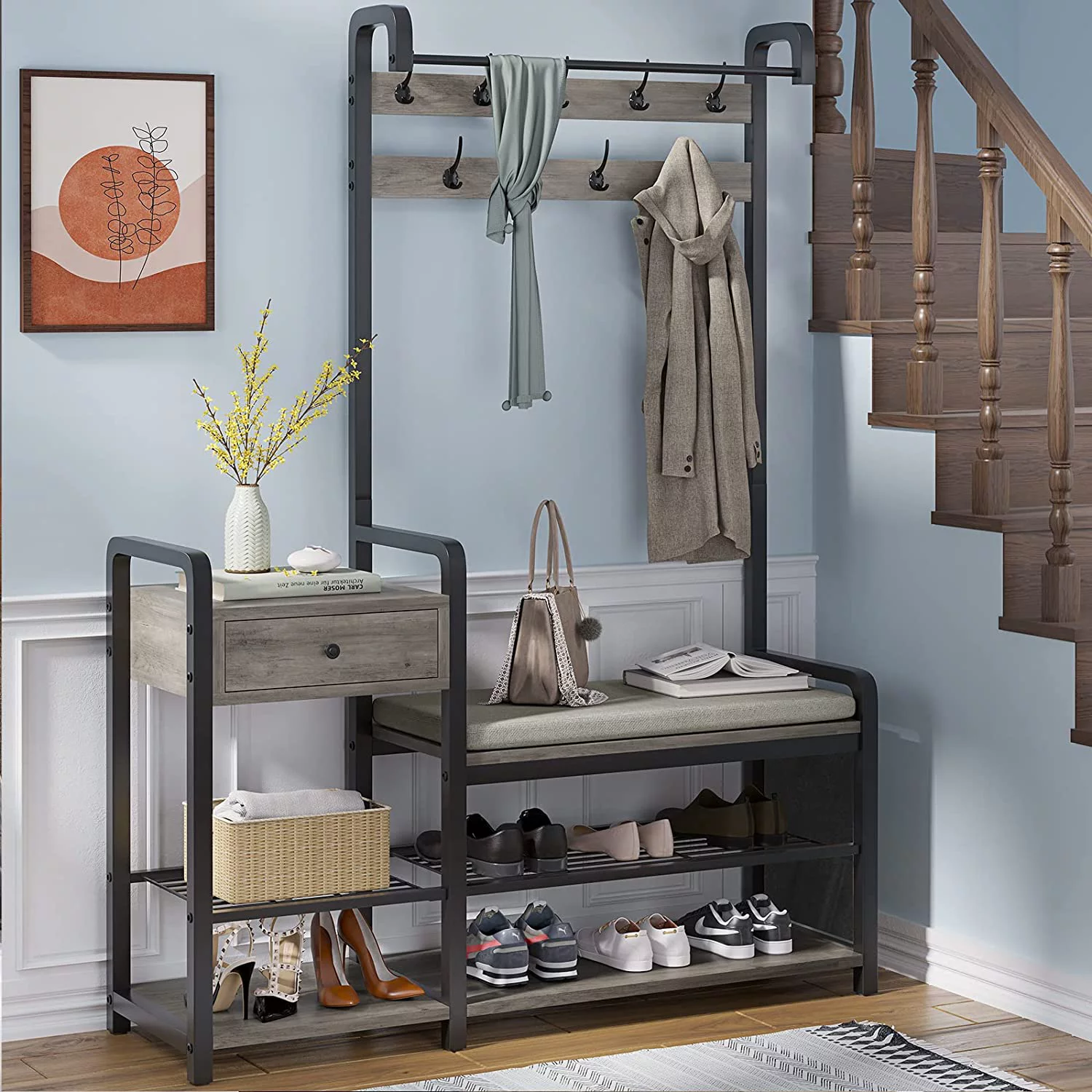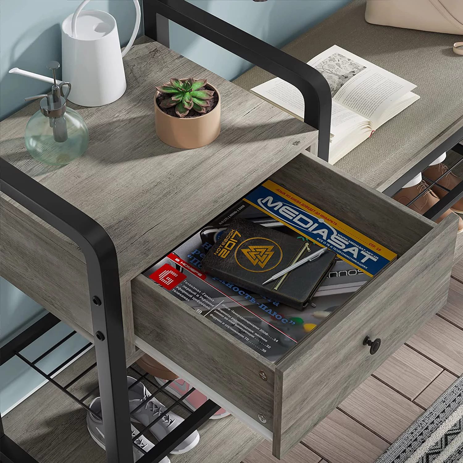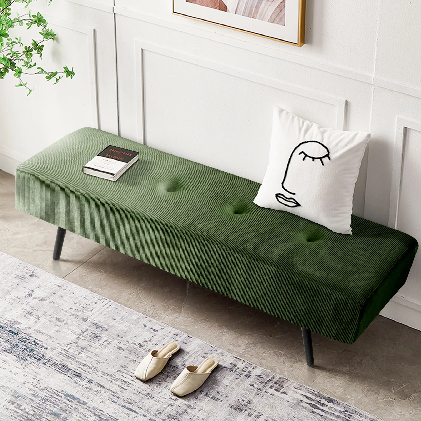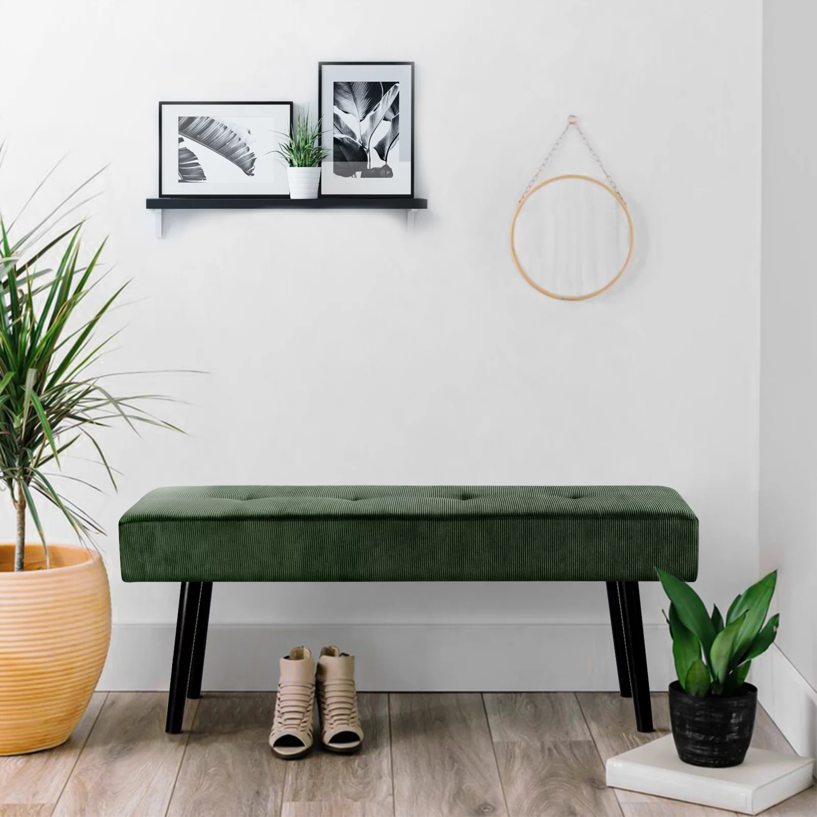 WELLET Modern Entryway Bench, Corduroy Seat for End of Bed, Green