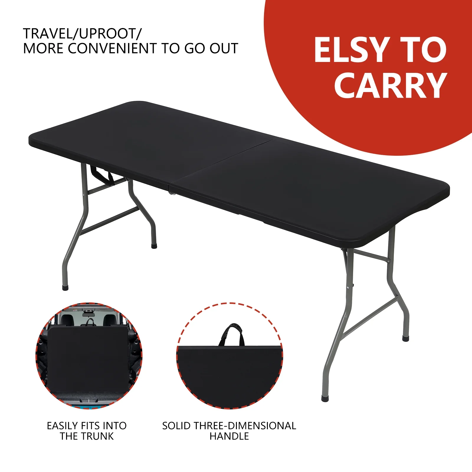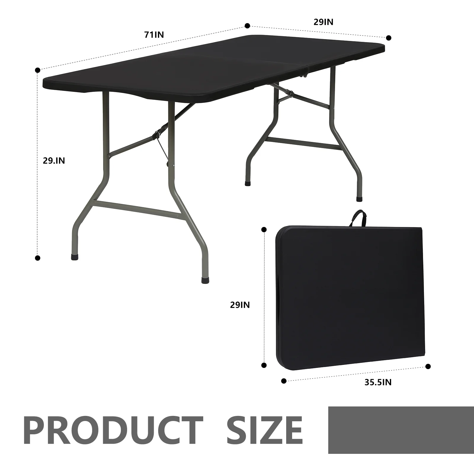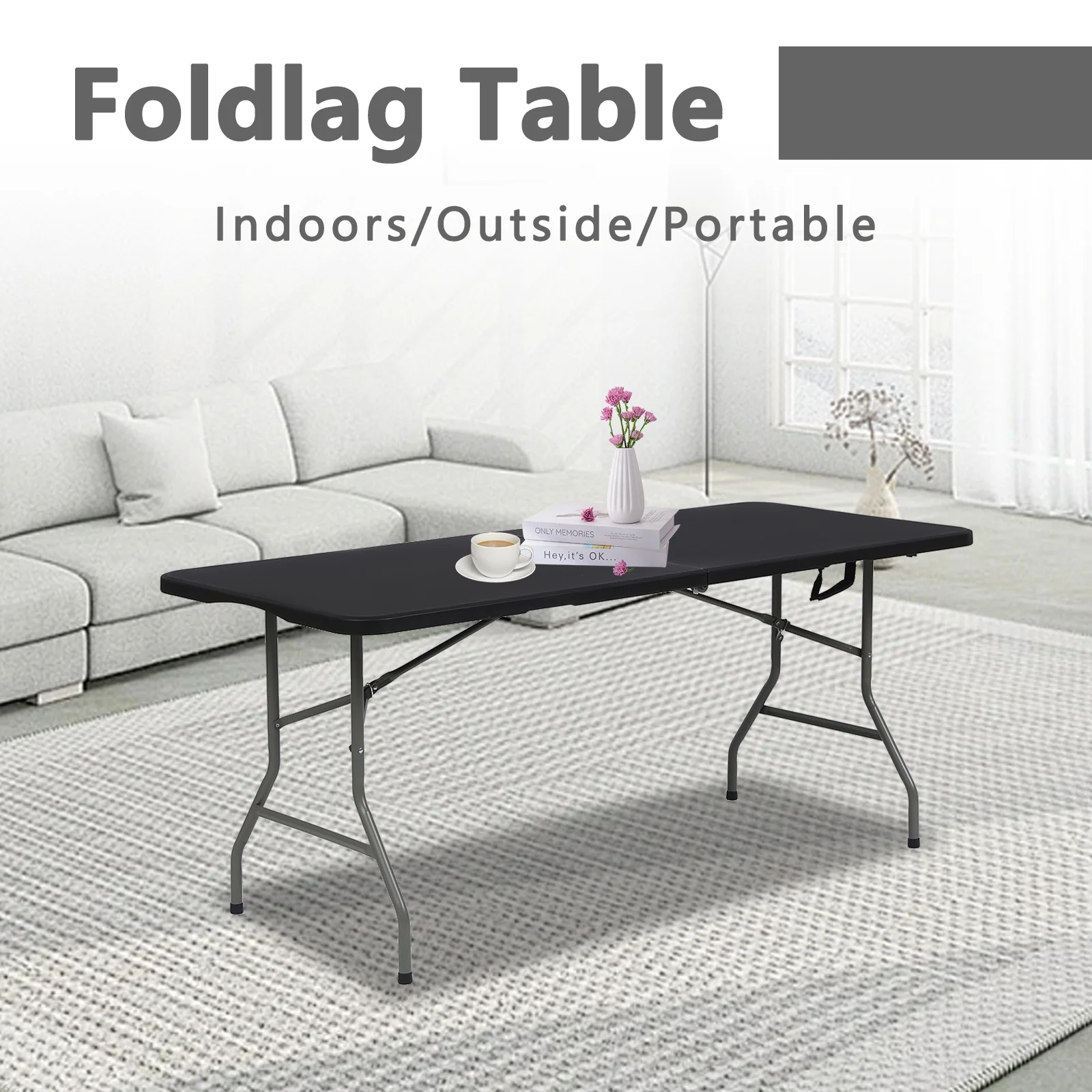 SUGIFT 6ft Folding Table, Portable Plastic Tables for Party, Picnic, Camping, Black
