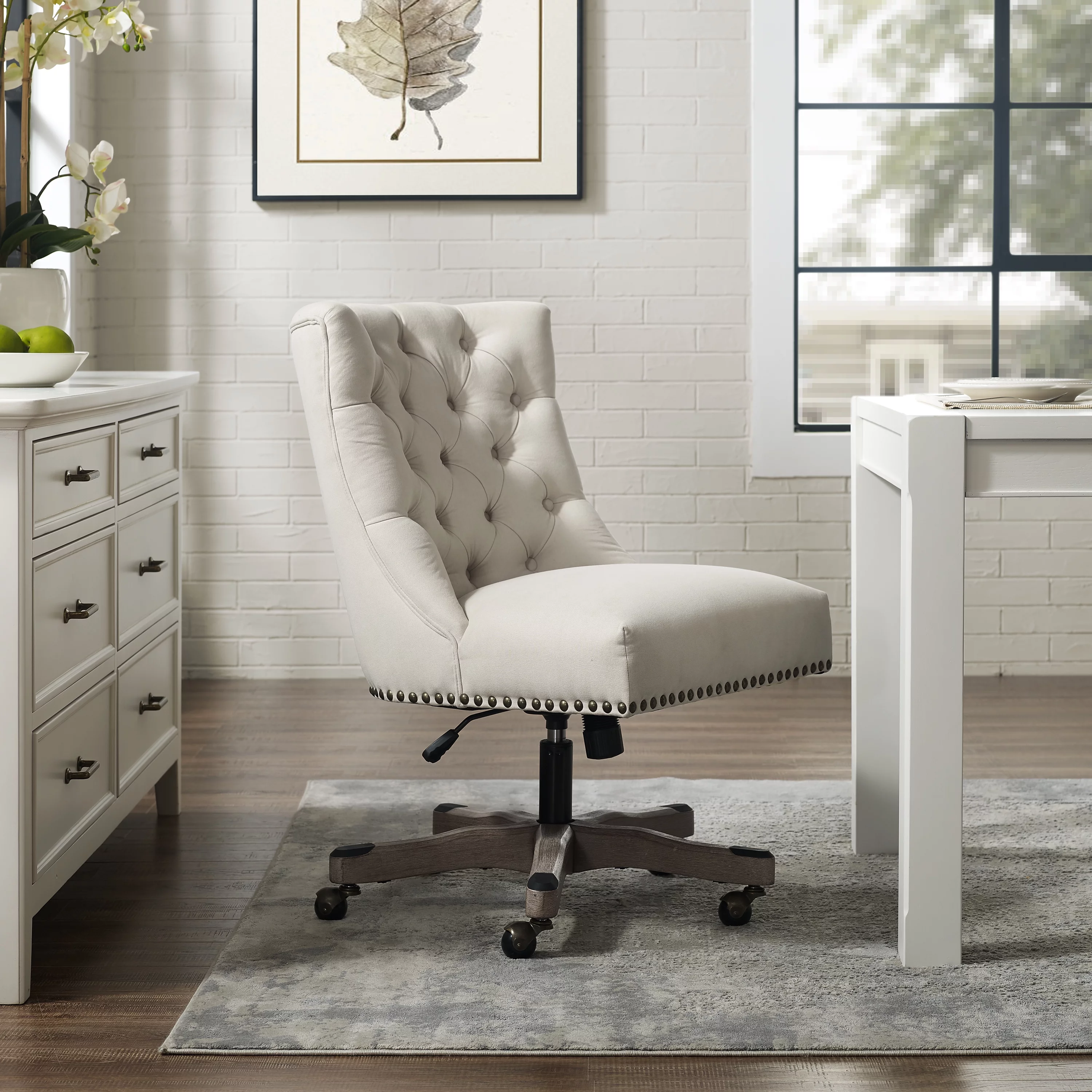 Mid Century Swivel Accent Chairs Modern Barrel Desk Chair Faux Linen,Beige