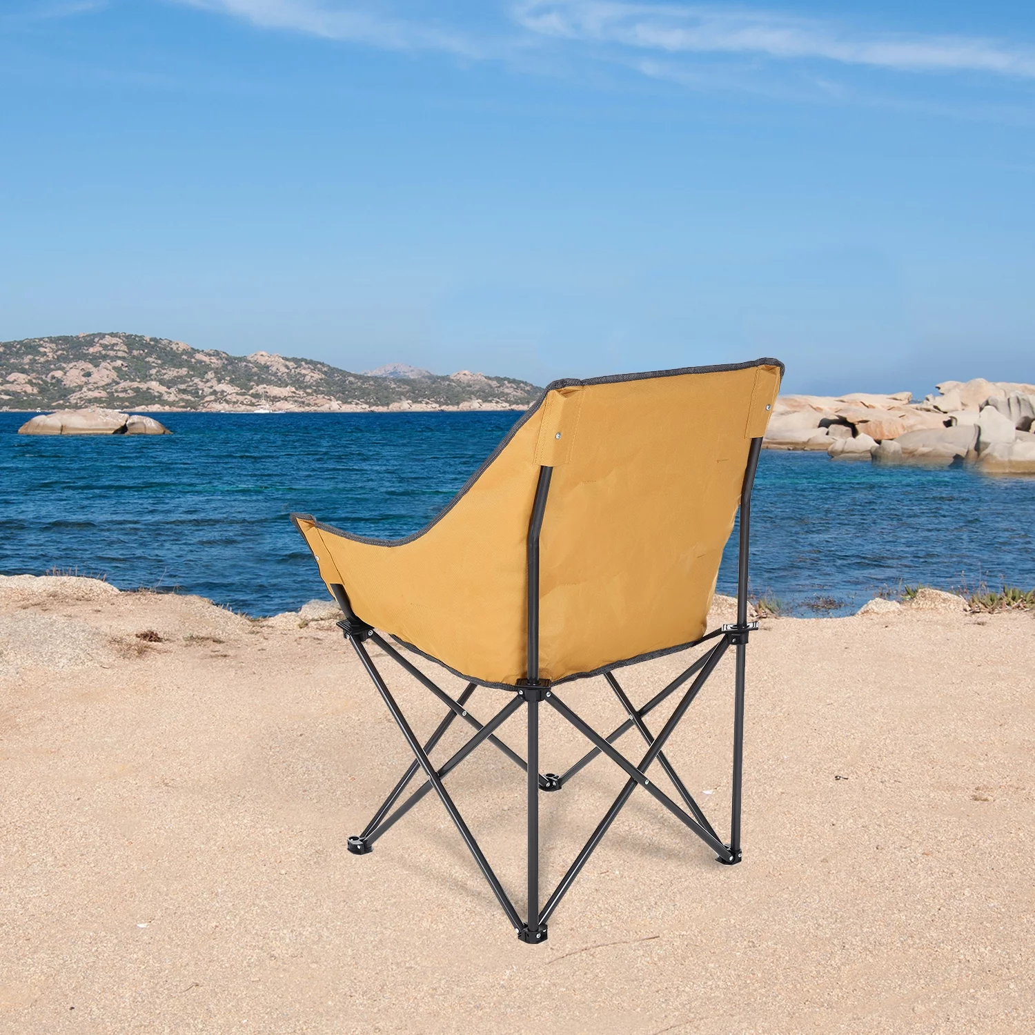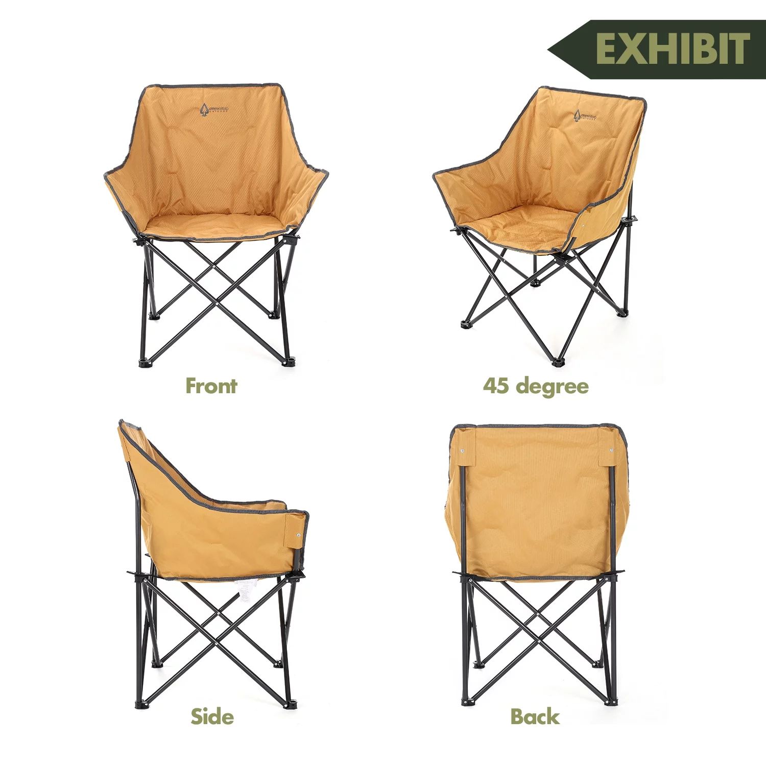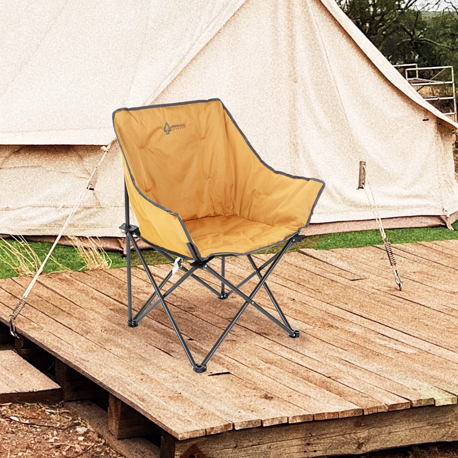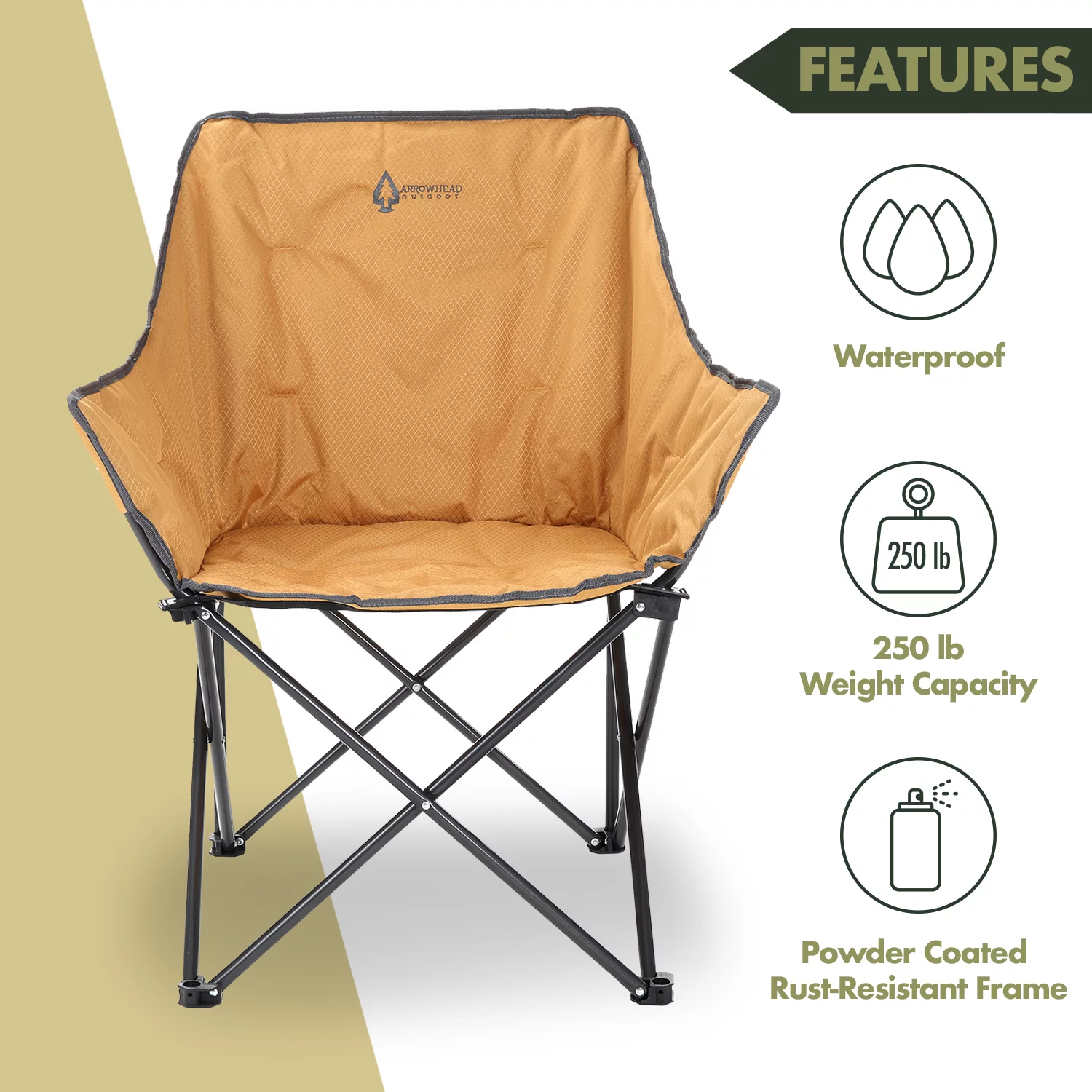 ARROWHEAD OUTDOOR Portable Folding Camping Quad Bucket Chair, Compact, Heavy-Duty, Steel Frame, Supports up to 250lbs | Includes Carrying Bag | USA-Based Support (Tan)