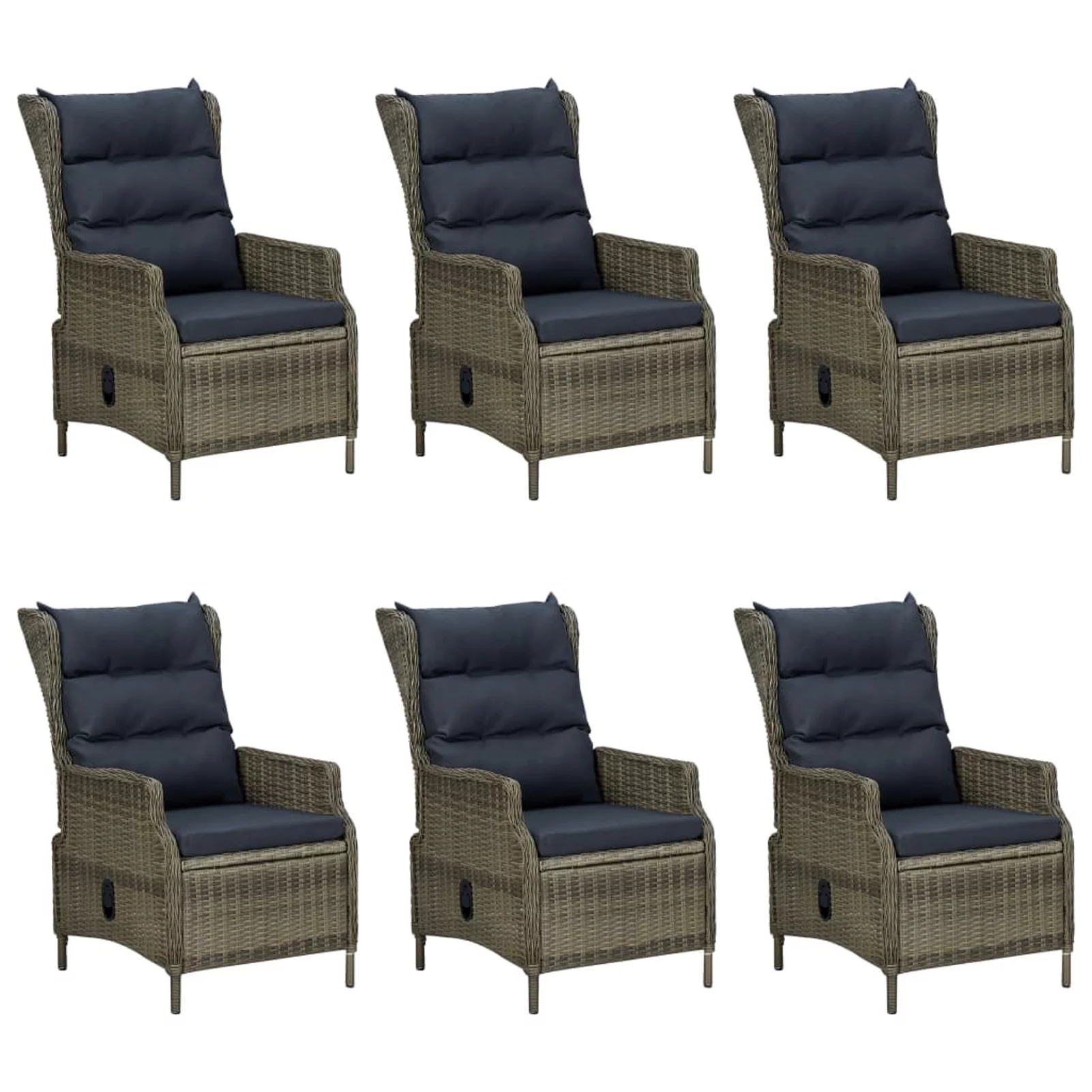 Anself 7 Piece Patio Dining Set Glass Tabletop Table and 6 Backrest Adjustable Chairs with Seat and Back Cushion Brown Poly Rattan for Outdoor, Garden, Backyard, Balcony