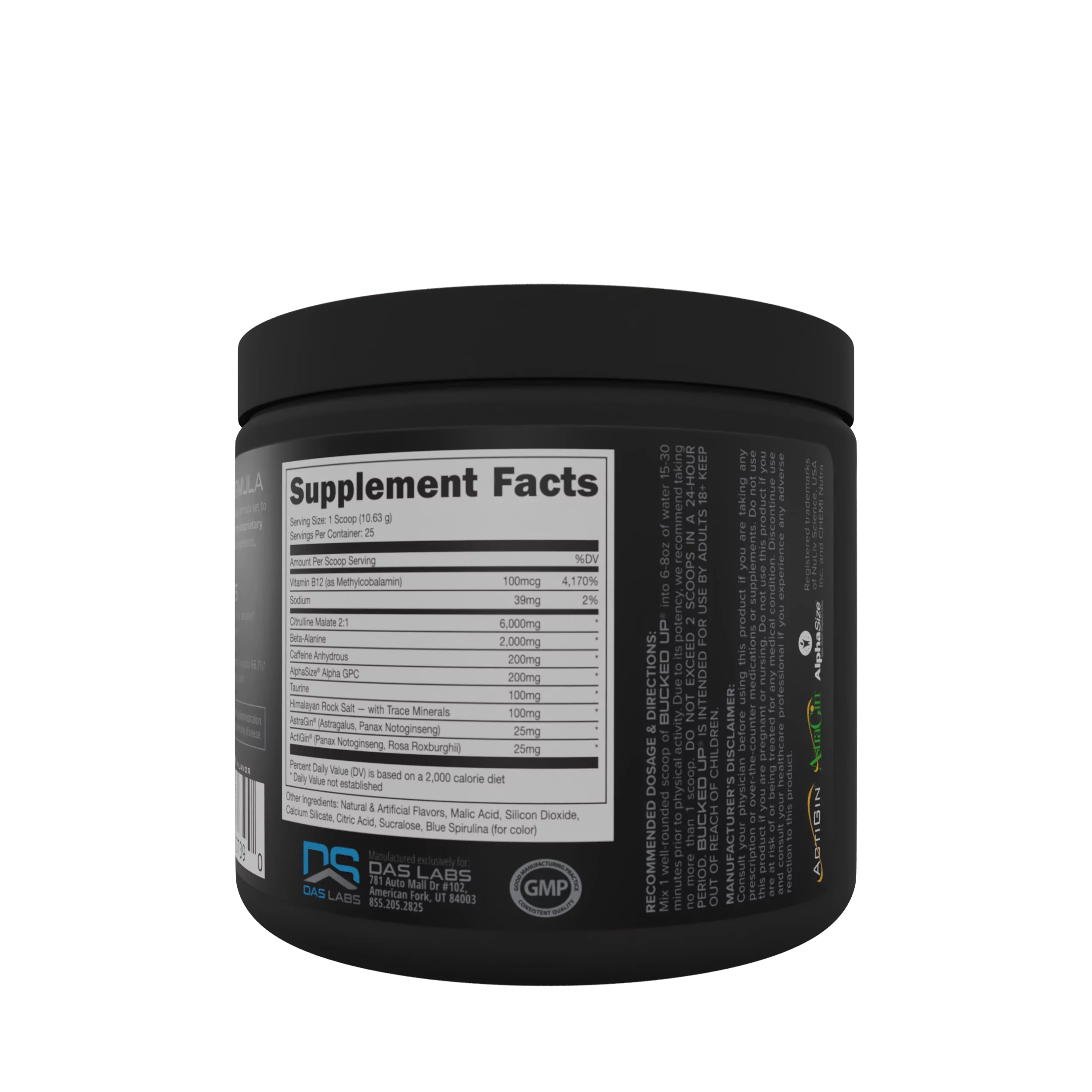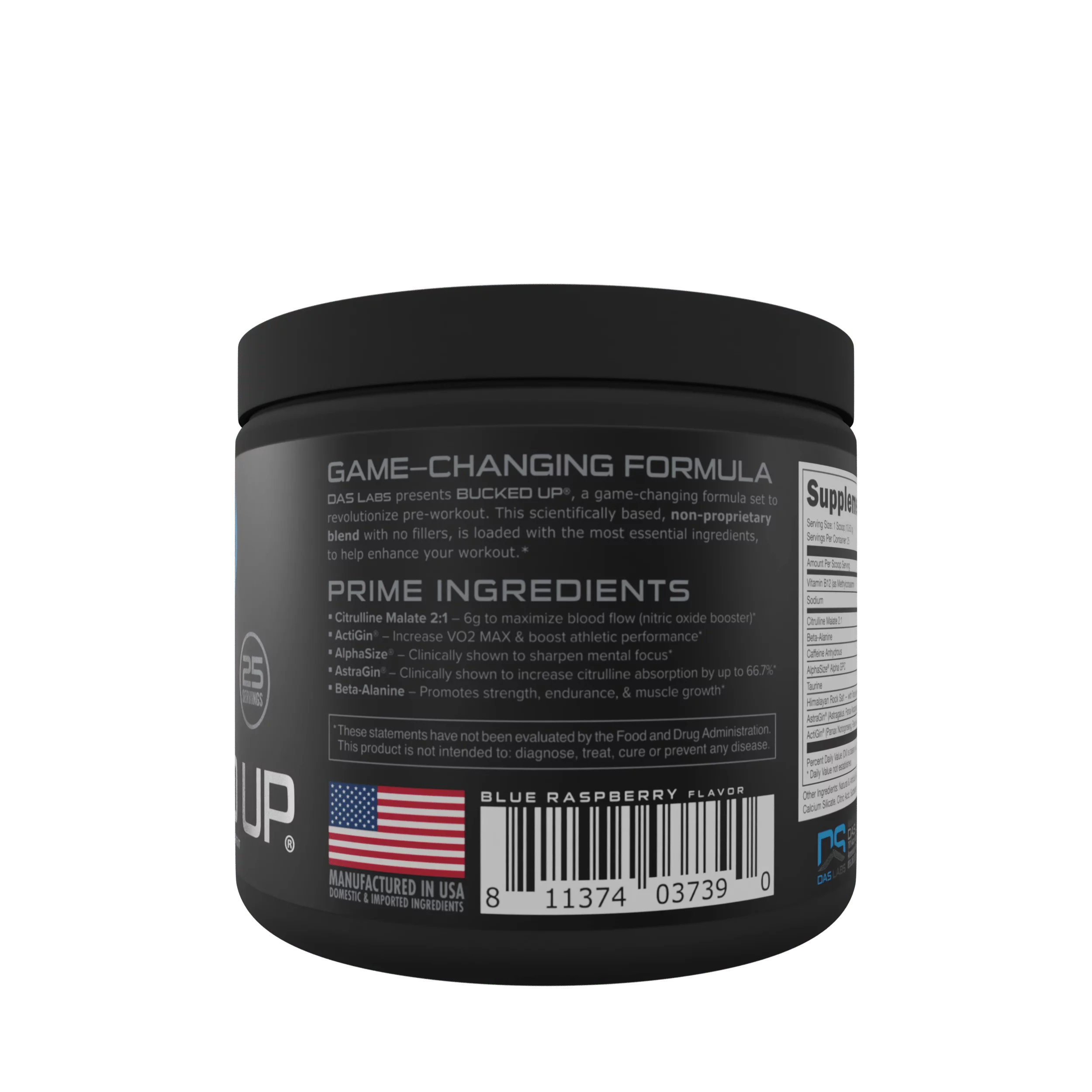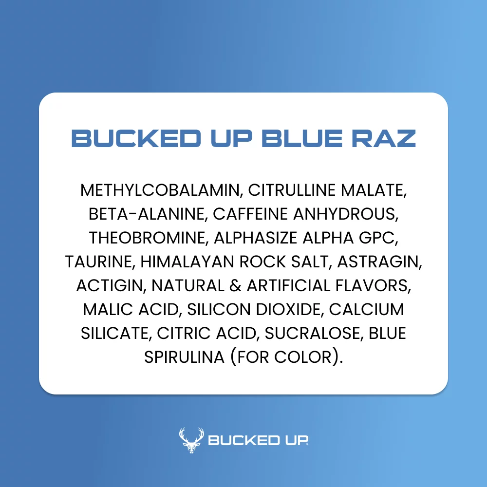 Bucked Up Pre-Workout Powder, Blue Raz, Vitamin B12 & 200mg Caffeine, 25 Servings