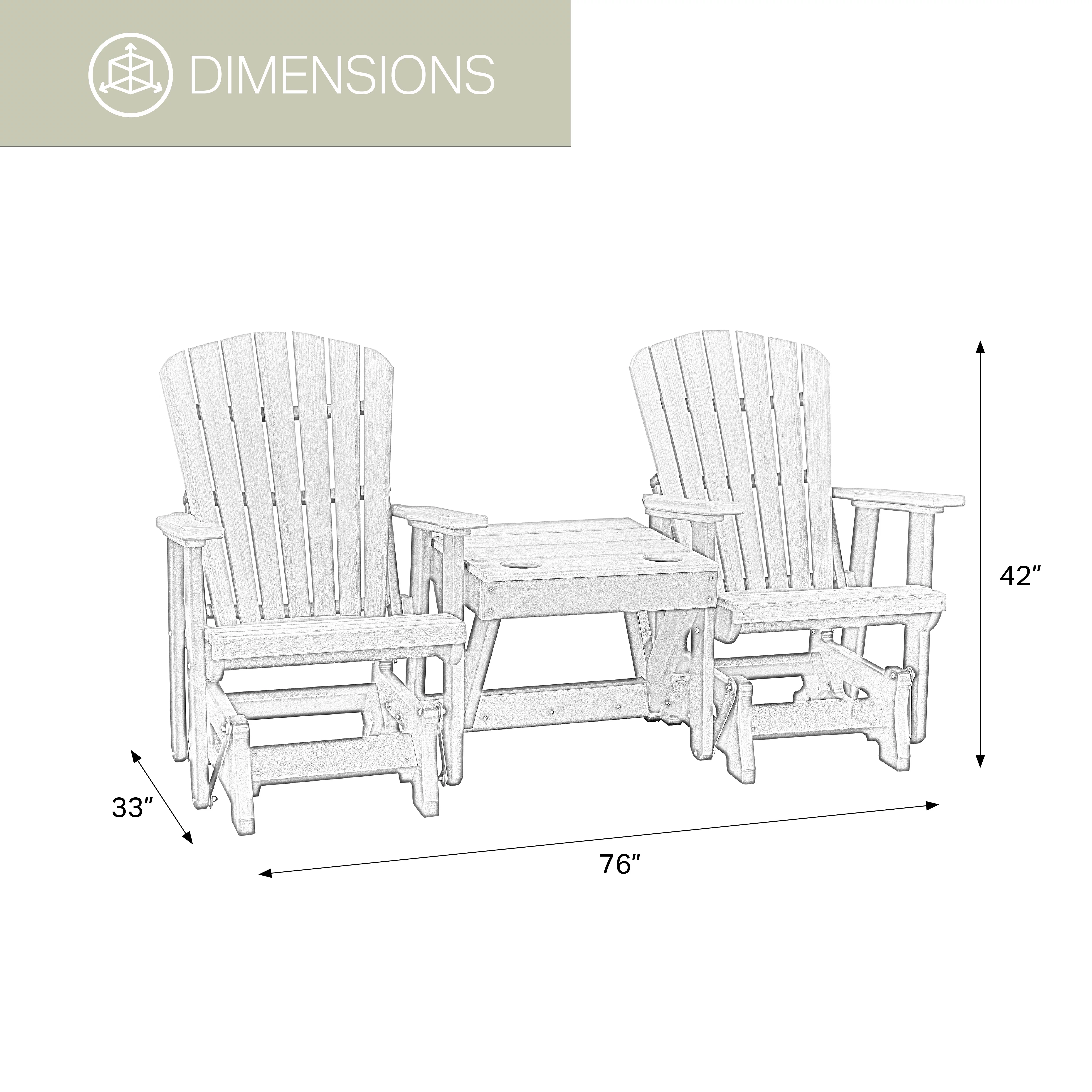 OS Home and Office Furniture Resin Double Glider w/Center Table in White/Blue