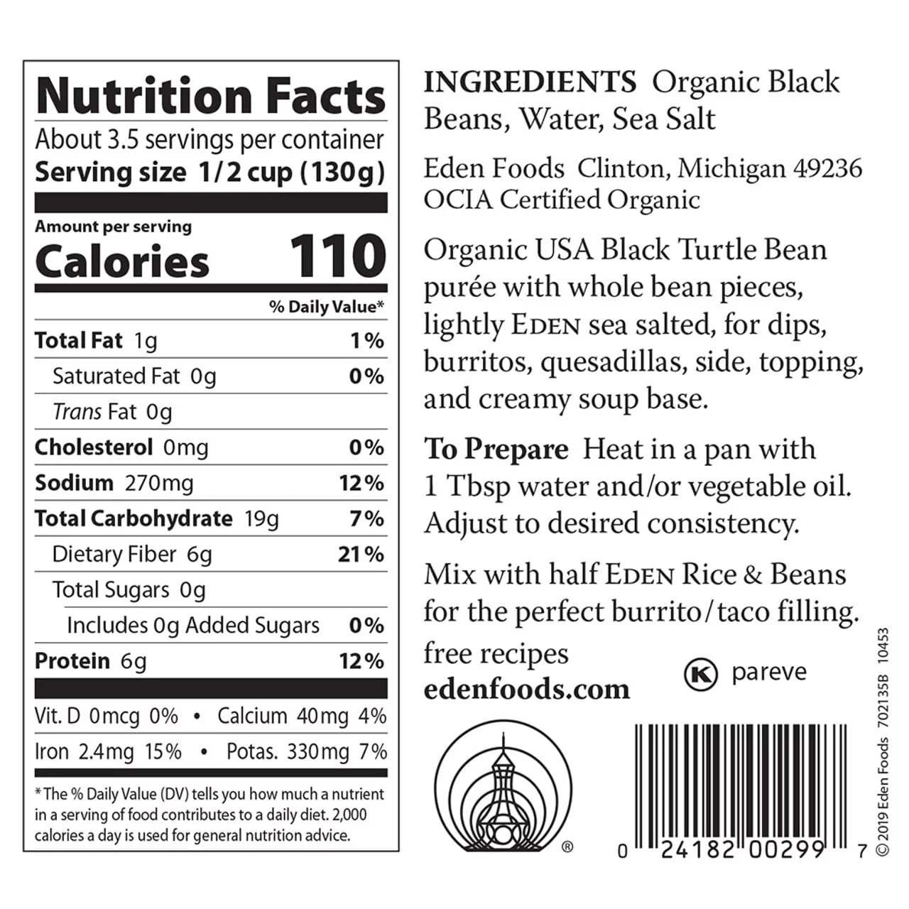 Eden Organic Refried Black Beans, 16-Ounce Cans (Pack of 12)