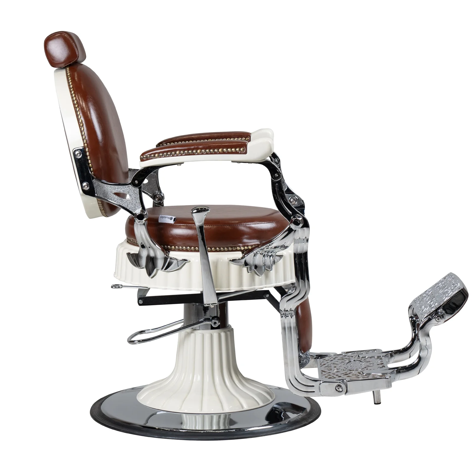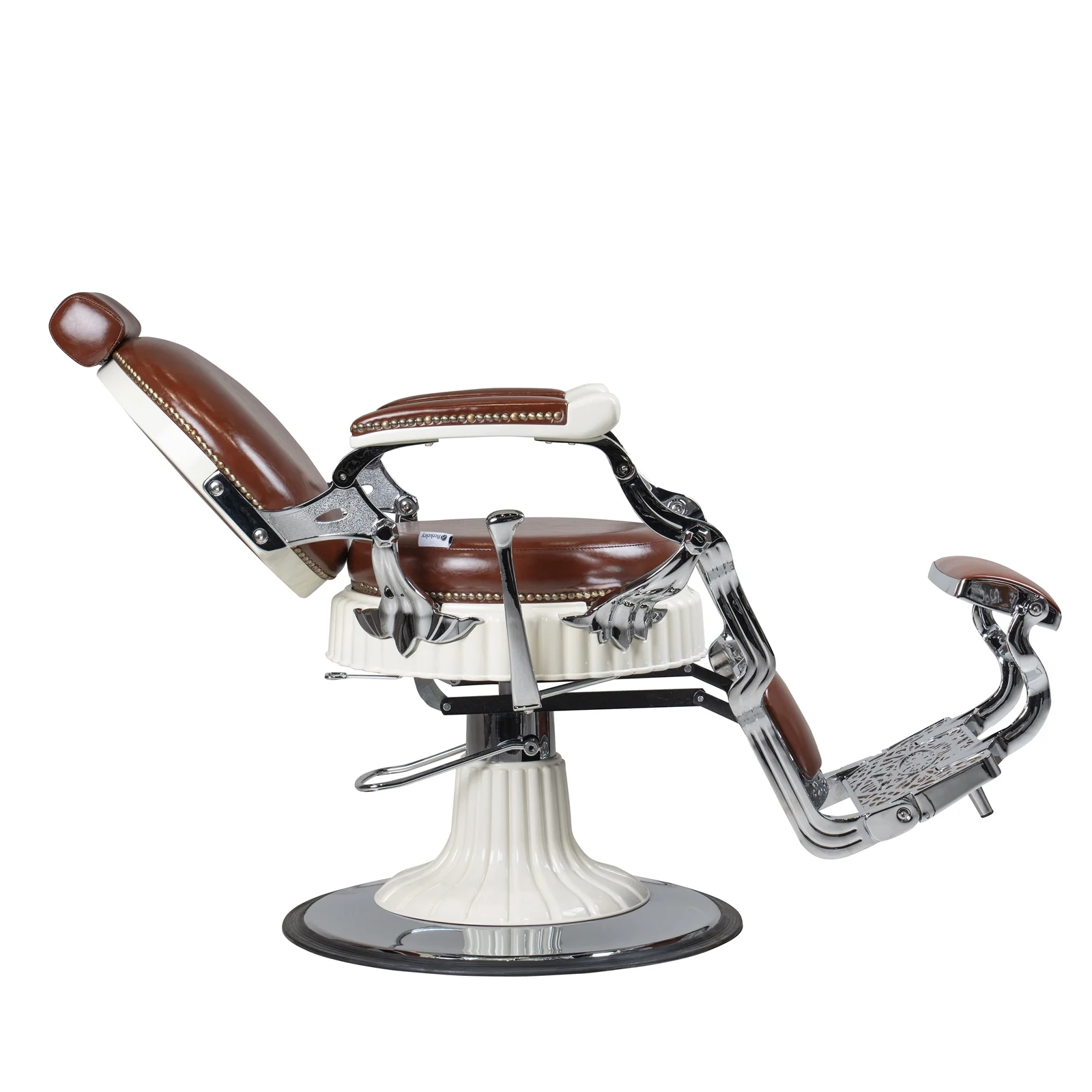 FRANKLIN Vintage Barber Chair, Reclining Heavy Duty Barber Chair, Brown Seat White Frame