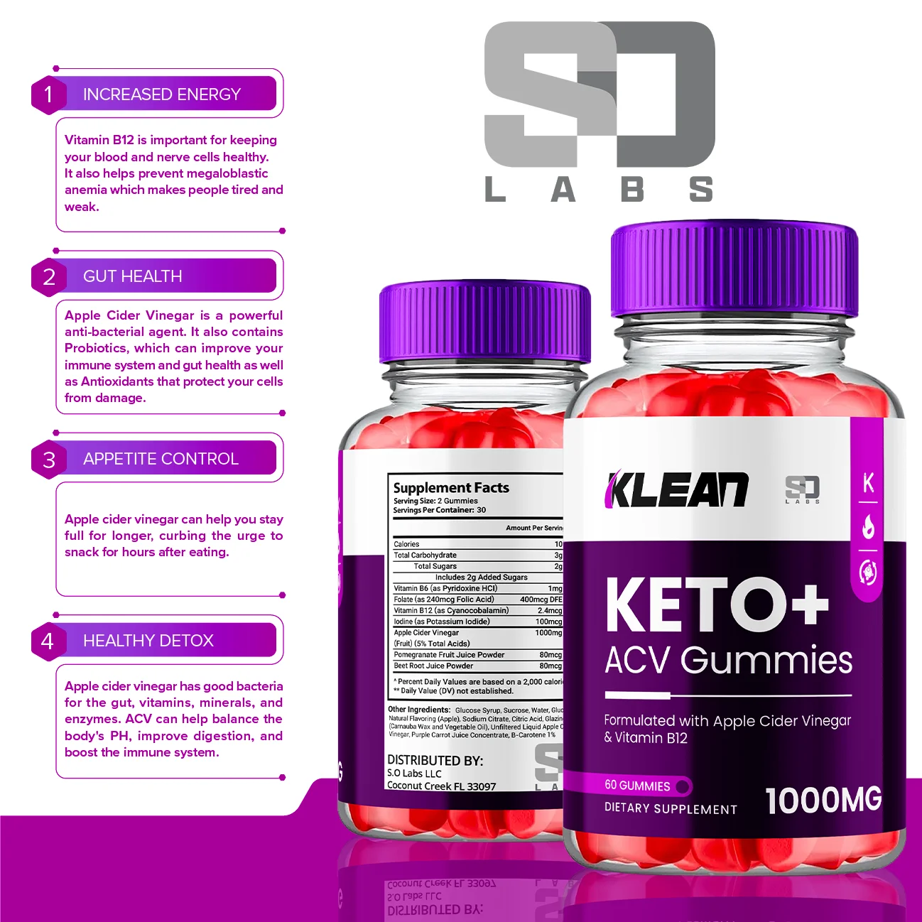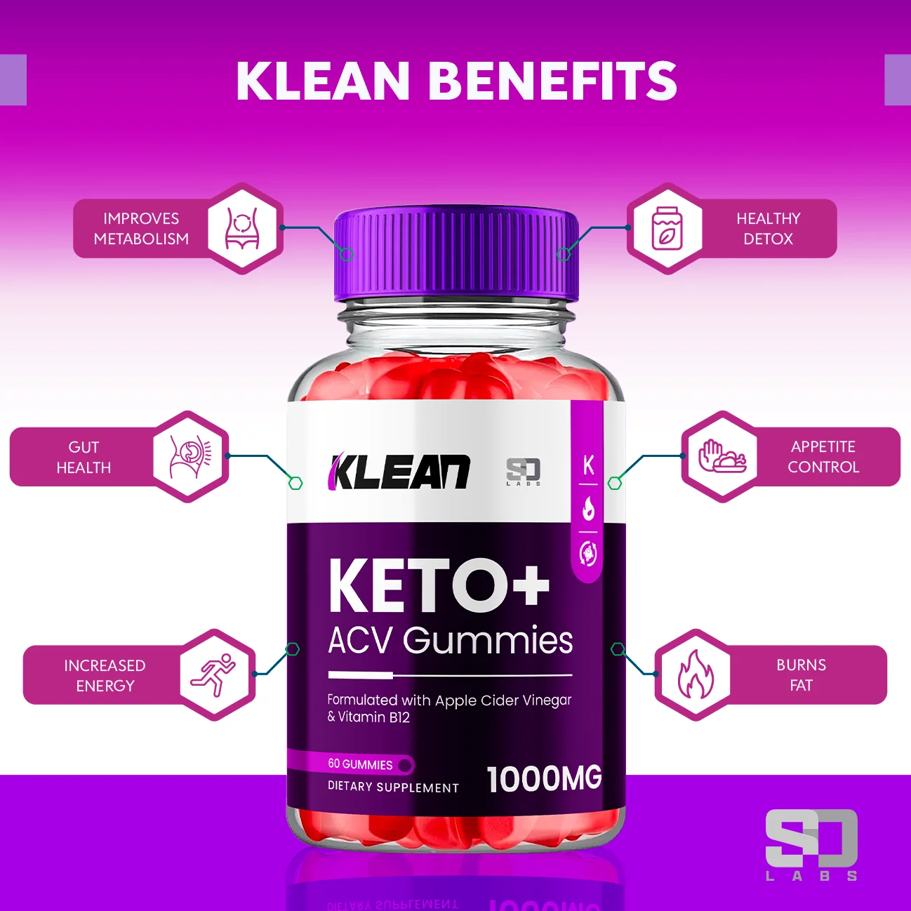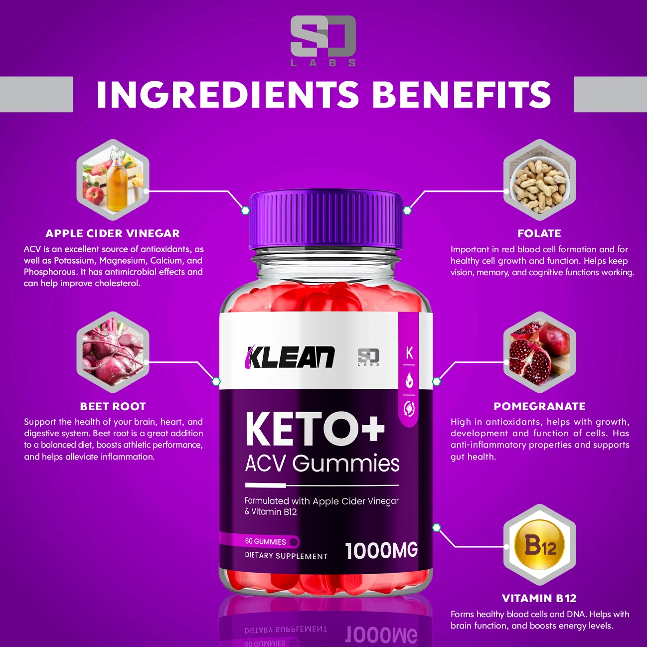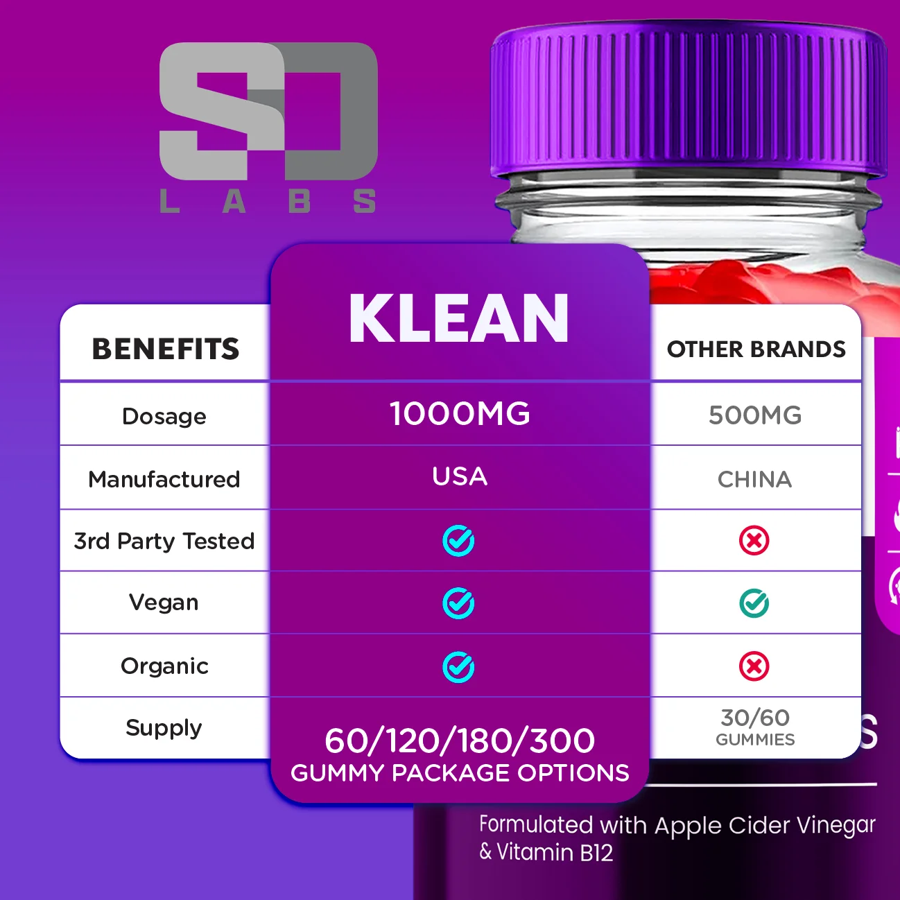 (3 Pack) Klean Keto ACV Gummies - Apple Cider Vinegar Supplement for Energy and Focus - Klean Keto Active Multivitamin Supplement Gummies for Ketosis with Folic Acid (180 Gummies)