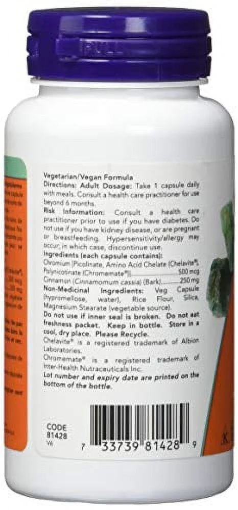NOW Foods Tri-Chromium 500 mcg, Cinnamon Bark, 90 Veg Capsules