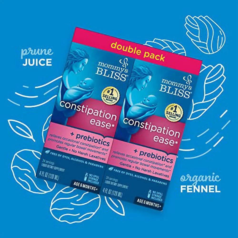 Mommy's Bliss Baby Constipation Ease with Prebiotics, Promotes Regular Bowel Movements, Gentle, No Harsh Laxatives, Age 6 Months+, 4 Fl Oz (Pack of 2), 8.0 Fl Oz