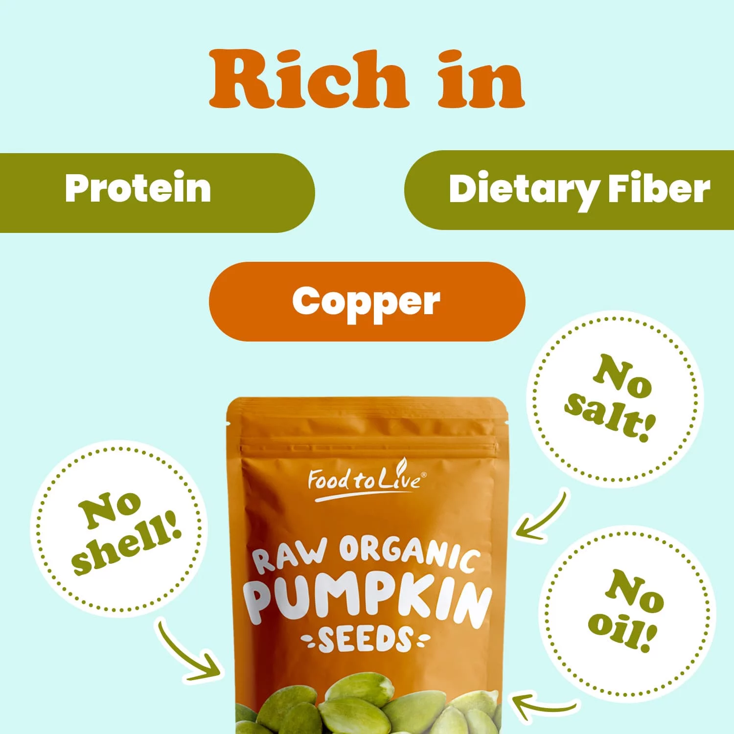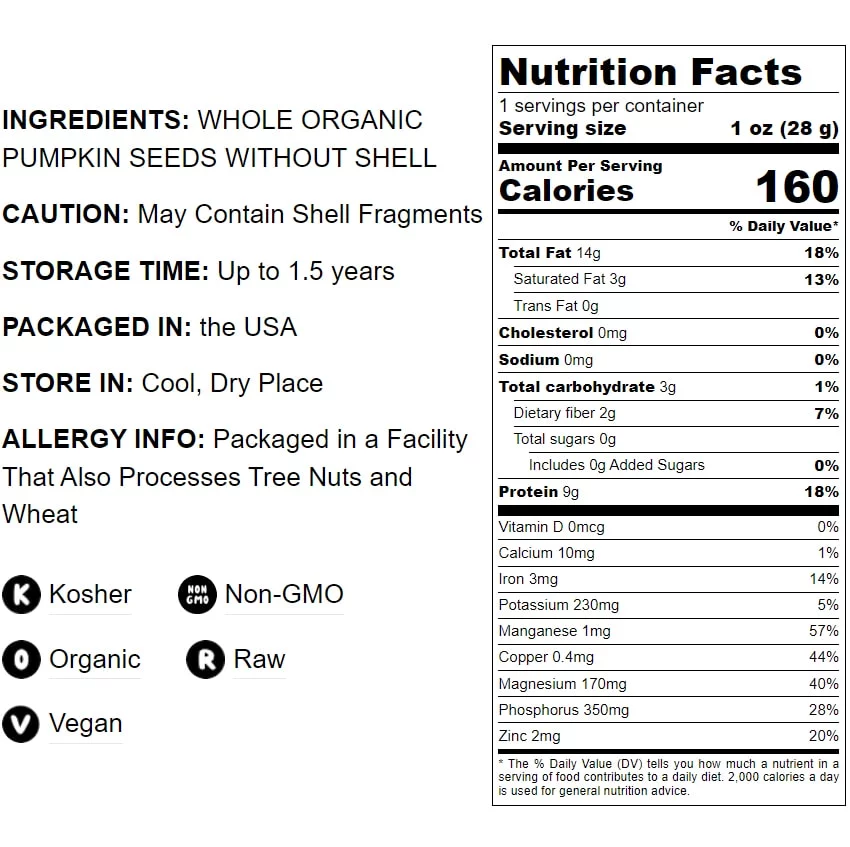 Food to Live, Organic Raw Pepitas (Pumpkin Seeds), 2 Pounds, Non-GMO, Raw