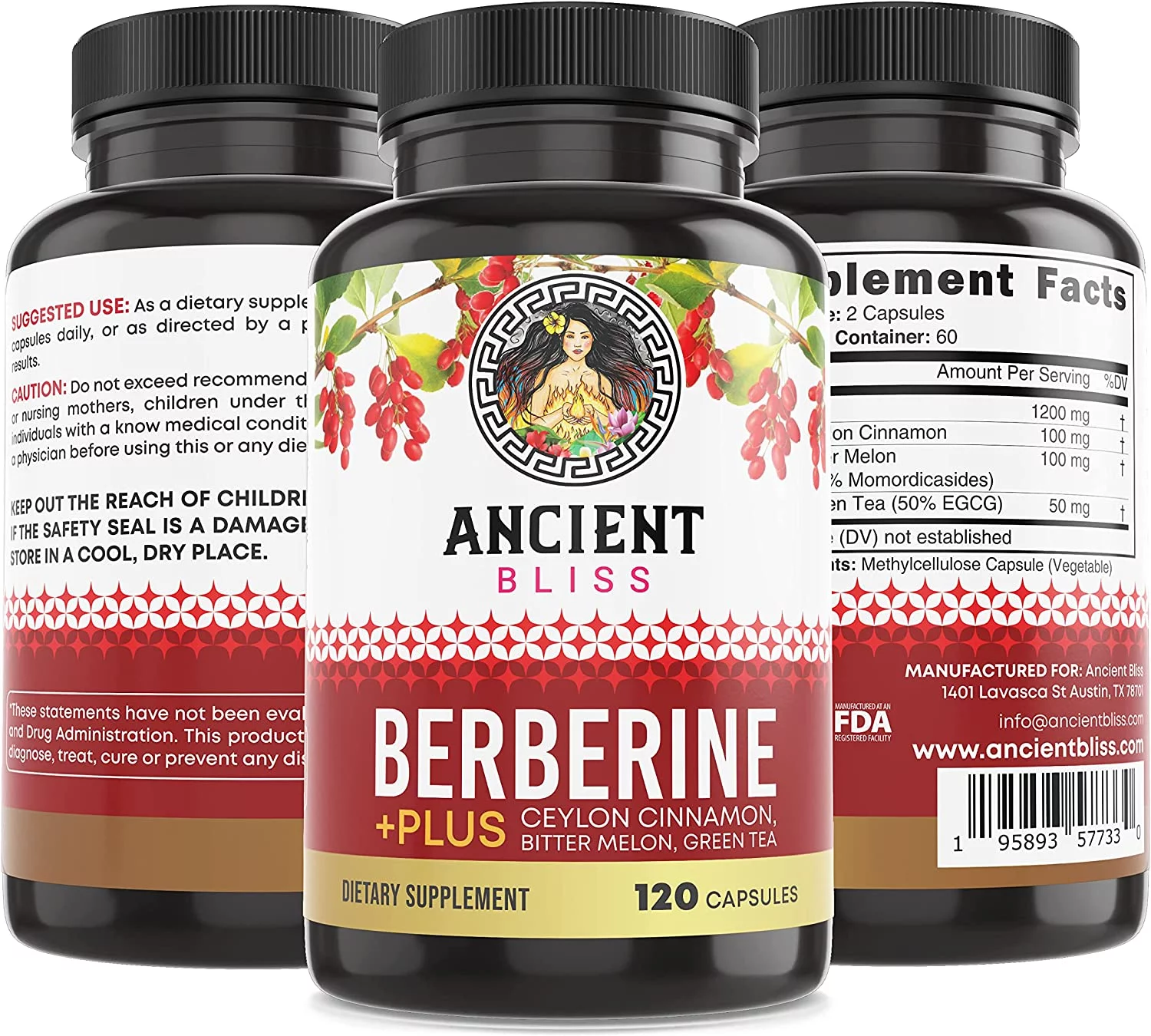 Ancient Bliss Berberine HCL 1200mg with Ceylon Cinnamon, Bitter Melon, Green Tea Extract - 120 Capsules - Supports Immune System & Metabolism