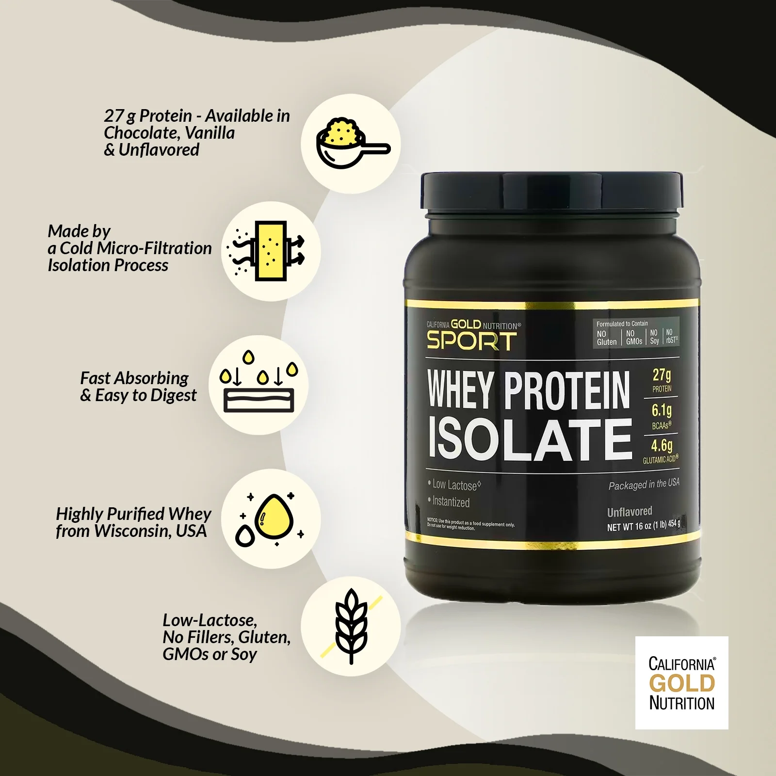 California Gold Nutrition 100% Whey Protein Isolate, Very Vanilla Flavor, 2 lbs (907 g)