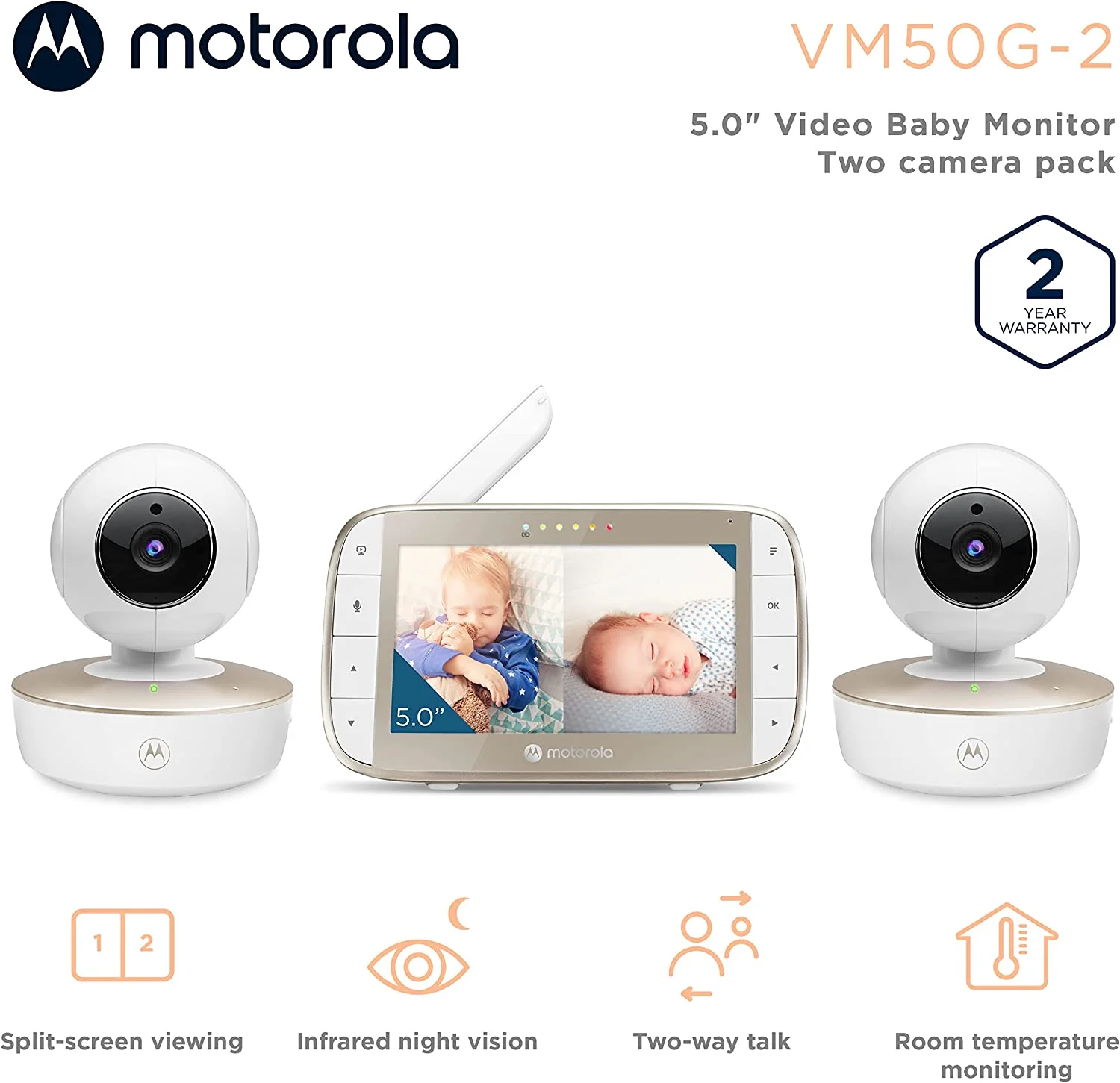 Motorola VM50G-2 Video Baby Monitor w/ 5" Color Screen and (2) Remote Cameras | 2-Way Audio & Night Vision
