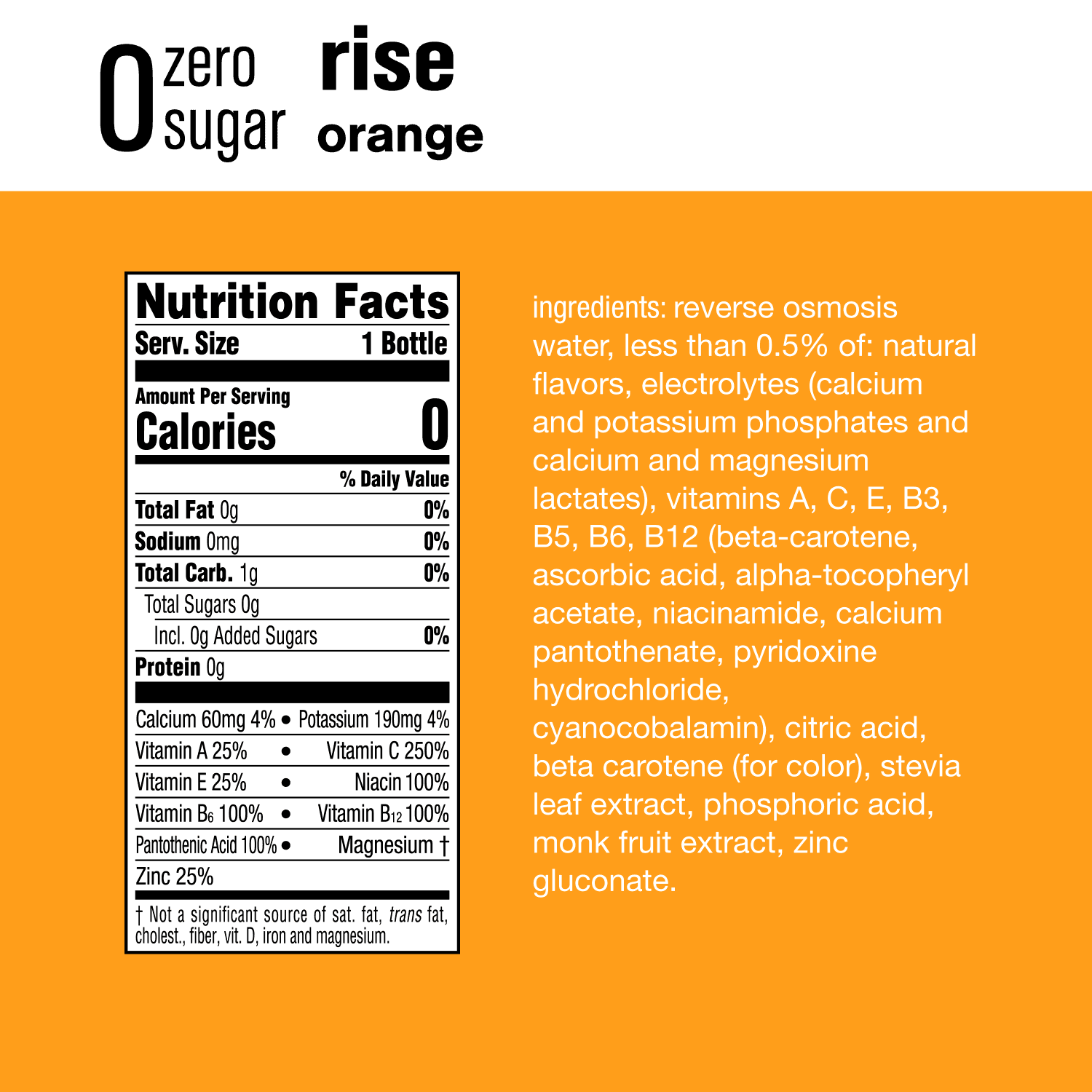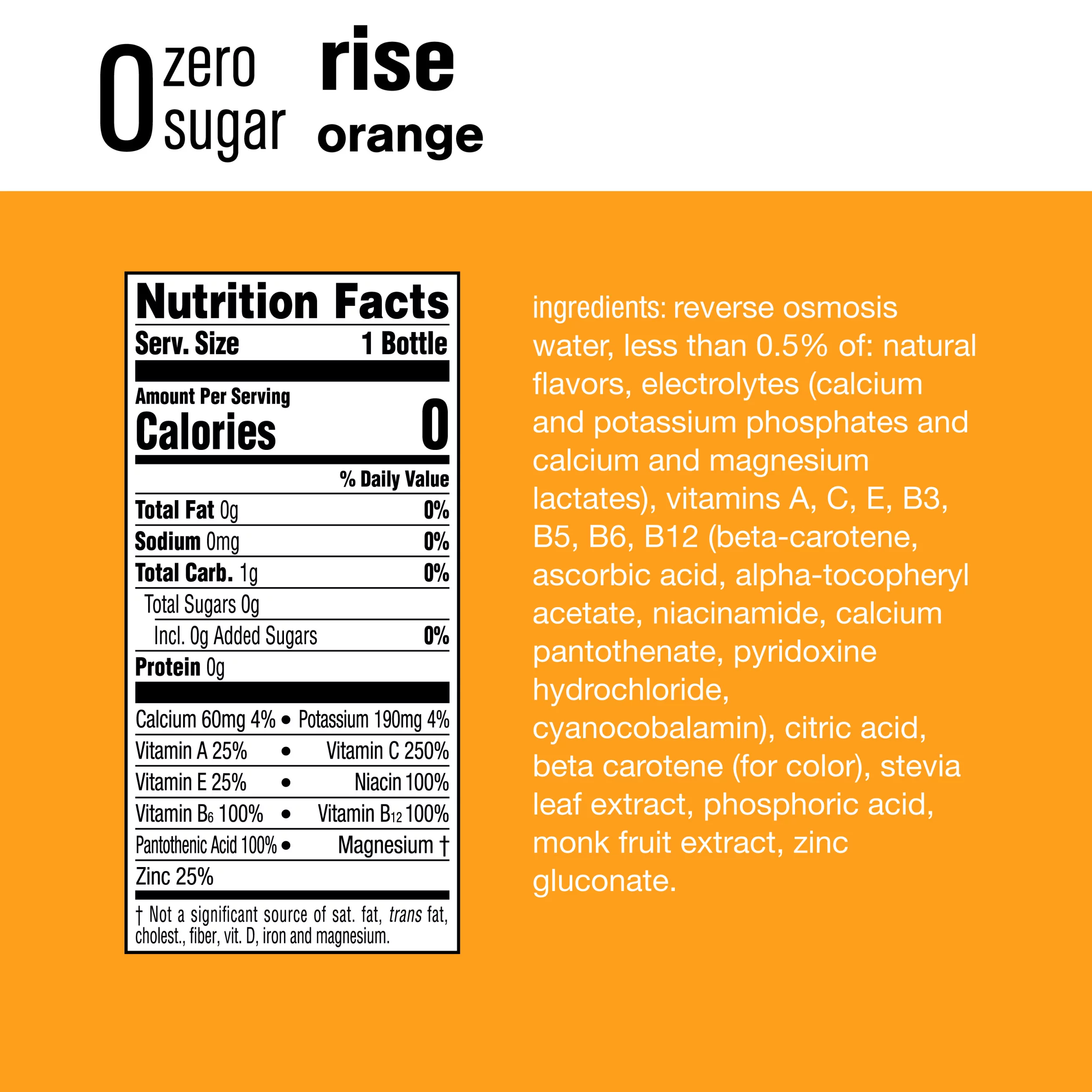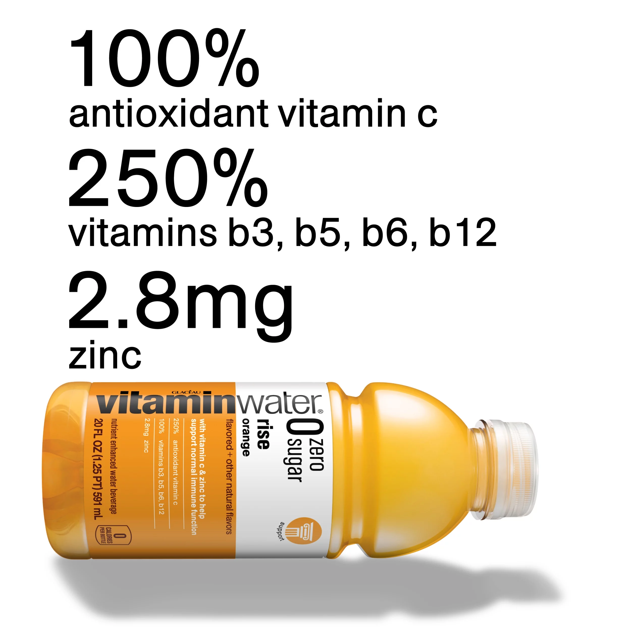 vitaminwater zero sugar rise, electrolyte enhanced water w/ vitamins, orange drinks, 20 fl oz, 12 Pack