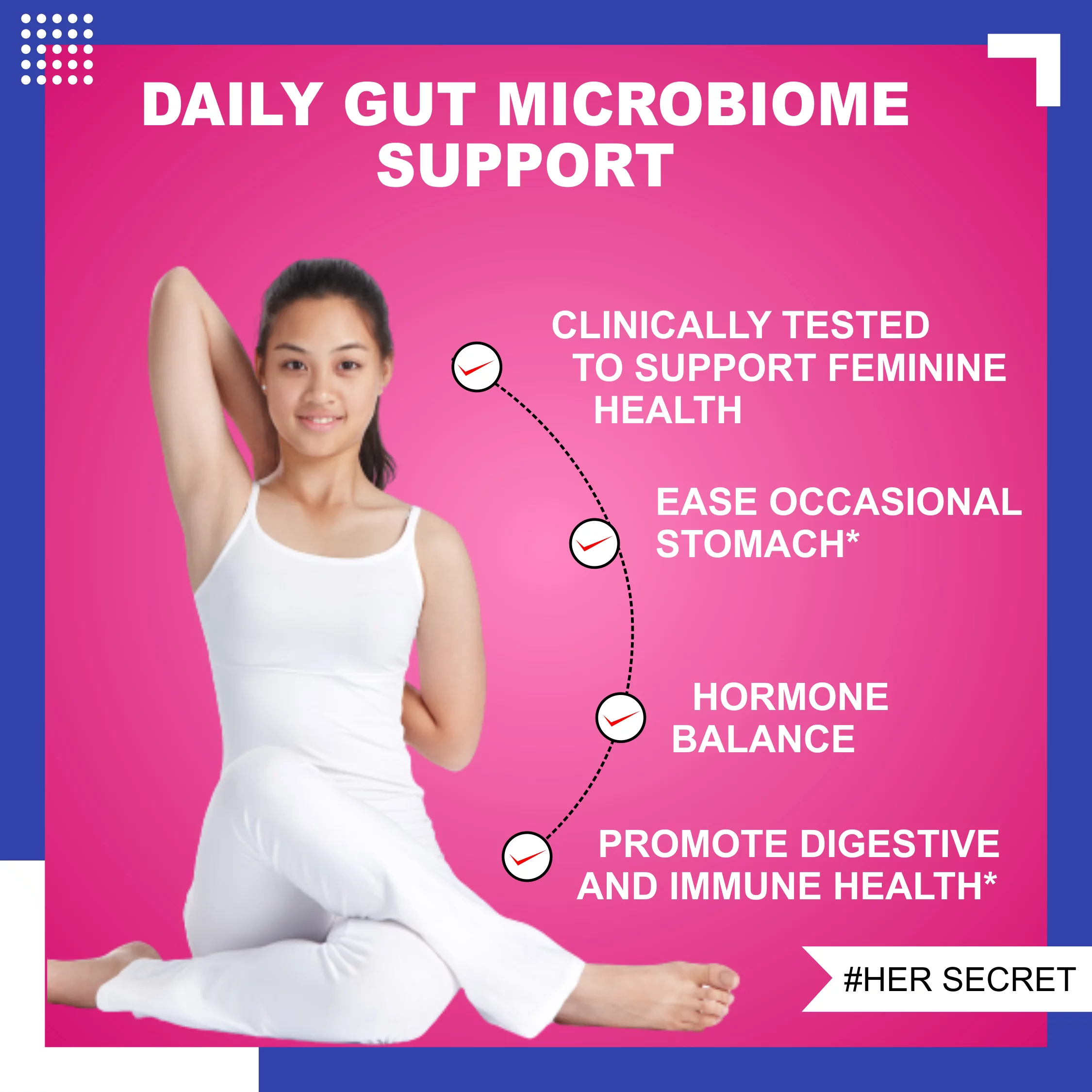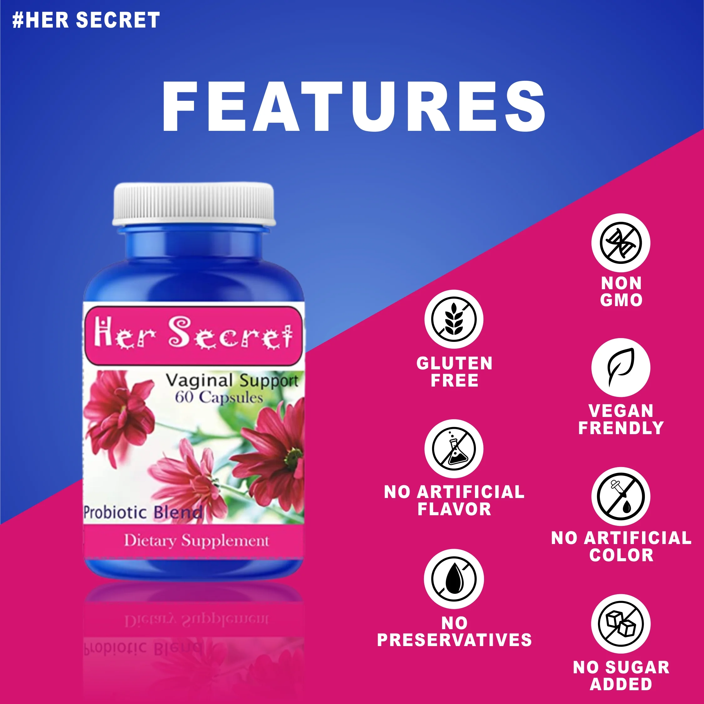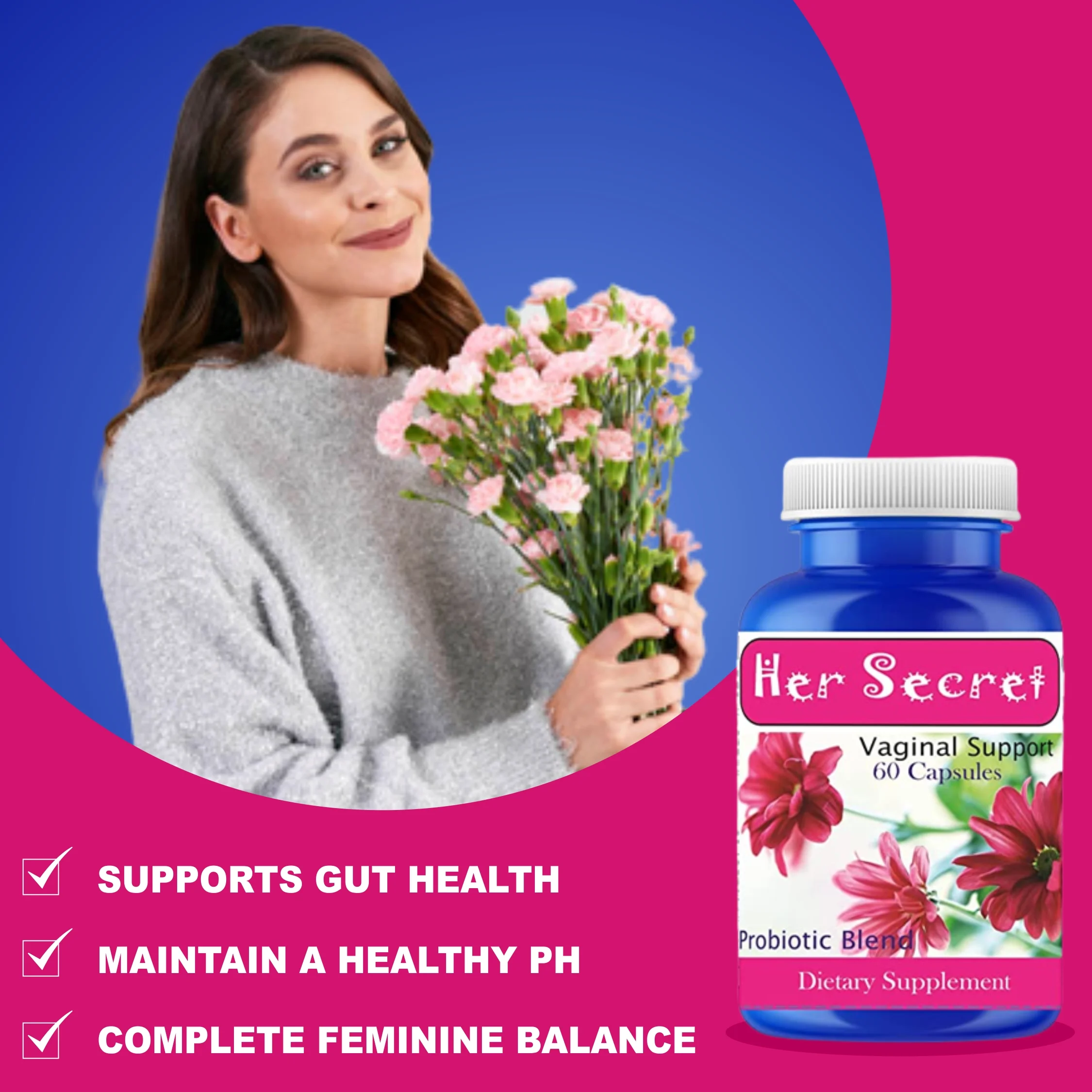 Her Secret Women Prebiotics 60 pills Control Fishy Odor, Support pH Balance 60 Capsules