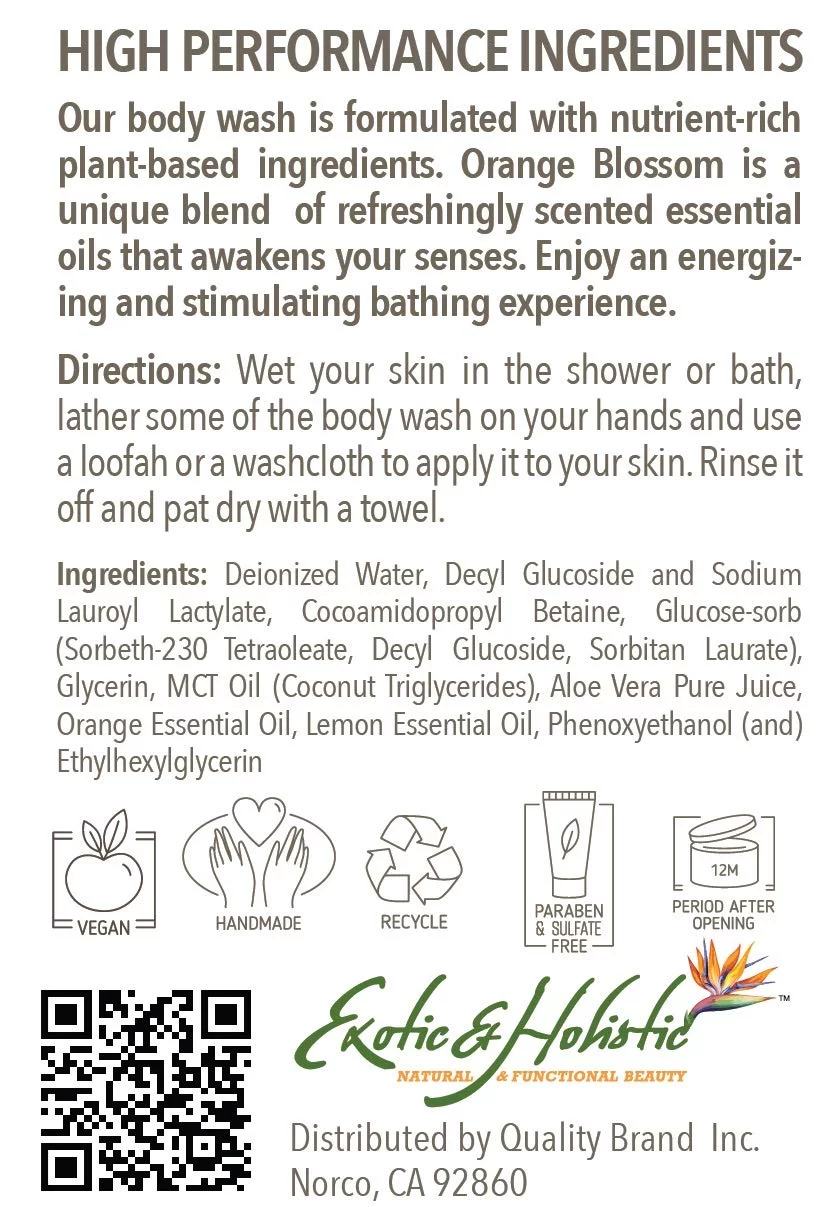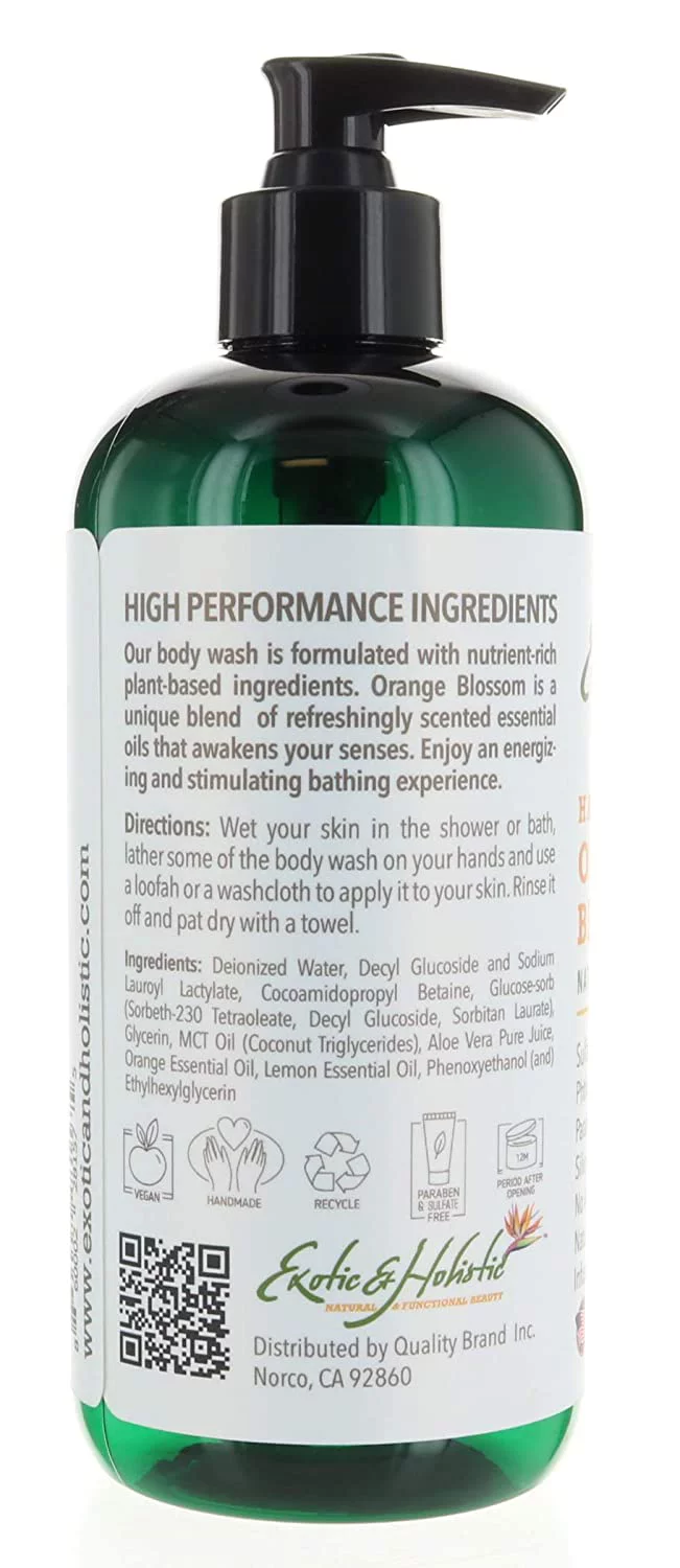 Orange Blossom and Lemon Infused with Essential Oil Natural Body Wash with Pump 16 FL, 473 mL by Exotic and Holistic