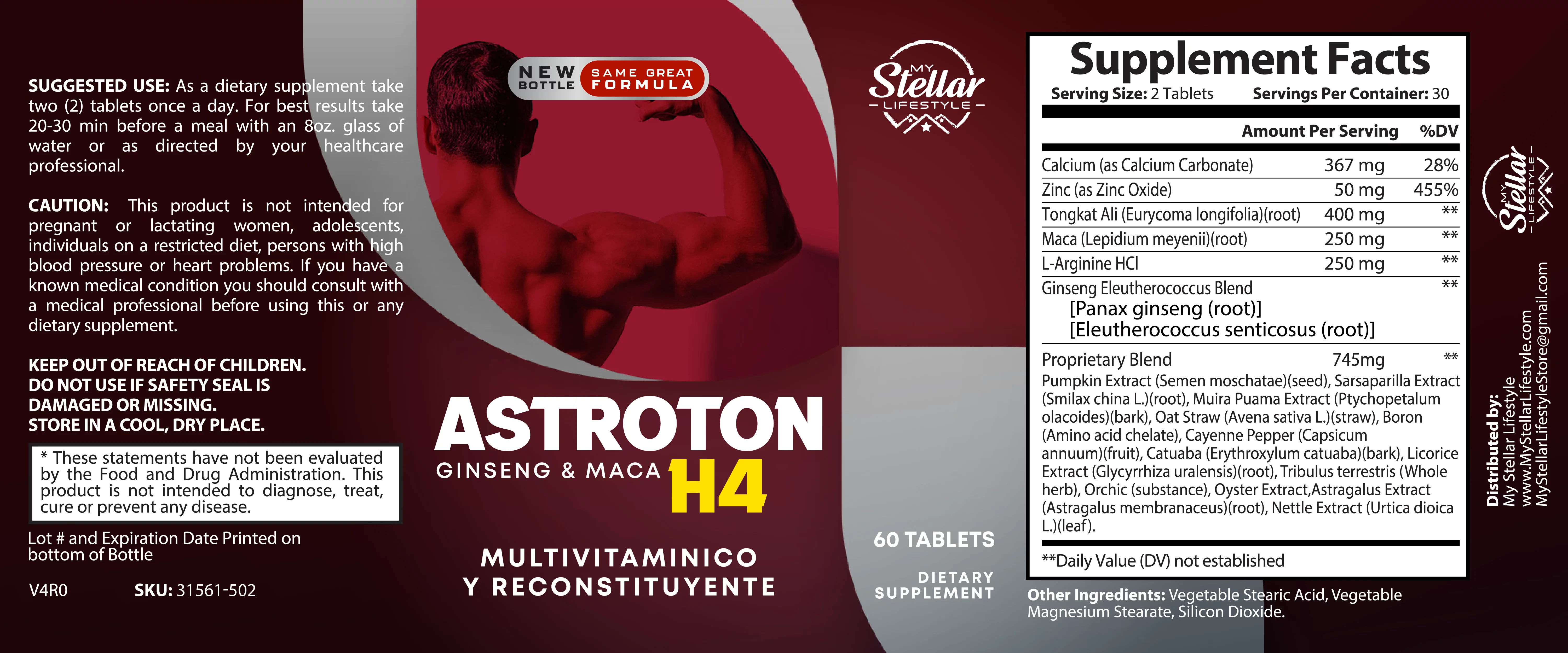 4 Pack Astroton Ginseng & Maca H4, multivitamin and restorative-60 Tablets x4