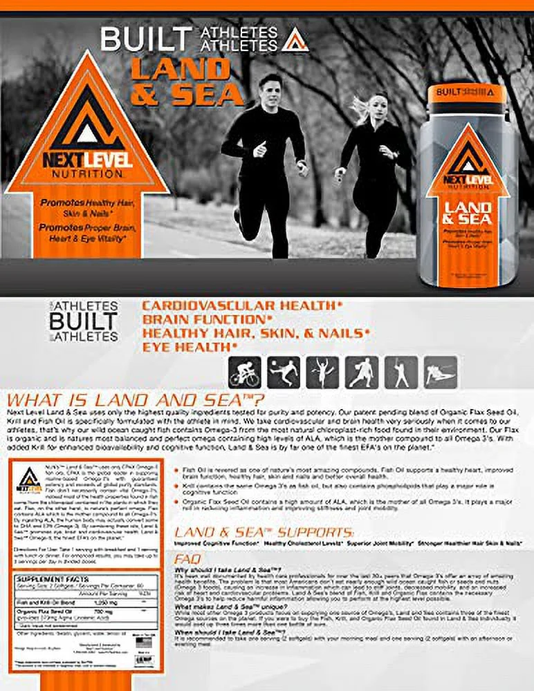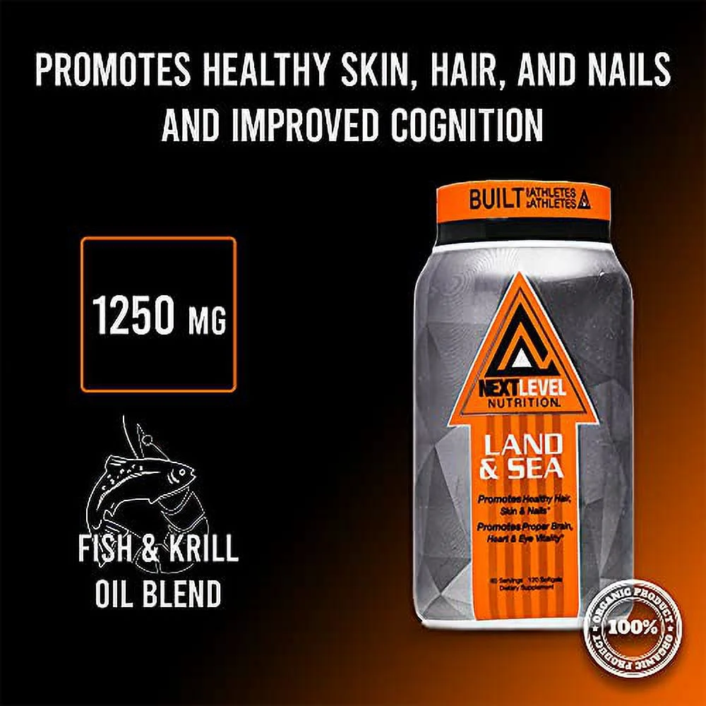Next Level Nutrition Land & Sea Omega3 Heart & Skin Health Support | 30 Servings