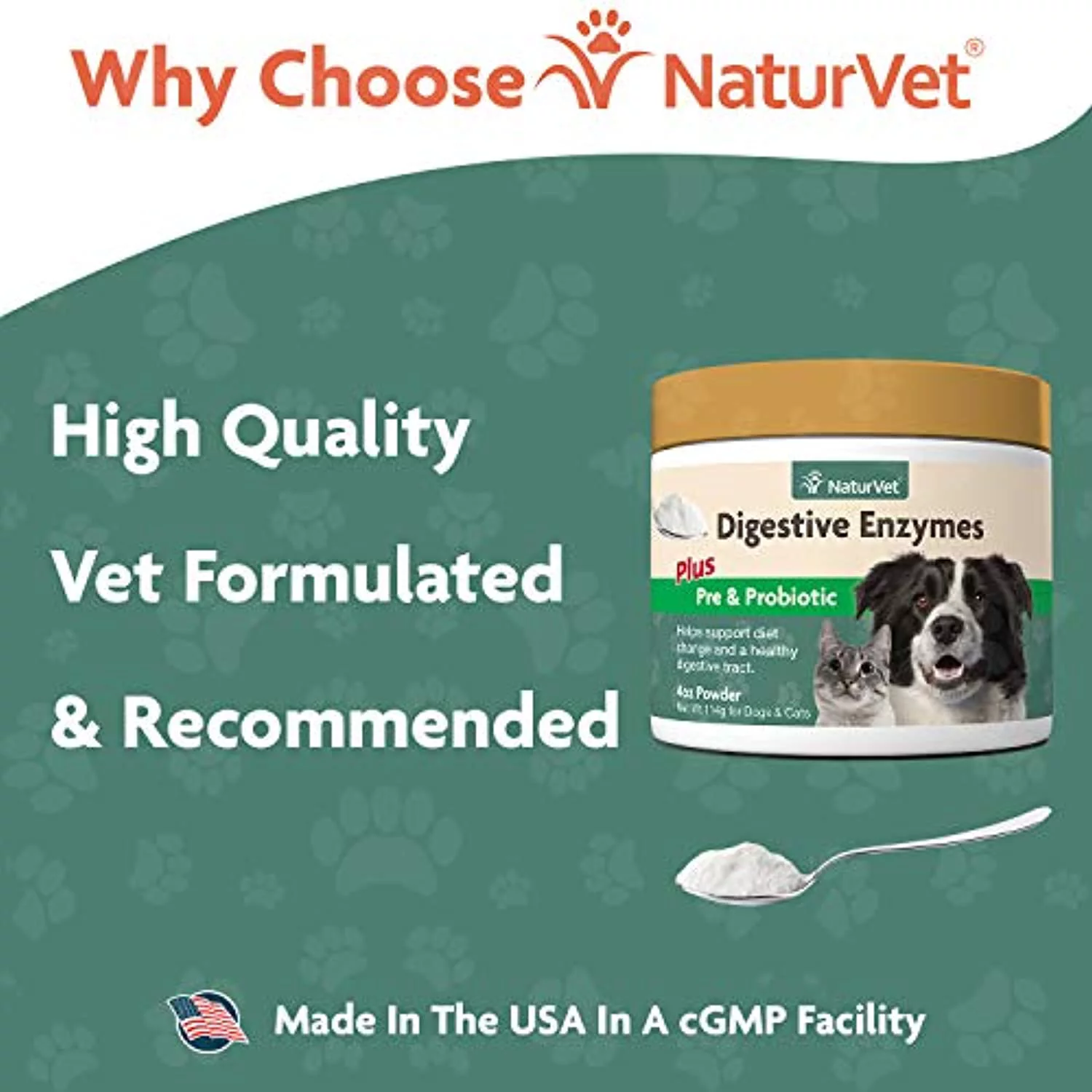 NaturVet Digestive Enzymes for Dogs - Plus Probiotics & Prebiotics , Helps Support Diet Change & A Healthy Digestive Tract , for Dogs & Cats , 4 oz Powder Digestive Enzymes 4 oz