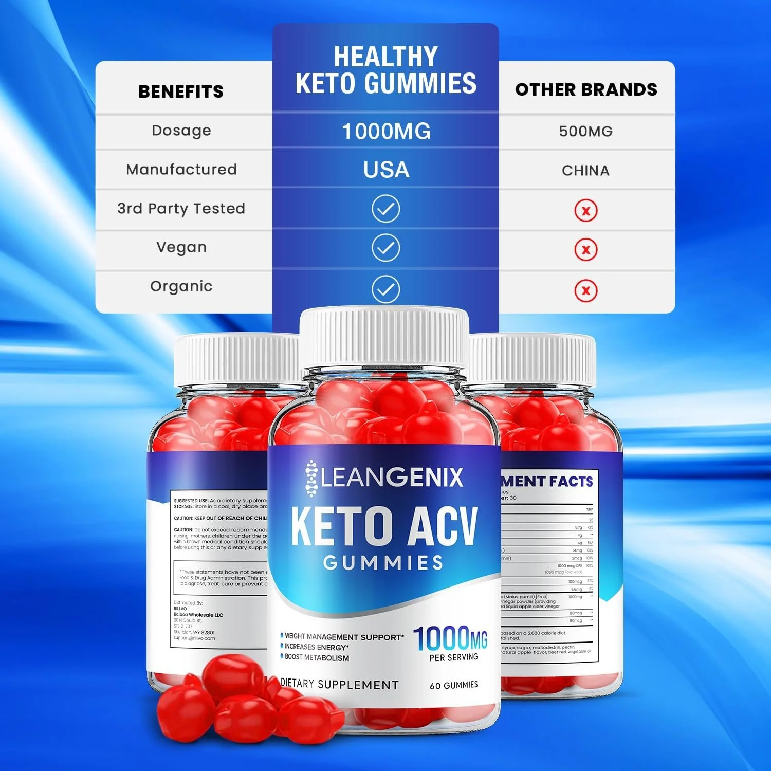 3 Pack LeanGenix Keto ACV Gummies - Official - Keto Lean Genix ACV Advanced Formula Plus Apple Cider Vinegar Dietary Supplement B12 Beet Root Juice Men Women 180 Gummies