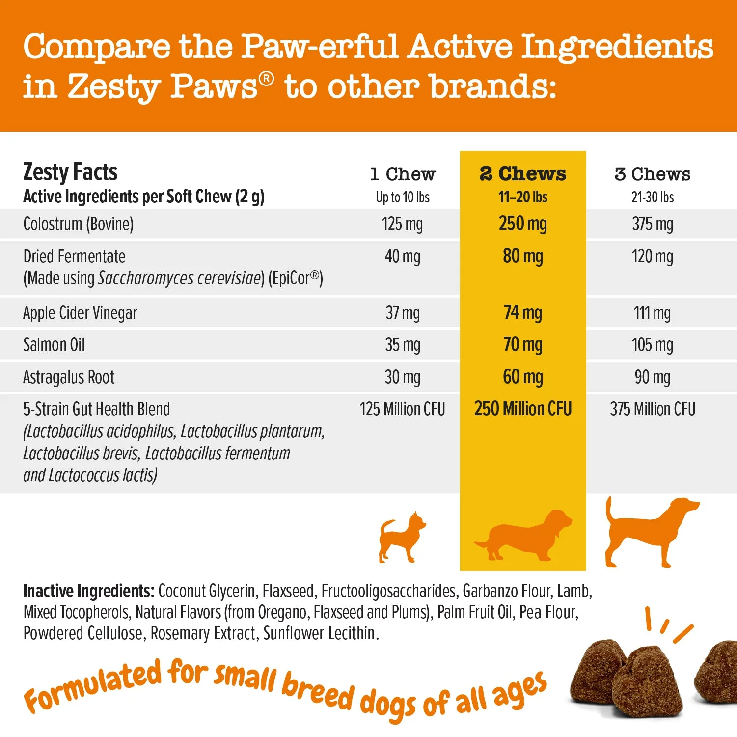 Zesty Paws Allergy & Immune Mini Bites for Small Dogs, for Seasonal Allergies, Immune + Sensitive Skin & Gut Health, Lamb Flavor, 90 Soft Chews