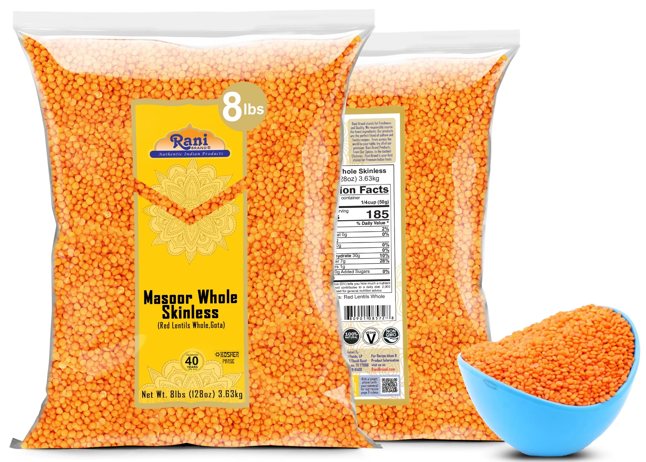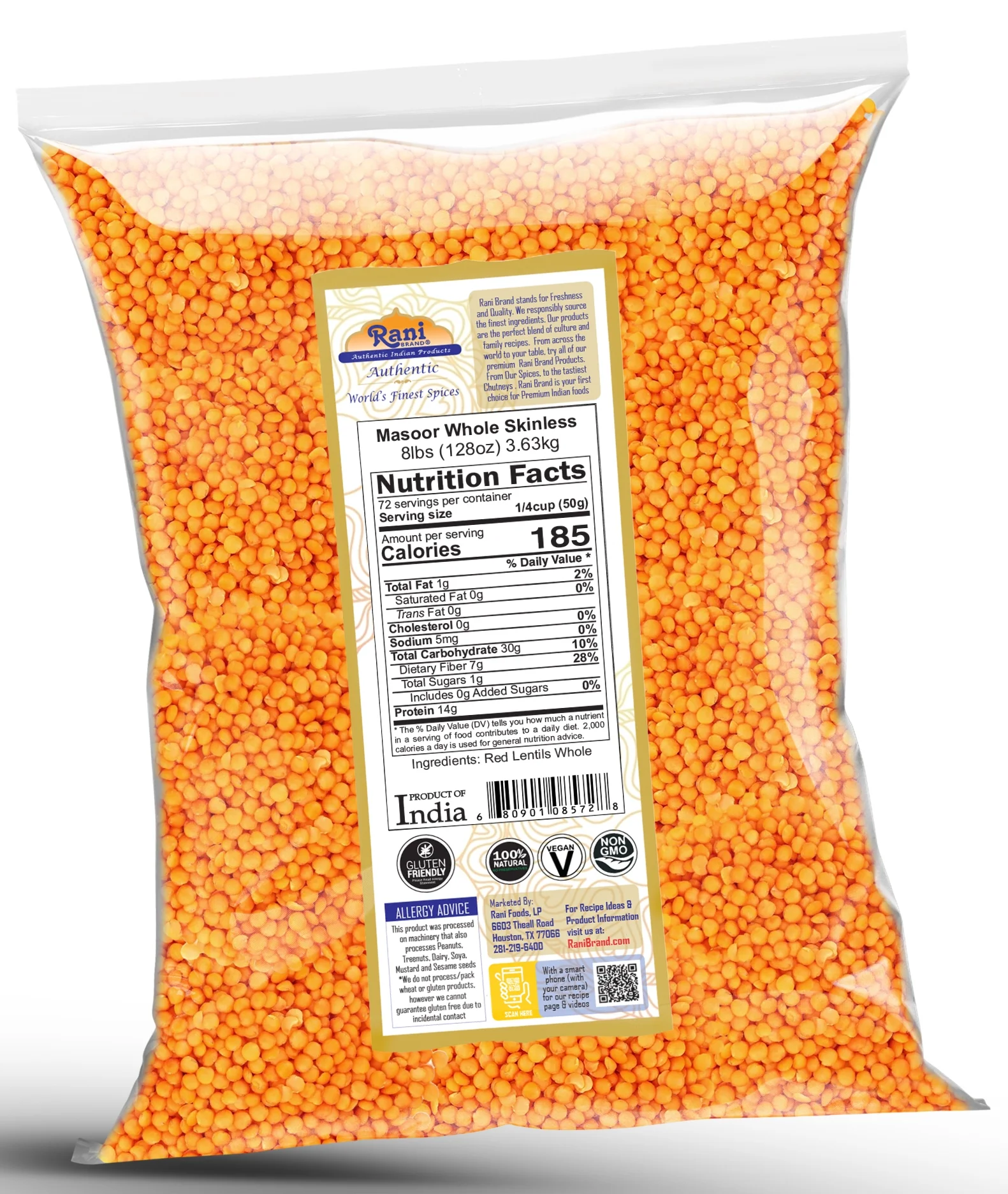 Rani Masoor Gota (Football) Indian Red Lentils Skinless 128oz (8lbs) 3.63kg Bulk ~ All Natural | Gluten Friendly | NON-GMO | Kosher | Vegan | Indian Origin
