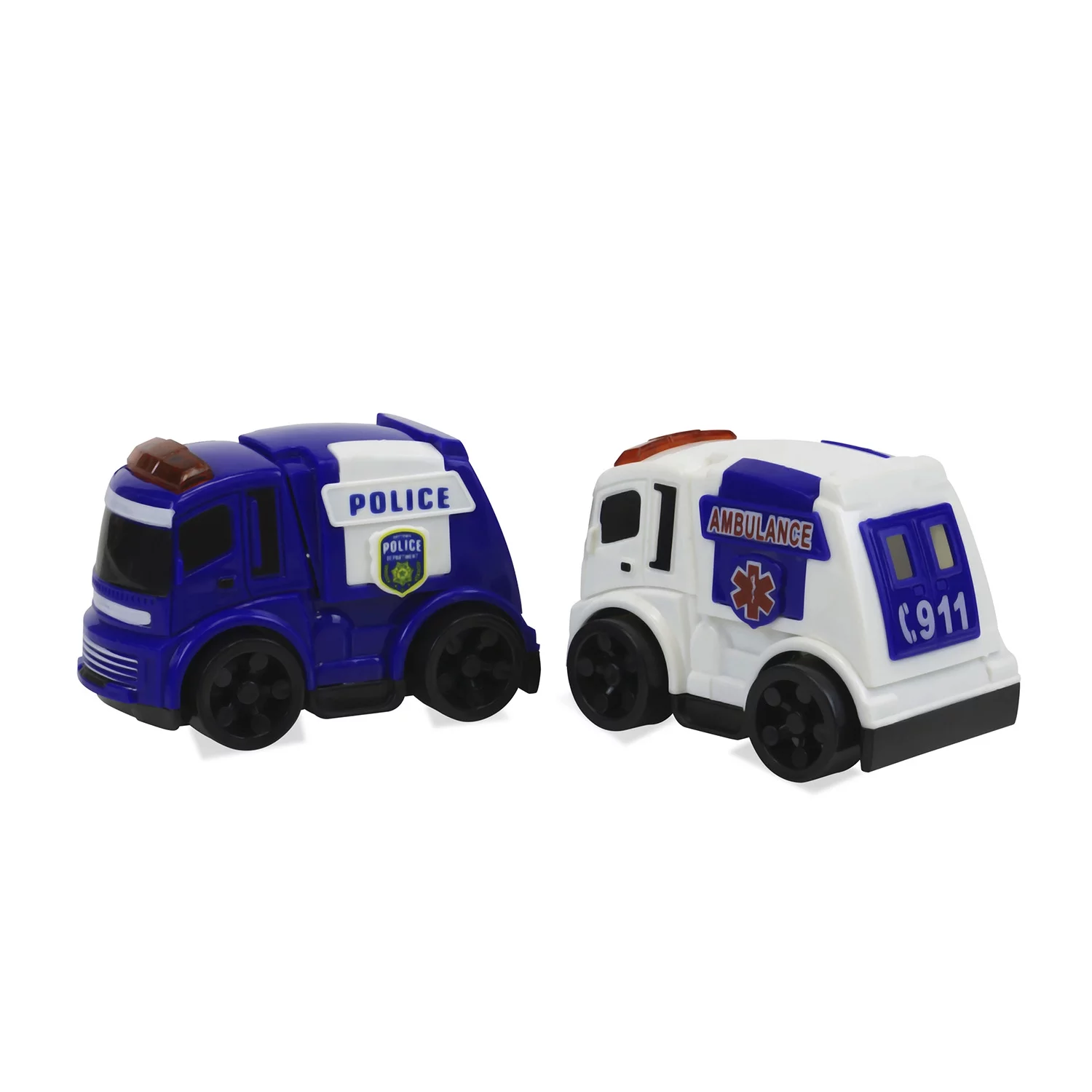 Travel Size Set of 6 City Squad (Police Car, Ambulance, Fire Truck) Friction Powered Toy Cars Push and Go Vehicles for Kids