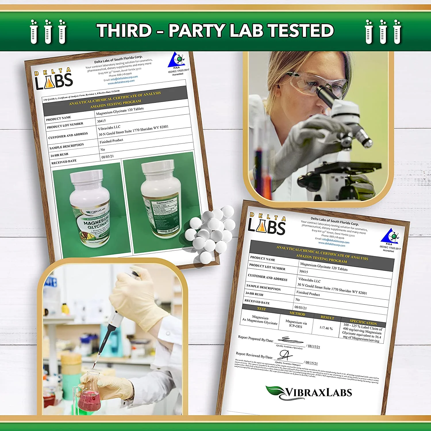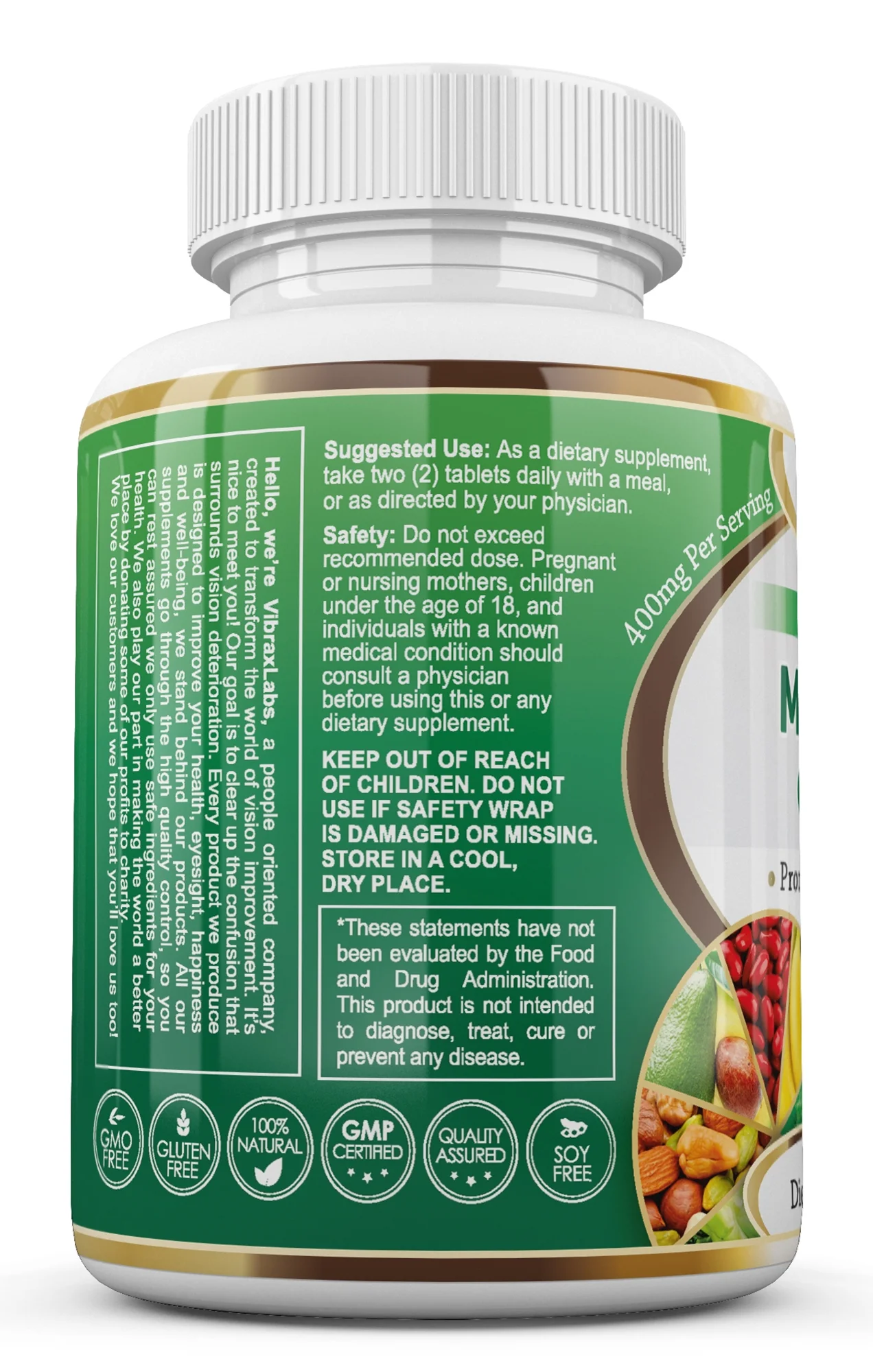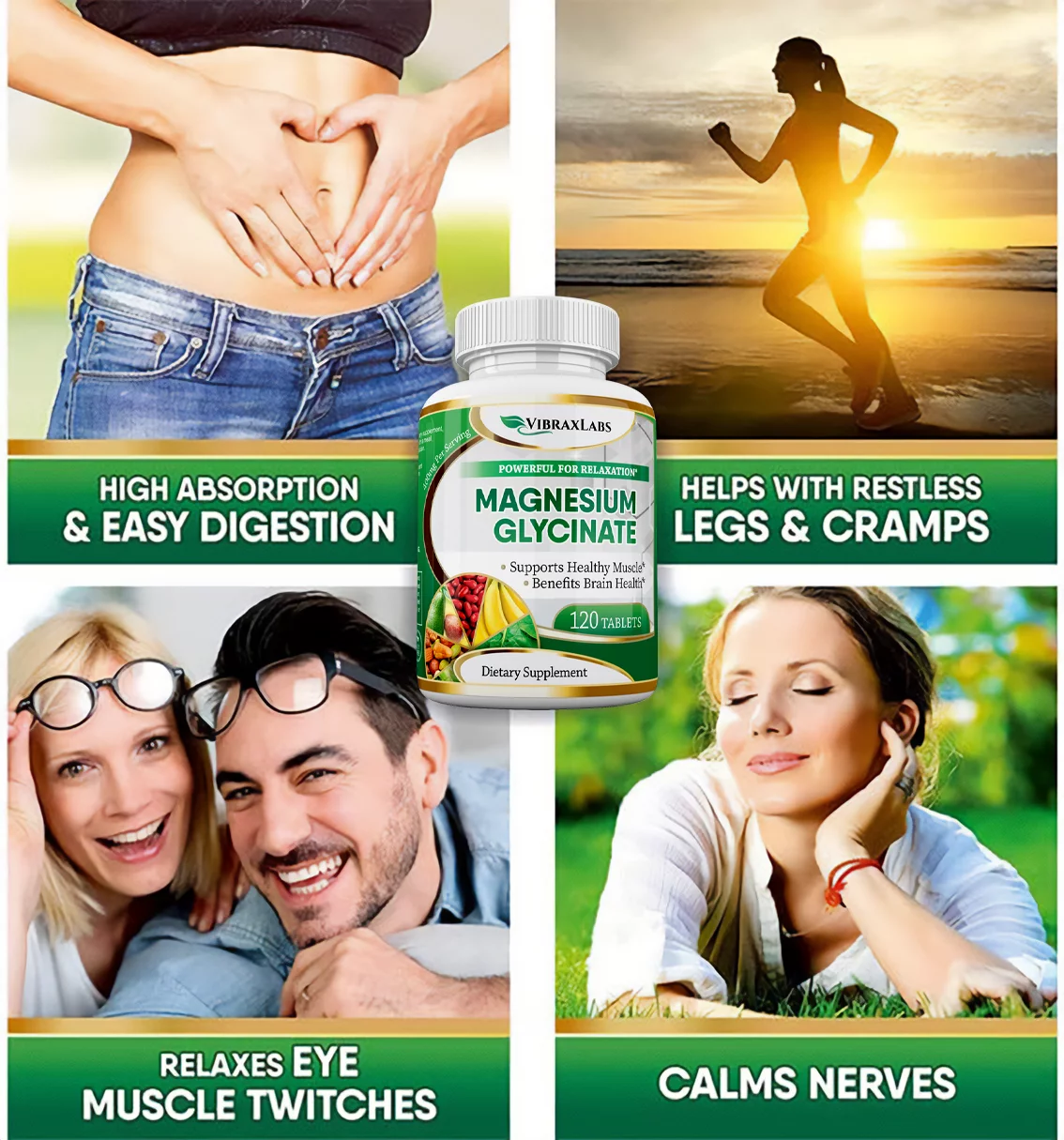 VibraxLabs Magnesium Glycinate Supplement-400mg, 120 Tablets for Men & Women