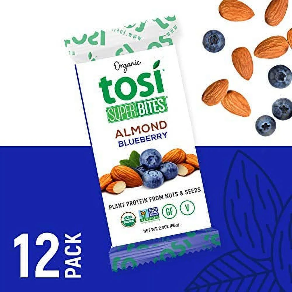TOSI SuperBites, Gluten-Free Snack Bars, Almond Blueberry, Vegan, Organic, 2.4 oz, 12 bars