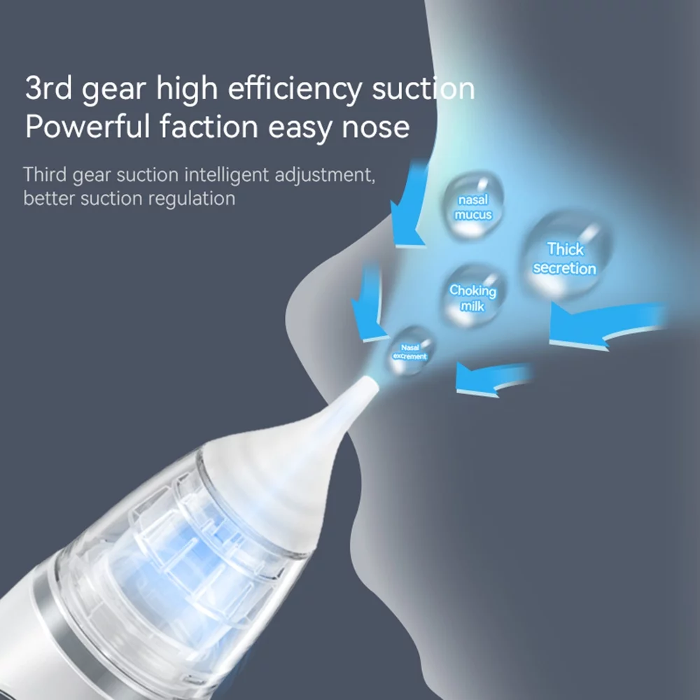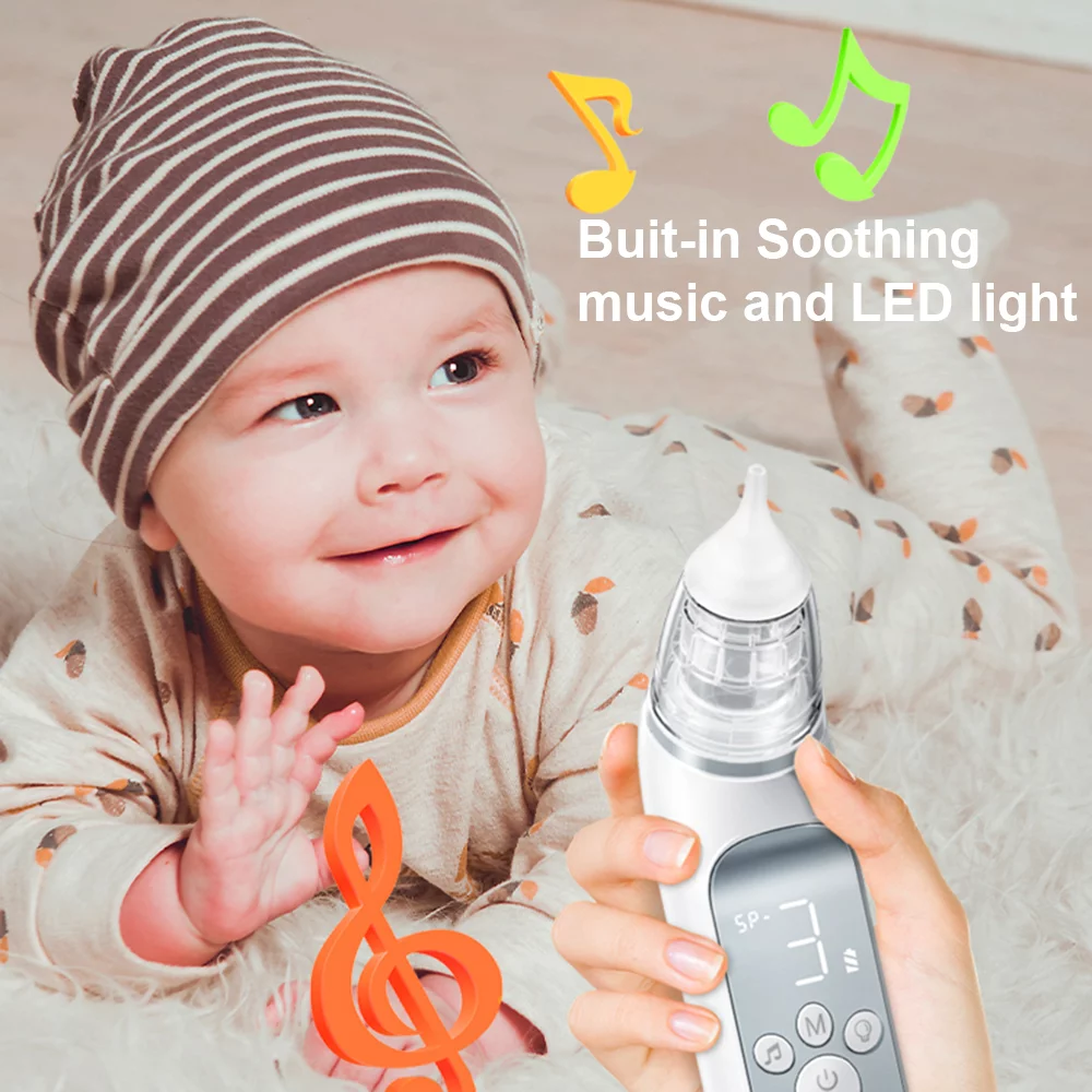 Portable Electric Baby Nasal Aspirator Baby Nose Sucker Nose Cleaner for Infants 3 Suction Levels Low Noise Anti-backflow Built-in Battery Colorful Light 10 Soothing Music with Storage Case 3pcs