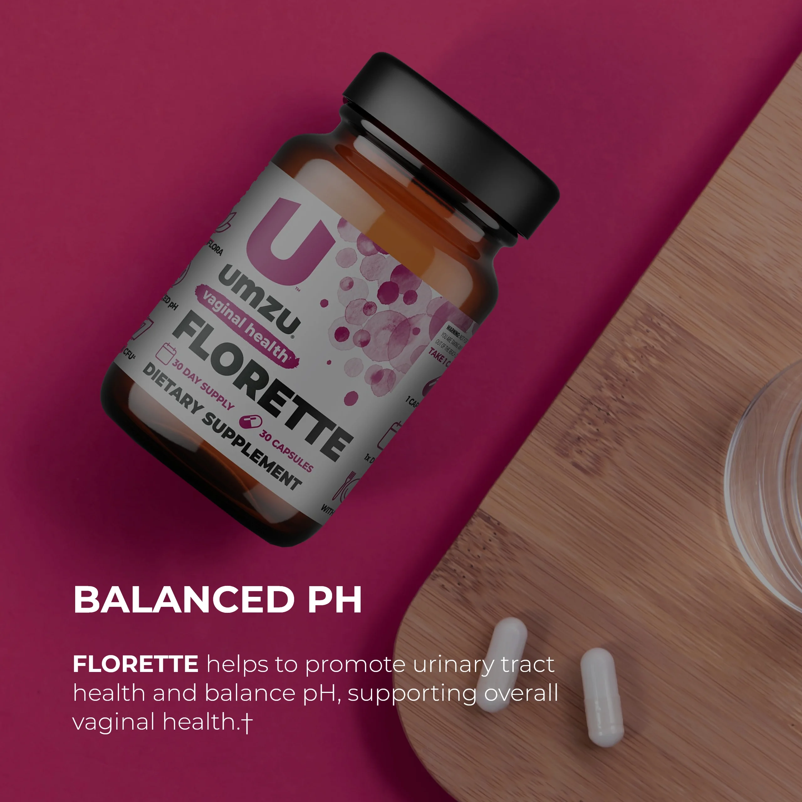UMZU Florette - Vaginal & Urinary Tract Health Supplement to Support Vaginal pH, Cranberry Fruit Extract, Advanced Probiotic, Shelf Stable - (30 Day Supply 30 Capsules)