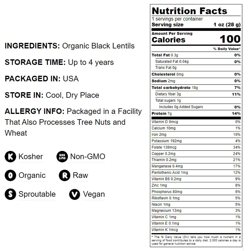 Organic Black Lentils, 15 Pounds — Non-GMO, Kosher, Raw, Vegan, Sproutable — by Food to Live