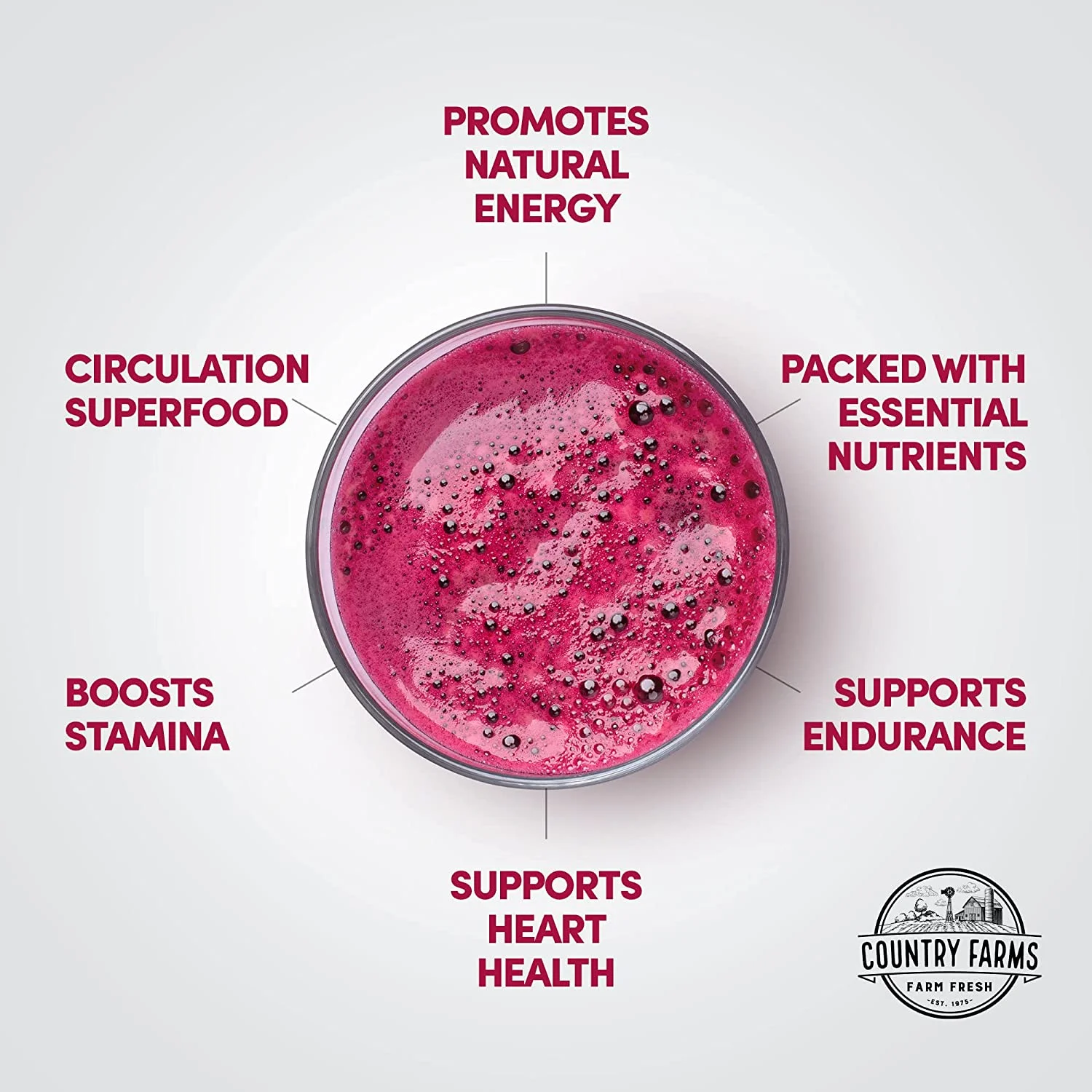 Country Farms Bountiful Beets, Wholefood Beet Extract Superfood, Helps Support Healthy Circulation And Promote Energy, Nitric Oxide Boost, Super Beets, Cherry Flavor, 30 Servings