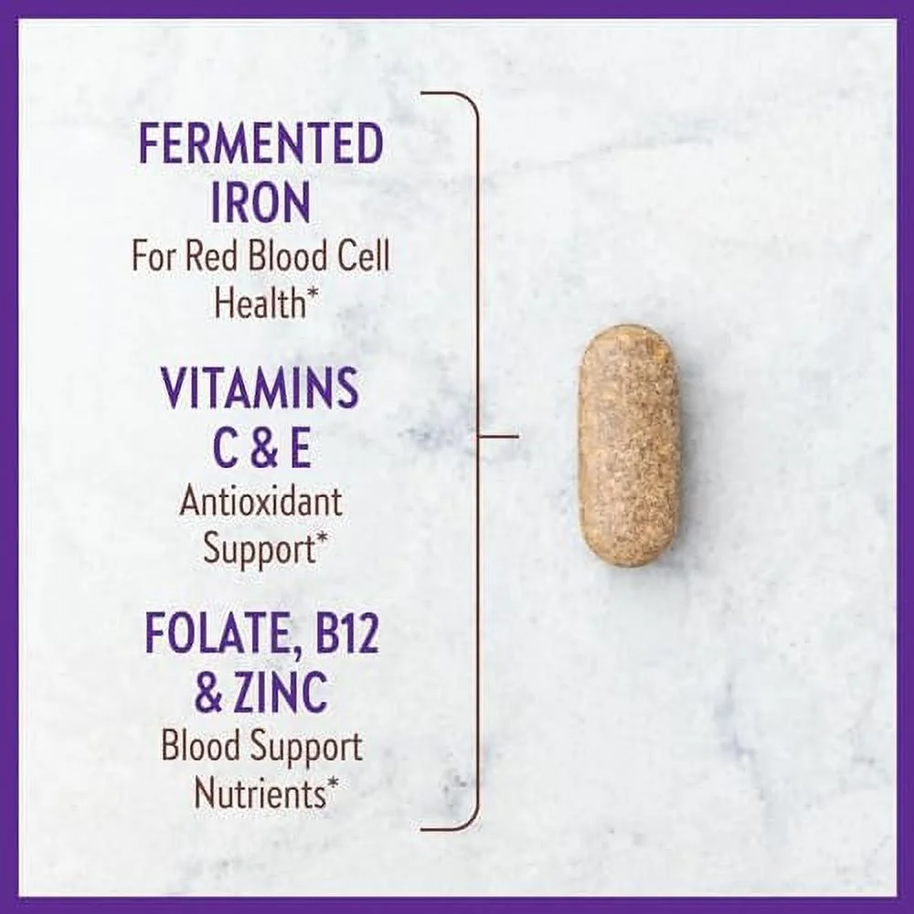 New Chapter Iron Supplement, Whole-Food Fermented Iron Complex Made with Organic Vegetables & Herbs + One Daily Non-Constipating Dose- 60ct, 2 Month Supply