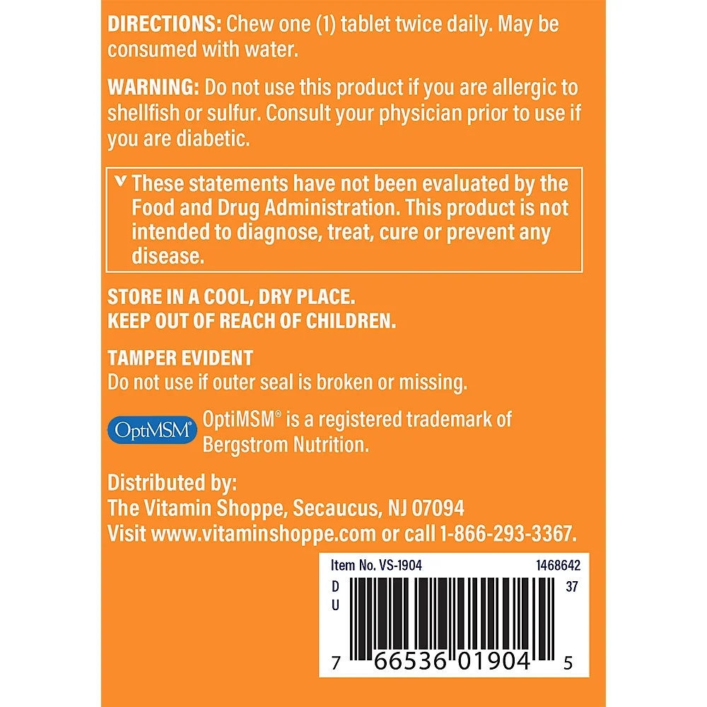 The Vitamin Shoppe Glucosamine Chondroitin MSM Chewable Wafers with 100mg of Branded OptiMSM™ Ingredient – Raspberry Flavor - Supports Healthy Joint Mobility, Flexibility & Structure (120 Count)