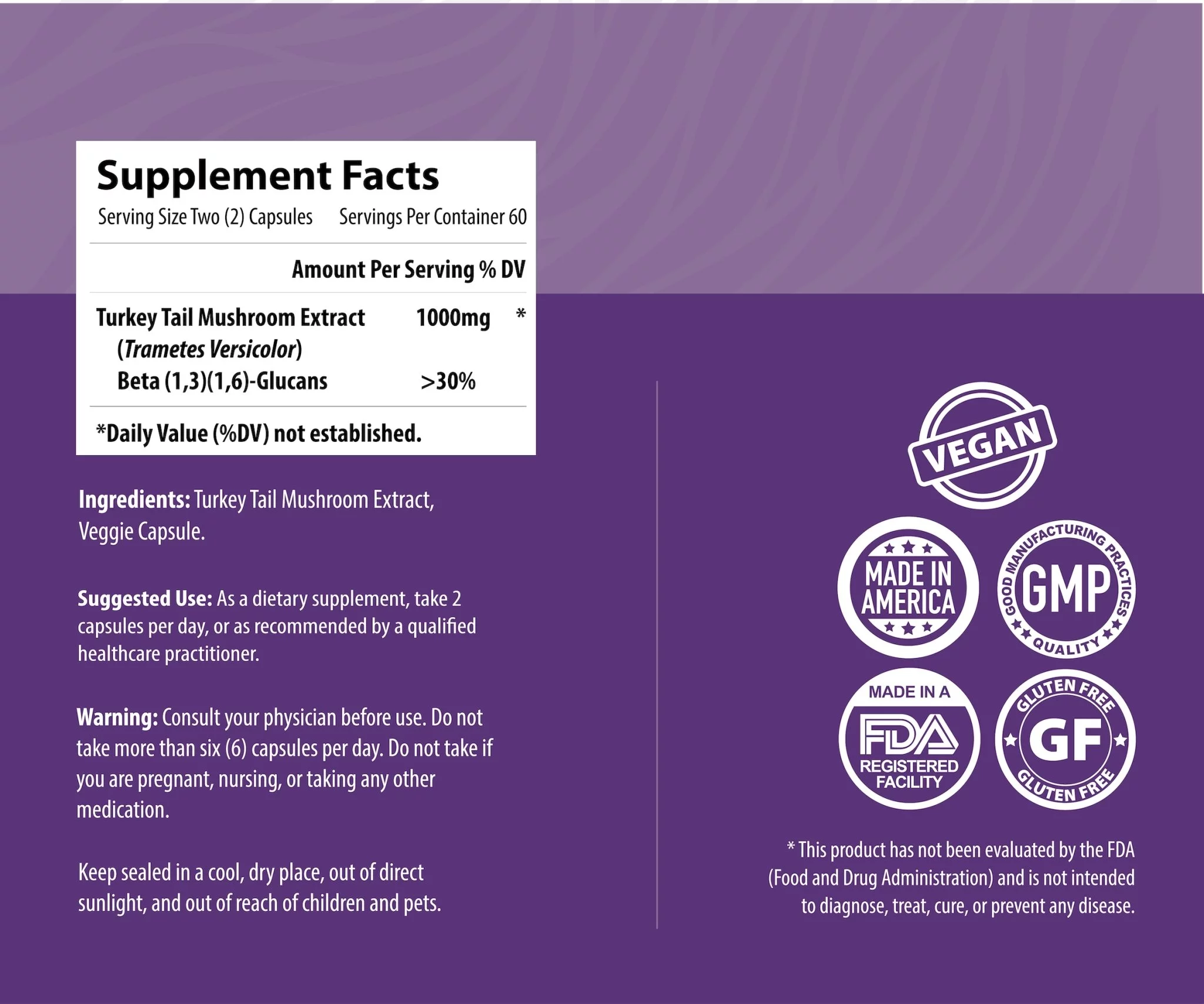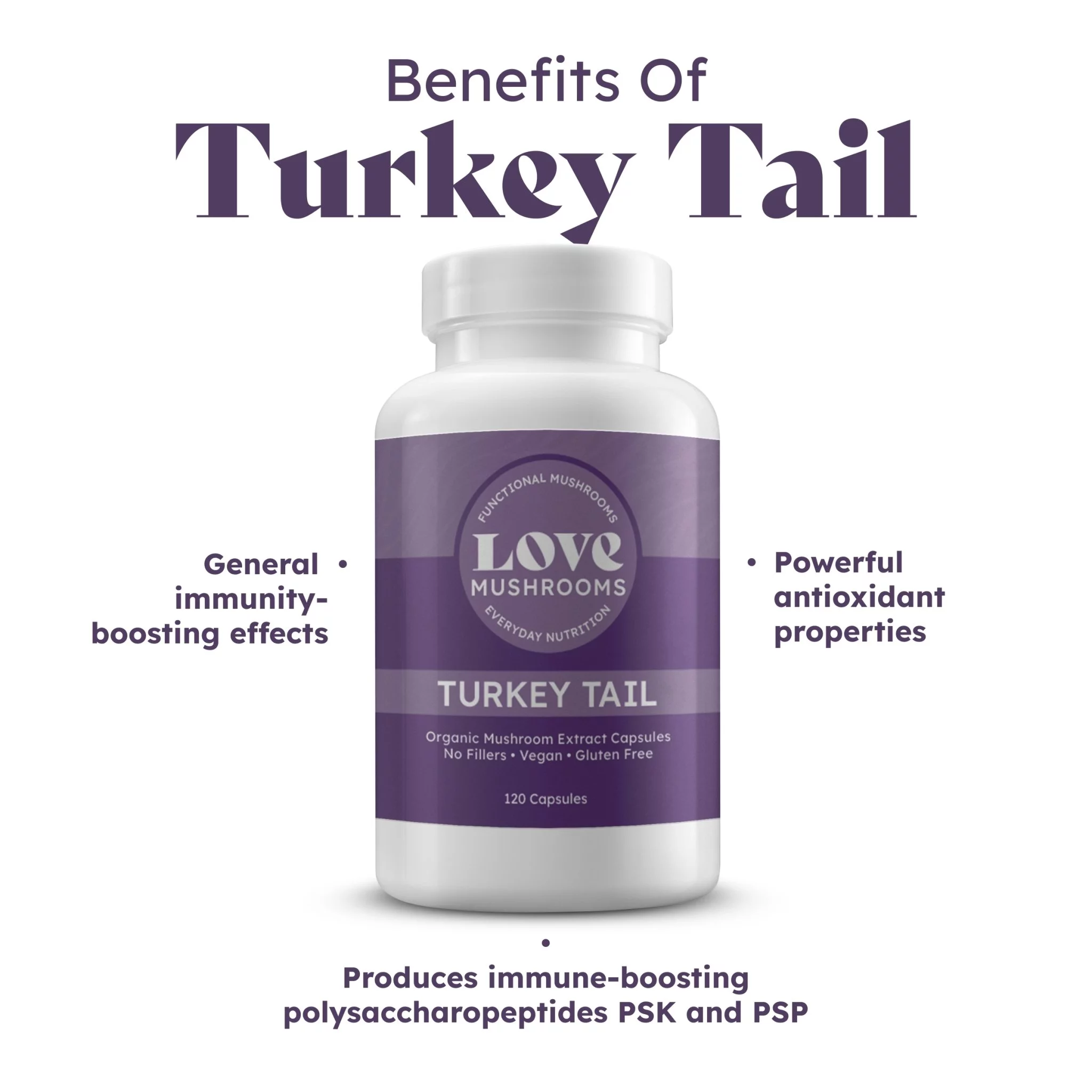 Love Mushrooms Turkey Tail Mushroom Extract Capsules (30% Beta-glucan), Organic, 120 Count (2 Month Supply)