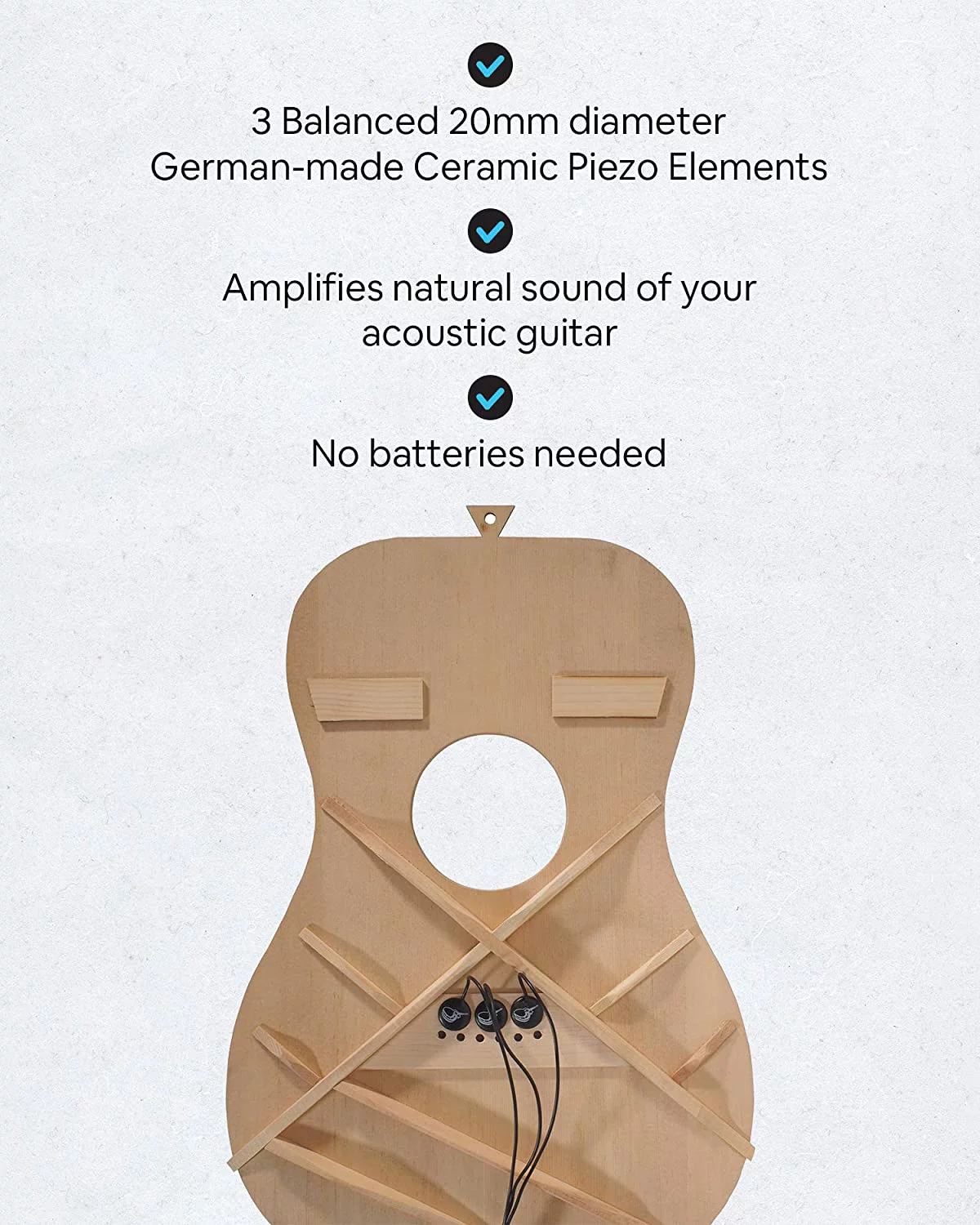 Journey Instruments Passive Piezo Acoustic Pickup - EP001K Three Balanced German-made Passive Pickup Elements - Piezo Pickup for Acoustic Guitars (Ceramic)