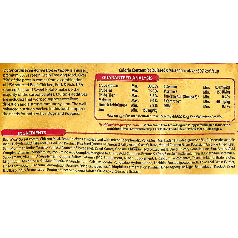 Victor Grain-Free Active Dog & Puppy Formula Dry Dog Food, 30 lb